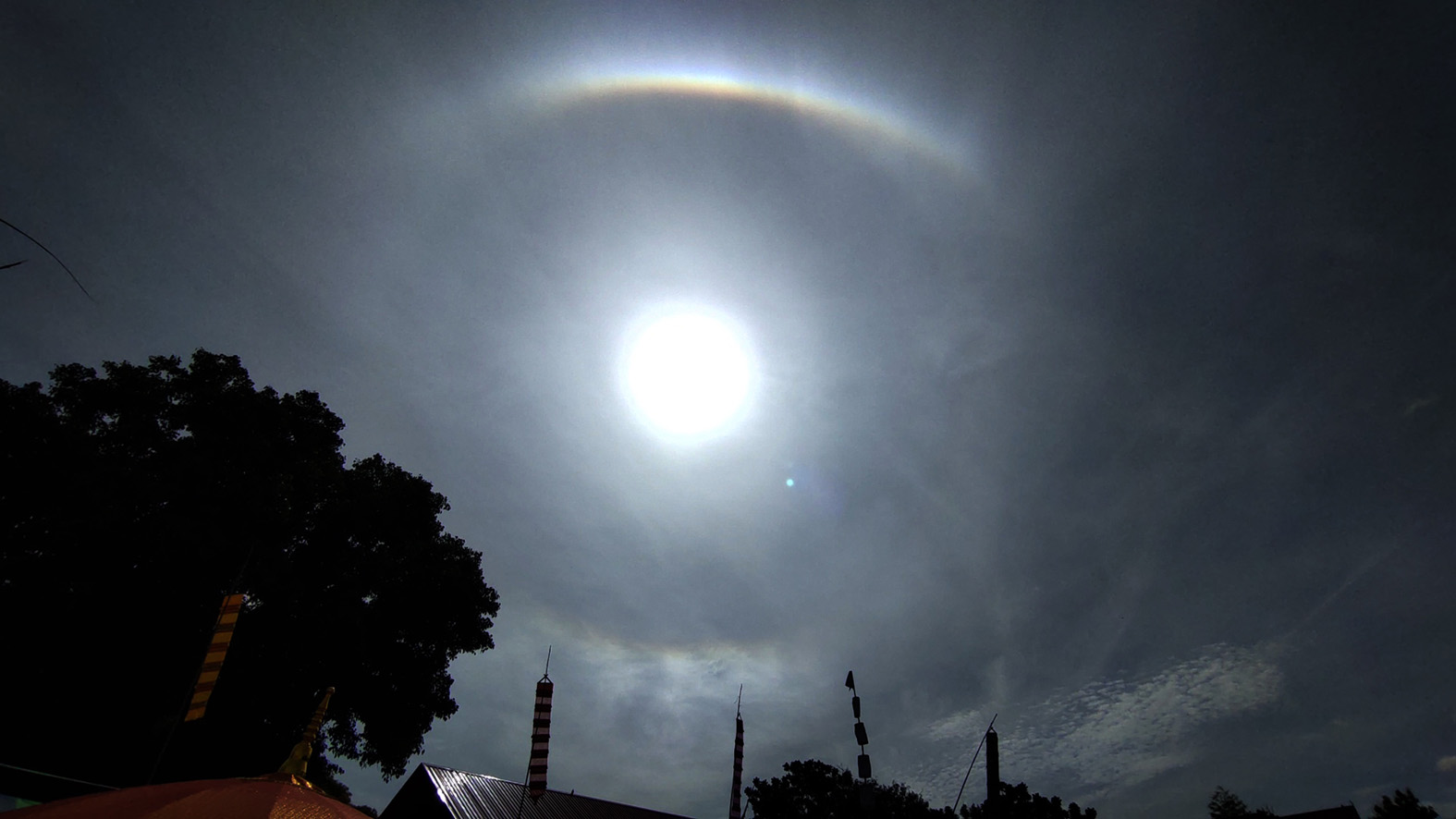 สุพรรณบุรี ฮือฮาพระอาทิตย์ทรงกลดในพิธีวางศิลาฤกษ์วัดดงน้อย