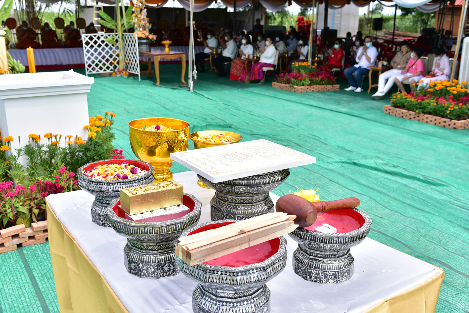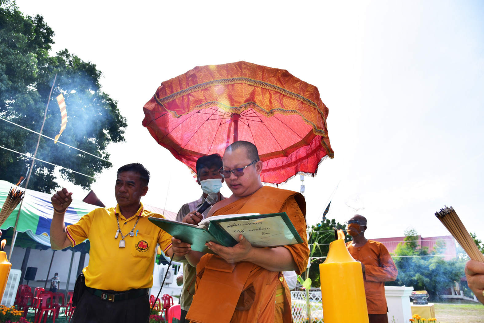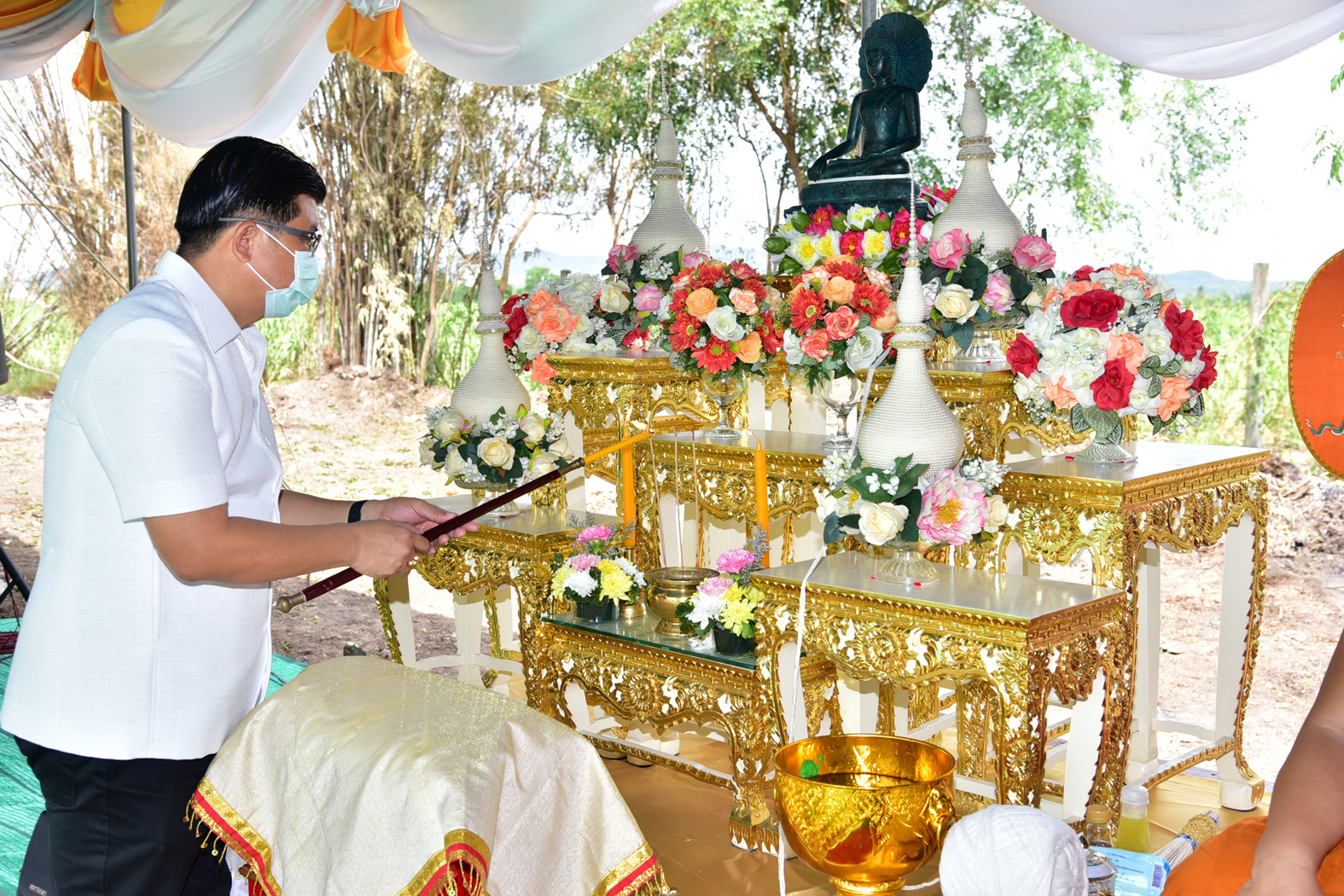ภายในพิธีนายอดิศักดิ์ มาตรศรี กำนันตำบลพลับพลาไชย เป็นประธานจุดธูปเทียน พระสงฆ์ทรงสมณศักดิ์ จำนวน 10 รูปสวดเจริญพุทธมนต์ กระทั่งเวลา 10.39 น.ได้เวลาประกอบพิธีวางศิลาฤกษ์ตามที่กำหนด โดยก่อนพิธีวางศิลาฤกษ์ พระปลัดอนวัชอภิลาโส เจ้าอาวาสวัดดงน้อย ได้ประกอบพิธีเริ่มพิธีบวงสรวงขอที่ขอทางสร้างเมรุ ระหว่างนั้นได้เกิดสิ่งอัศจรรย์ปรากฏมีพระอาทิตย์ทรงกรด ขึ้นท่ามกลางพิธีบวงสรวง สร้างความอัศจรรย์ใจแก่ผู้ที่มาร่วมพิธีต่างฮือฮา นำตัวเลขมงคลตามฤกษ์ ประกอบพิธีคือเวลา 10.39 ไปเสี่ยงโชคเพราะต่างเชื่อว่าปรากฎการณ์พระอาทิตย์ทรงกลดนั้นไม่ได้เกิดขึ้นง่ายๆแต่จะเกิดขึ้นในช่วงเวลาที่ประกอบพิธีสำคัญและศักดิ์สิทธิ์เท่านั้นจึงนับว่าเป็นบุญที่ได้เข้าร่วมประกอบพิธีในครั้งนี้ด้วย