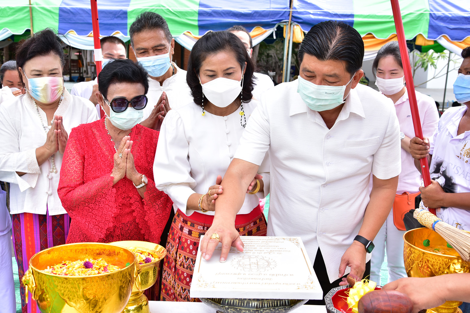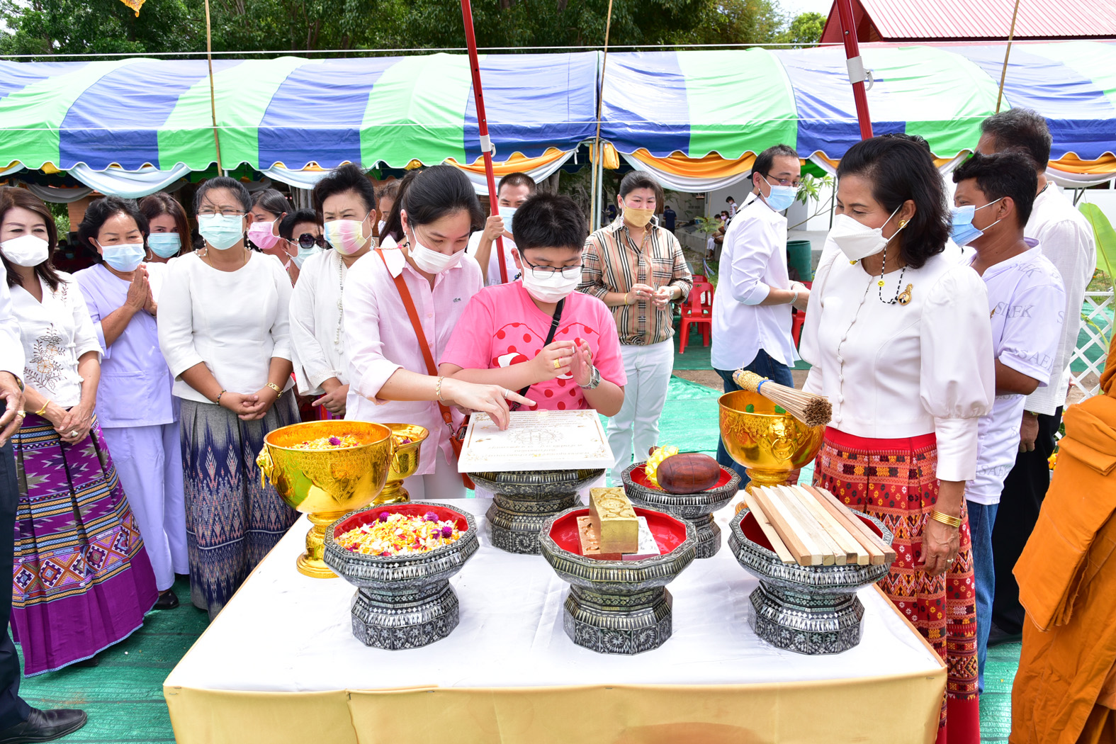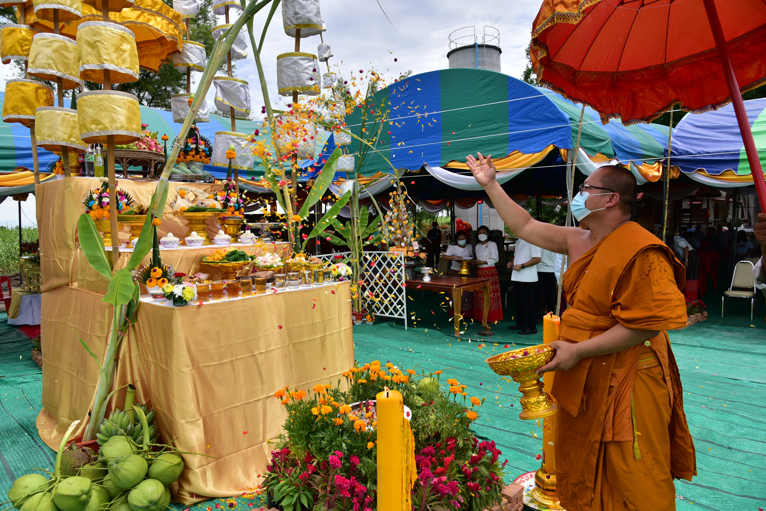 ภายในพิธีนายอดิศักดิ์ มาตรศรี กำนันตำบลพลับพลาไชย เป็นประธานจุดธูปเทียน พระสงฆ์ทรงสมณศักดิ์ จำนวน 10 รูปสวดเจริญพุทธมนต์ กระทั่งเวลา 10.39 น.ได้เวลาประกอบพิธีวางศิลาฤกษ์ตามที่กำหนด โดยก่อนพิธีวางศิลาฤกษ์ พระปลัดอนวัชอภิลาโส เจ้าอาวาสวัดดงน้อย ได้ประกอบพิธีเริ่มพิธีบวงสรวงขอที่ขอทางสร้างเมรุ ระหว่างนั้นได้เกิดสิ่งอัศจรรย์ปรากฏมีพระอาทิตย์ทรงกรด ขึ้นท่ามกลางพิธีบวงสรวง สร้างความอัศจรรย์ใจแก่ผู้ที่มาร่วมพิธีต่างฮือฮา นำตัวเลขมงคลตามฤกษ์ ประกอบพิธีคือเวลา 10.39 ไปเสี่ยงโชคเพราะต่างเชื่อว่าปรากฎการณ์พระอาทิตย์ทรงกลดนั้นไม่ได้เกิดขึ้นง่ายๆแต่จะเกิดขึ้นในช่วงเวลาที่ประกอบพิธีสำคัญและศักดิ์สิทธิ์เท่านั้นจึงนับว่าเป็นบุญที่ได้เข้าร่วมประกอบพิธีในครั้งนี้ด้วย