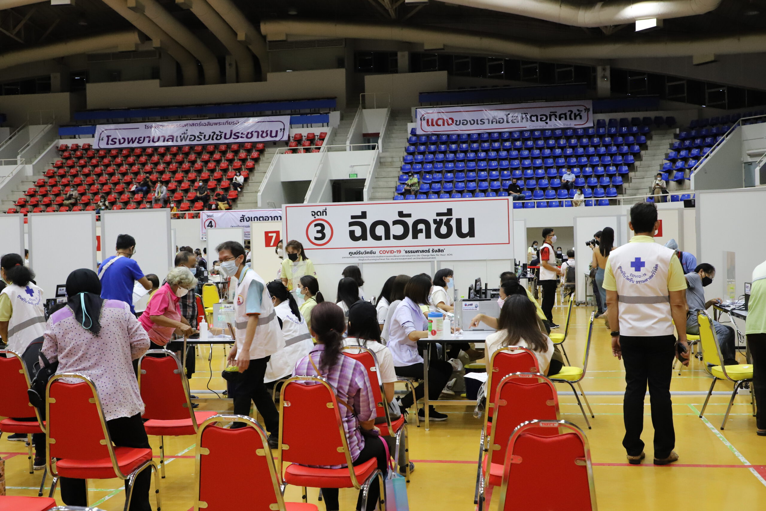รพ.ธรรมศาสตร์ศูนย์รังสิต เริ่มฉีดวัคซีนโควิด 19 ให้กับประชาชนลงทะเบียนผ่านแอปพลิเคชั่นหมอพร้อม