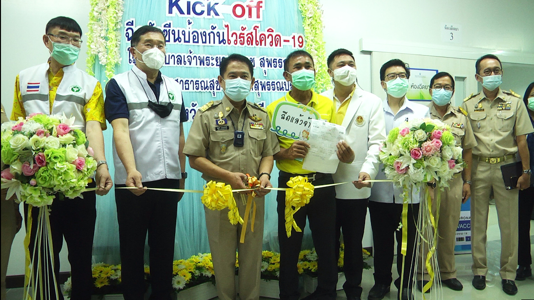ที่ จ.สุพรรณบุรี นายณัฐภัทร สุวรรณประทีป ผู้ว่าราชการจังหวัดสุพรรณบุรี พร้อมด้วยนายสรชัด สุจิตต์ ส.ส.จังหวัดสุพรรณบุรี นายบุญชู จันทร์สุวรรณ นายกอบจ.สุพรรณบุรี และผู้บริหารสำนักงานสาธารณสุขจ.สุพรรณบุรี เปิดกิจกรรม Kick Off ฉีดวัคซีนป้องกันไวรัส covid 19 ที่โรงพยาบาลเจ้าพระยายมราช อำเภอเมืองสุพรรณบุรี มีนายแพทย์พงษ์นรินทร์ ชาติรังสรรค์ ผู้อำนวยการโรงพยาบาลศูนย์เจ้าพระยายมราช และคณะผู้บริหารโรงพยาบาลให้การต้อนรับ