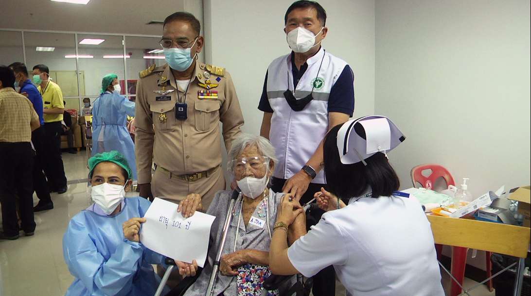 สุพรรณบุรี ฉีดวัคซีนAstraZenecaวันแรกคึกคักยายทวดอายุมากที่สุดในประเทศวัย101ปีร่วมฉีดด้วย