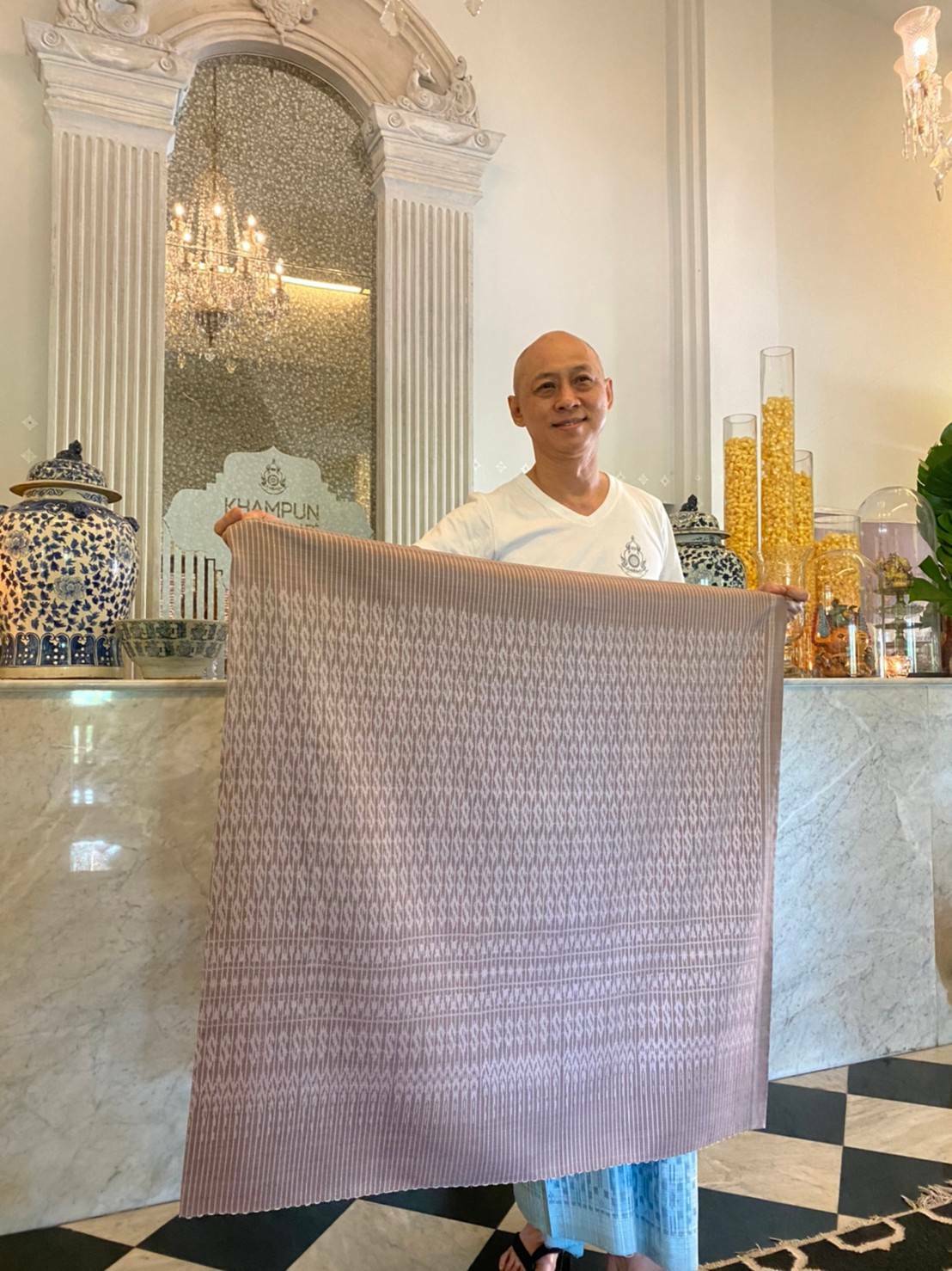 ในการนี้ นายมีชัย แต้สุจริยา เจ้าของ และตัวแทนกลุ่มทอผ้าบ้านคำปุน กล่าวว่า กลุ่มทอผ้าบ้านคำปุน ได้ทอผ้า ประเภทเทคนิคการทอ มัดหมี่ 2 ตะกอ ทอตามแบบอัตลักษณ์ผ้ากาบบัว ( ผ้าเอกลักษณ์จังหวัดอุบลราชธานี และ มรดกภูมิปัญญาทางวัฒนธรรมของชาติ 2557 ( กระทรวงวัฒนธรรม ) ประกอบด้วย 1 เส้นยืนทิว 2 เส้นพุ่ง มัดหมี่ 3 เส้นพุ่งมับไม( หางกระรอก) 4 ขิด ( ยก )