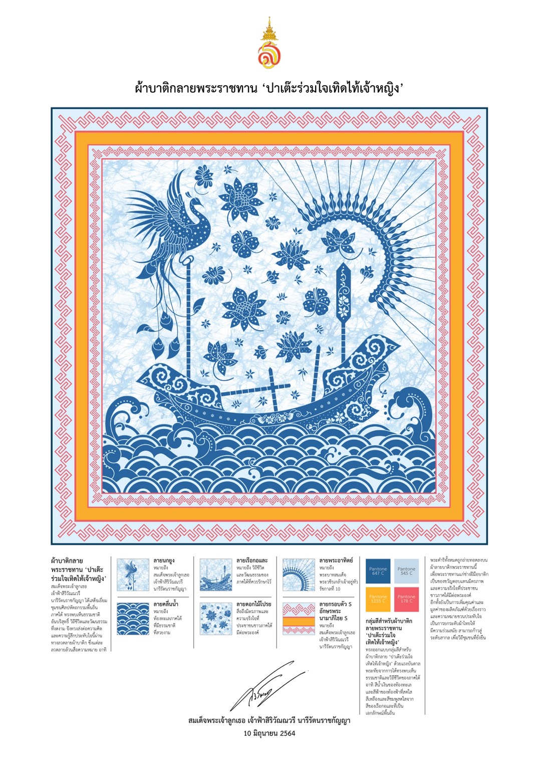 ปิติสมเด็จพระเจ้าลูกเธอ เจ้าฟ้าสิริวัณณวรี นารีรัตนราชกัญญา ทรงพระกรุณาพระราชทานลายผ้าบาติก ในโอกาสเปิดการประกวดผ้าลายพระราชทาน“ผ้าลายขอเจ้าฟ้าสิริวัณณวรีฯ”