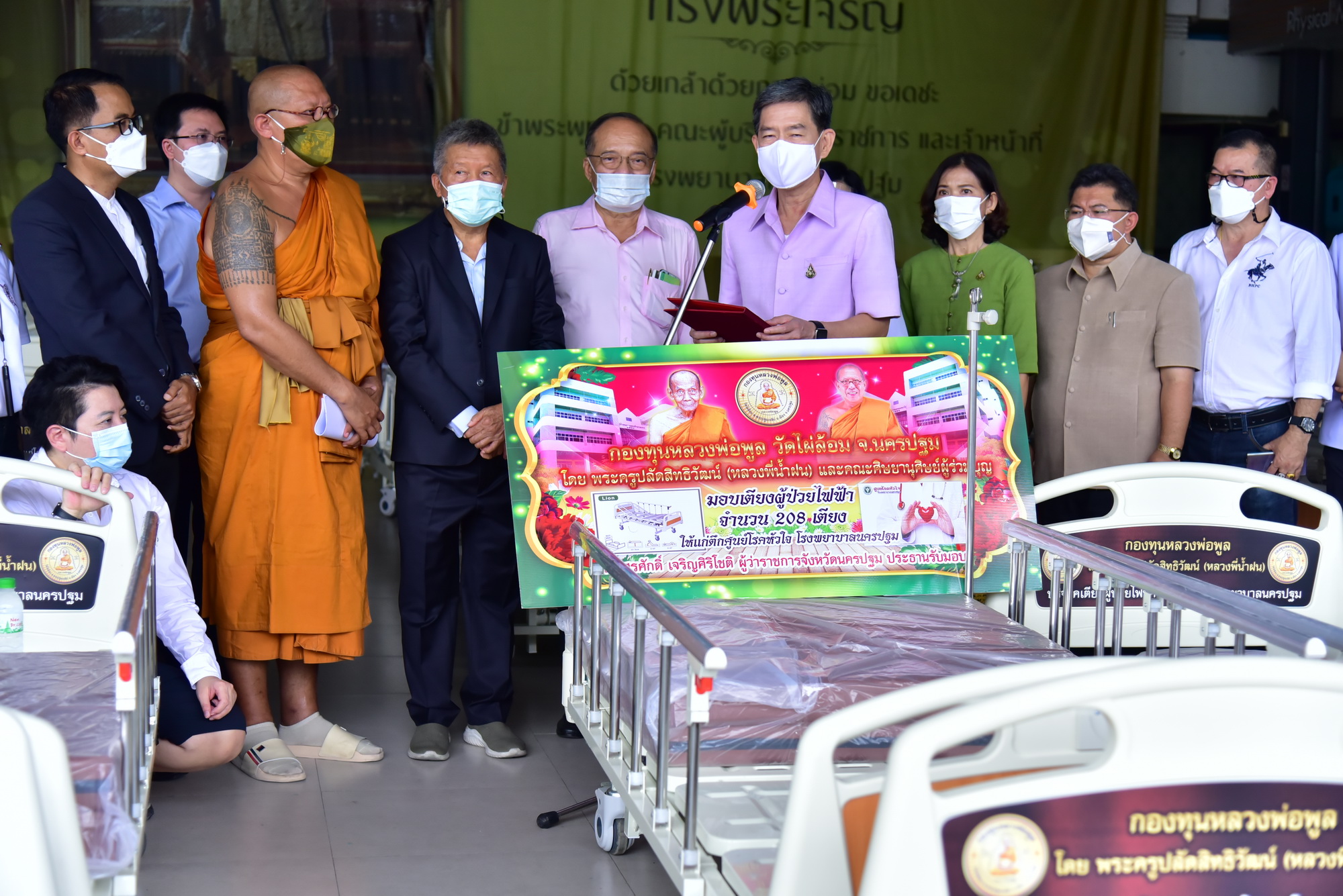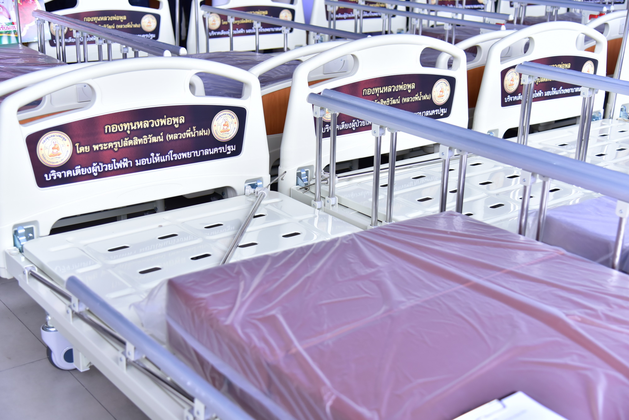 กองทุนหลวงพ่อพูล วัดไผ่ล้อม มอบเตียงผู้ป่วยไฟฟ้าให้โรงพยาบาลนครปฐม เพื่อทดแทนอุปกรณ์เดิมที่มีความชำรุดและรองรับผู้ป่วยที่เพิ่มมากขึ้น