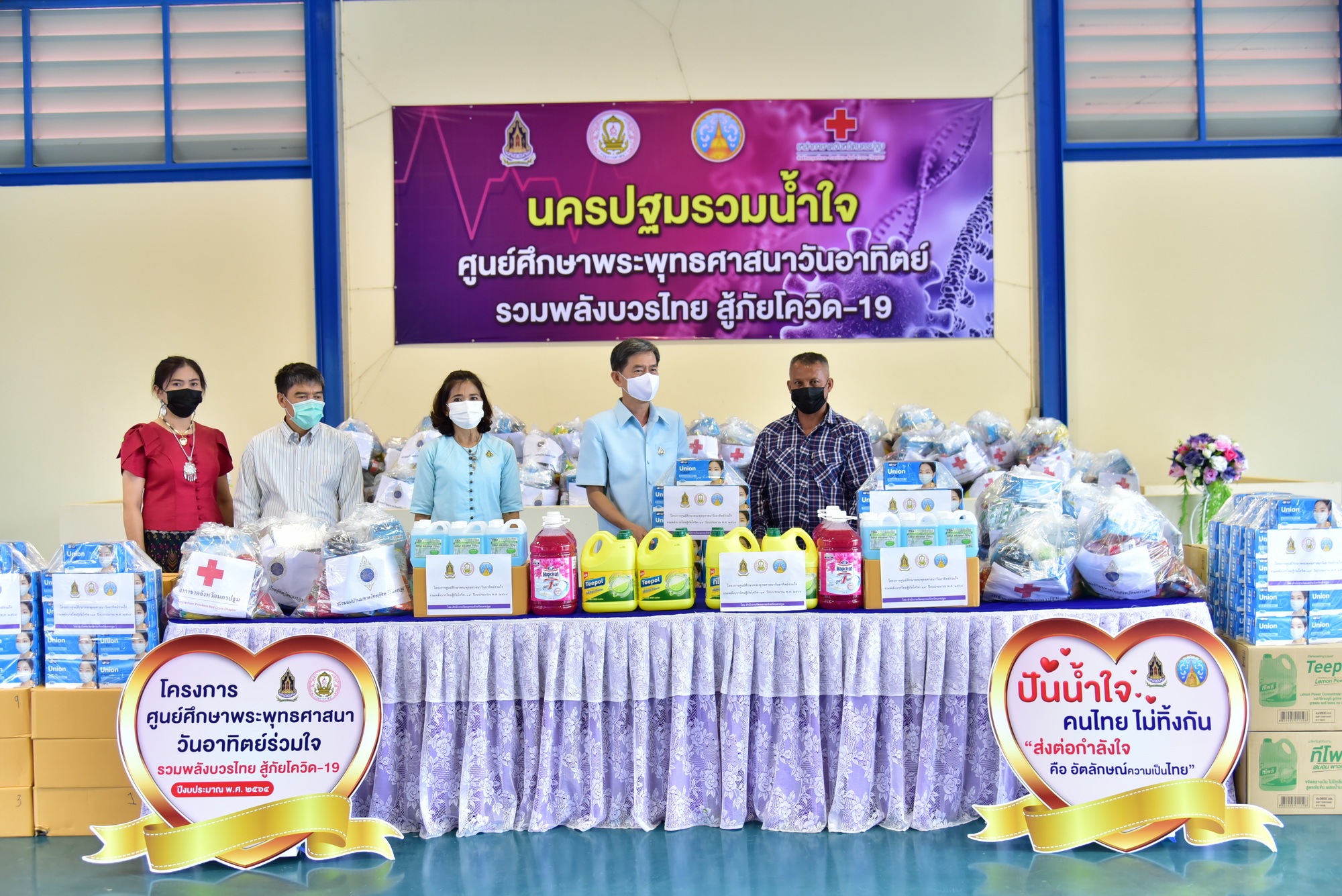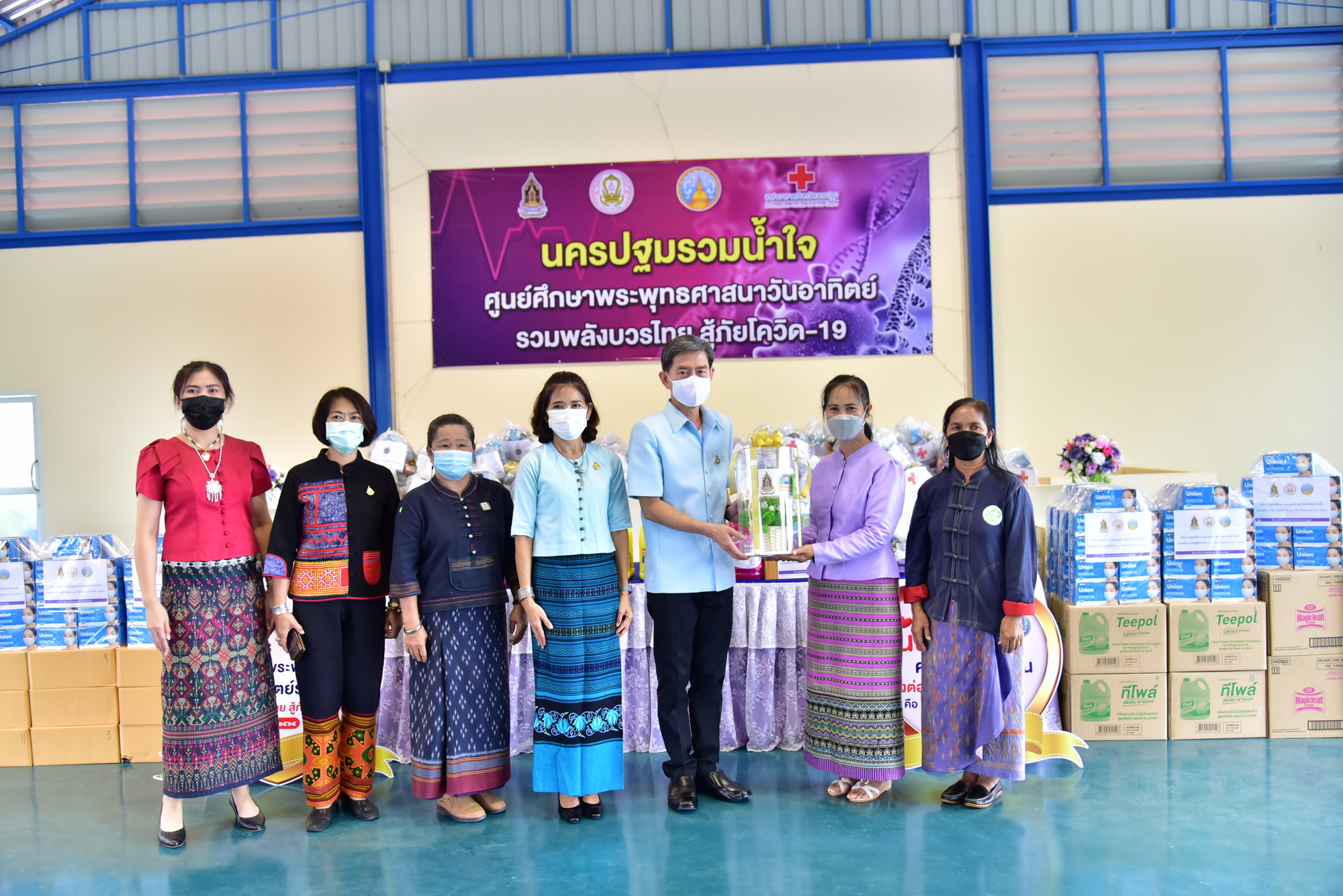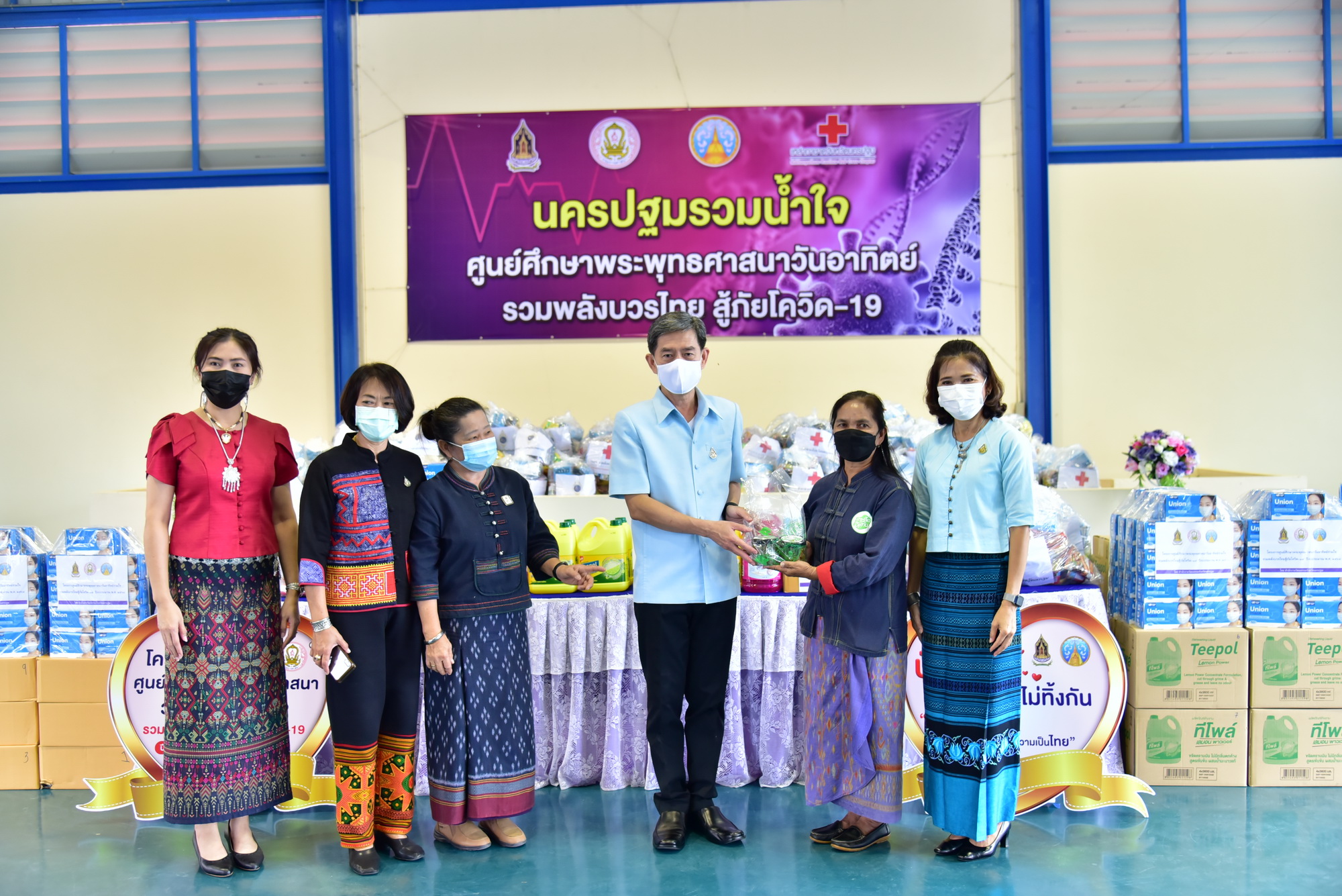 นครปฐม มอบเครื่องอุปโภคบริโภค ให้แก่ผู้อำนวยการศูนย์ศึกษาพระพุทธศาสนาวันอาทิตย์สู้ภัยโควิด-19