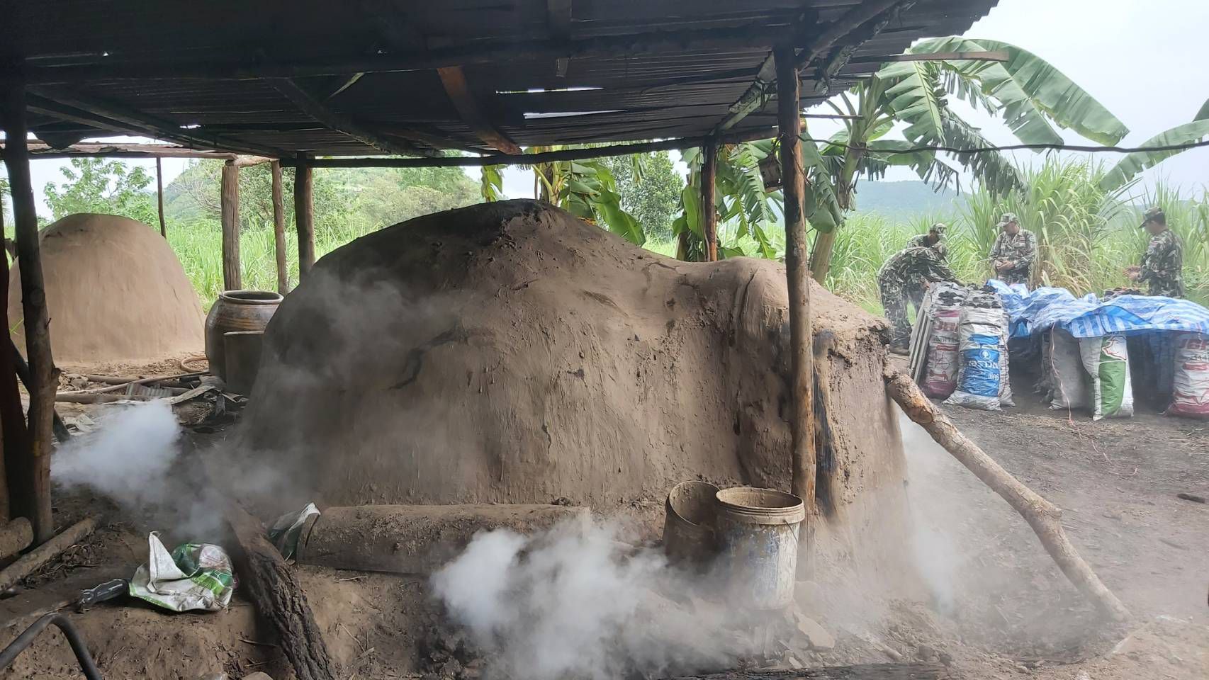 ต่อจากนั้นได้เดินทางไปตรวจยังห้วยแม่กบาล หมู่ 4 ตำบลศรีมงคล อำเภอไทรโยค ในจุดนี้จากการตรวจสอบพบเตาเผาถ่านขนาดใหญ่ จำนวน 5 เตา และไม้ท่อนที่ตัดเตรียมไวัเผาถ่านจำนวนมากมีทั้งท่อนสั้นและท่อนยาว พร้อมทั้งพบไม้แปรรูปเป็นแผ่นกระดานอีกเป็นจำนวนมาก เจ้าหน้าที่จึงได้ตรวจสอบการตีดวงตราไม้ แต่ไม่พบการตีดวงตราไม้ของทางเจ้าหน้าที่แต่อย่างไร จึงได้ทำการตรวจยึดของกลางทั้งหมด ดังนี้ 1.เครื่องเลื่อยยนต์ พร้อมสะพานโซ่ความยาว18 นิ้ว 2.ไม้หวงห้ามประเภทไม้ท่อนไม้กระยาเลยจำนวนปริมาตร 1.87 ลูกมาศก์เมตร 3. ไม้แผ่นแปรรูปจำนวน0.81ลูกมาศก์เมตร 4.ถ่านบรรจุถุงพร้อมจำหน่ายจำนวน 87กระสอบ จึงได้นำของกลางทั้งหมดส่งพนักงานสอบสวนเพื่อสืบหาตัวผู้กระทำผิดมา ดำเนินคดีตามกฎหมายต่อไป