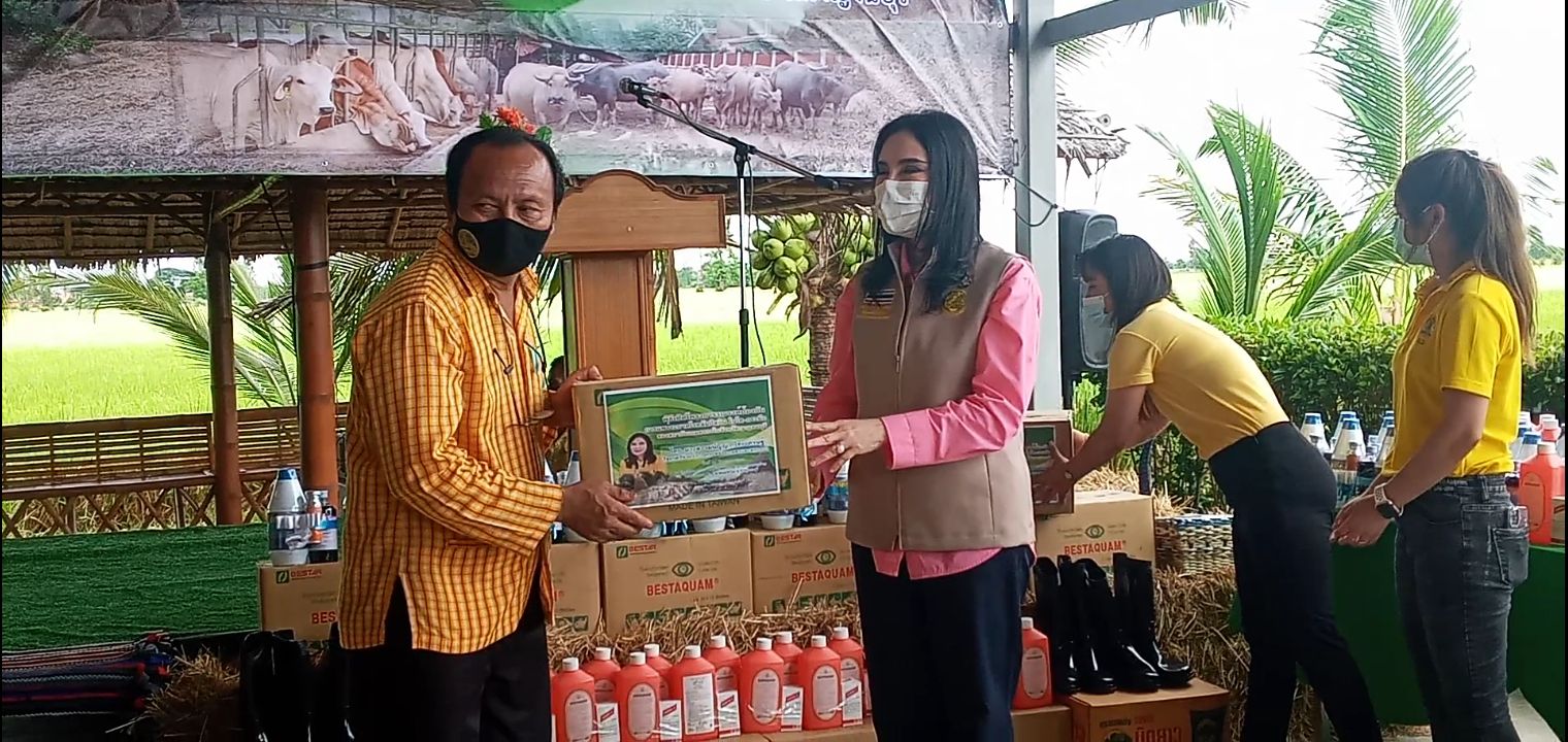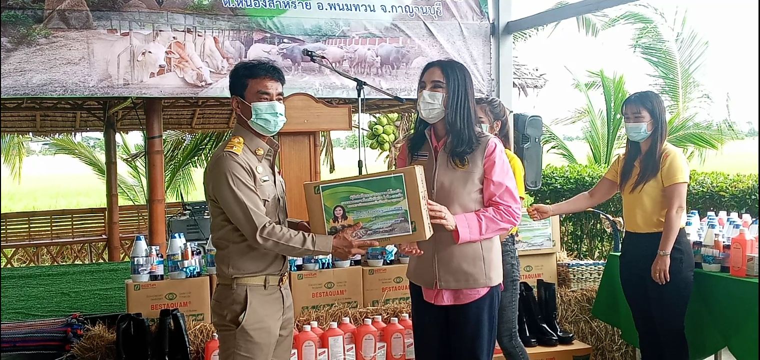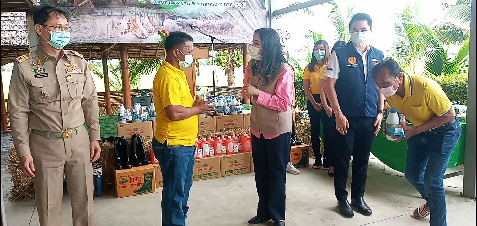 โดยในช่วงเช้า ได้เดินทางไปที่ ฟาร์มโคขุน น้อยการเกษตร หมู่ที่ 2 ตำบลหนองลาน อำเภอท่ามะกา ในช่วงบ่าย เดินทางไปที่โรงเรียนชาวนา บ้านหนองทราย หมู่ที่ 6 ตำบลหนองสาหร่าย อำเภอพนมทวน จังหวัดกาญจนบุรี ได้มอบสิ่งของเวชภัณฑ์ น้ำยาฆ่าเชื้อและยากำจัดแมลง ให้กับเกษตรกร สมาชิกสหกรณ์ จำนวน 70 ชุด และชมการสาธิตการดูแลฟาร์มเพื่อป้องกันการระบาดของโรคลัมปี สกิน ในโค กระบือโดยสำนักงานปศุสัตว์จังหวัดกาญจนบุรี