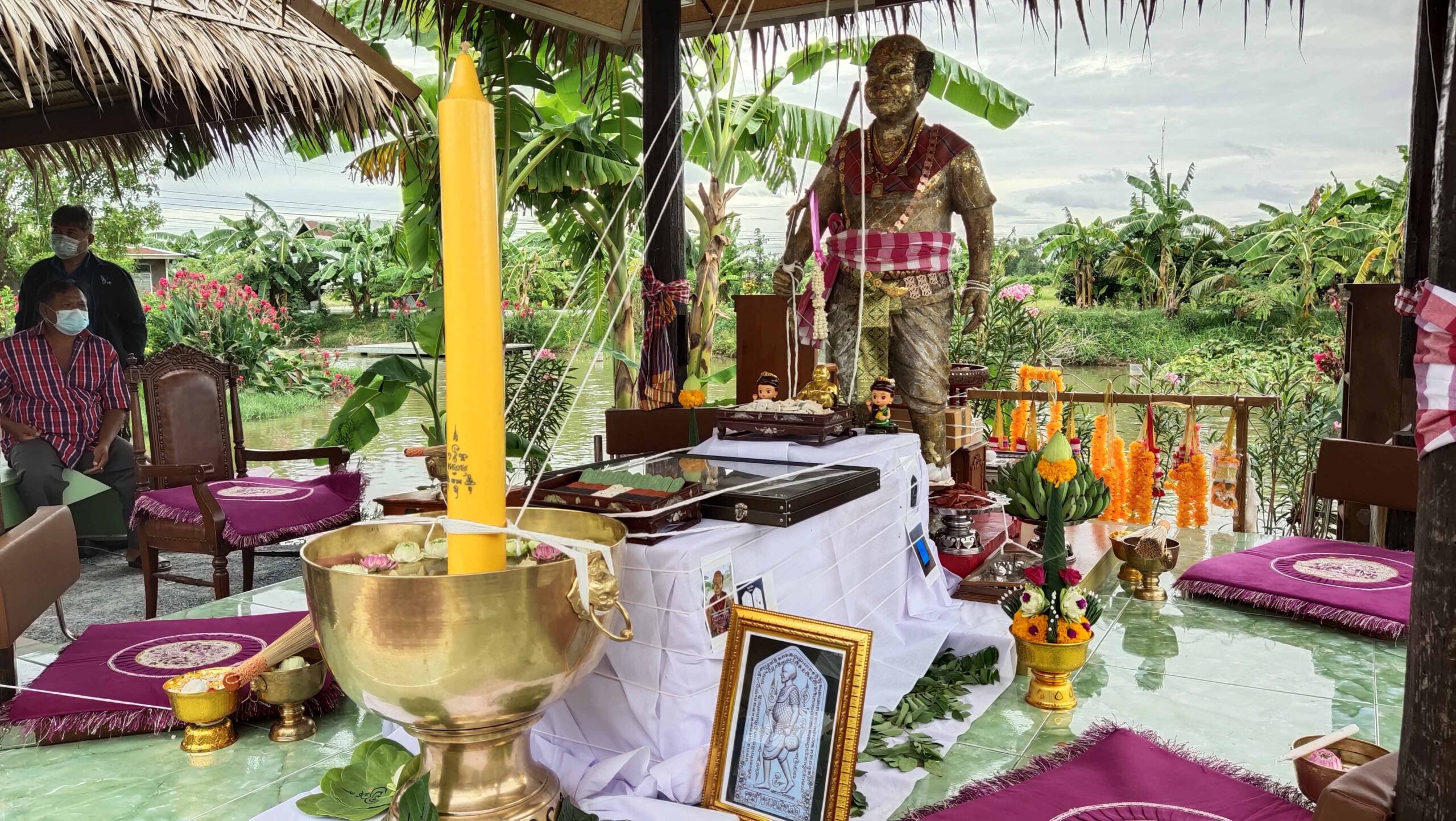 ที่ศาลพ่อขุนช้าง มหาเศรษฐี สวนกล้วยสุพรรณบุรี ชาวบ้านและสาวกหงส์แดงแฟนบอลลิเวอร์พูลสุพรรณบุรี ร่วมพิธีปลุกเสกวัตถุมงคล ขุนช้าง รุ่นแรก รวยเงินสด ที่ผ่านมามีชาวบ้านและนักท่องเที่ยวมาสักการะขอพรขอโชค ลาภและขอให้ค้าขายประสบความสำเร็จ คนที่มาขอพรพ่อขุนช้างแล้ว ประสบความสำเร็จ ก็จะนำเอา พืช ผัก ผลไม้ ข้าวของ เครื่องใช้ ผ้าขาวม้า น้ำแดง ทองคำและเงินสด มาแก้บนกันเป็นจำนวนมาก โดยส่วนหนึ่งทางสวนกล้วยได้นำไปบริจาคให้กับผู้ที่ได้รับความเดือดร้อนจากปัญหาโควิด19 แพร่ระบาด พิธีปลุกเสก พ่อขุนช้าง รุ่นแรก รวยเงินสด ได้รวบรวมสุดยอดมวลสารศักดิ์สิทธิ์ ด้านโภคทรัพย์เพื่อจัดสร้างวัตถุมงคล พ่อขุนช้าง รุ่นแรก รวยเงินสด เพื่อนำมาแจกให้กับประชาชน นักท่องเที่ยวและพ่อค้า แม่ค้า ที่มากราบสักการะขอพรพ่อขุนช้าง ภายในสวนกล้วยสุพรรณบุรี เพื่อเป็นที่ยึดเหนี่ยวทางจิตใจ เป็นกำลังใจให้ทุกคนได้ผ่านพ้นวิกกฤตเศรษฐกิจโควิด19ไปให้ได้