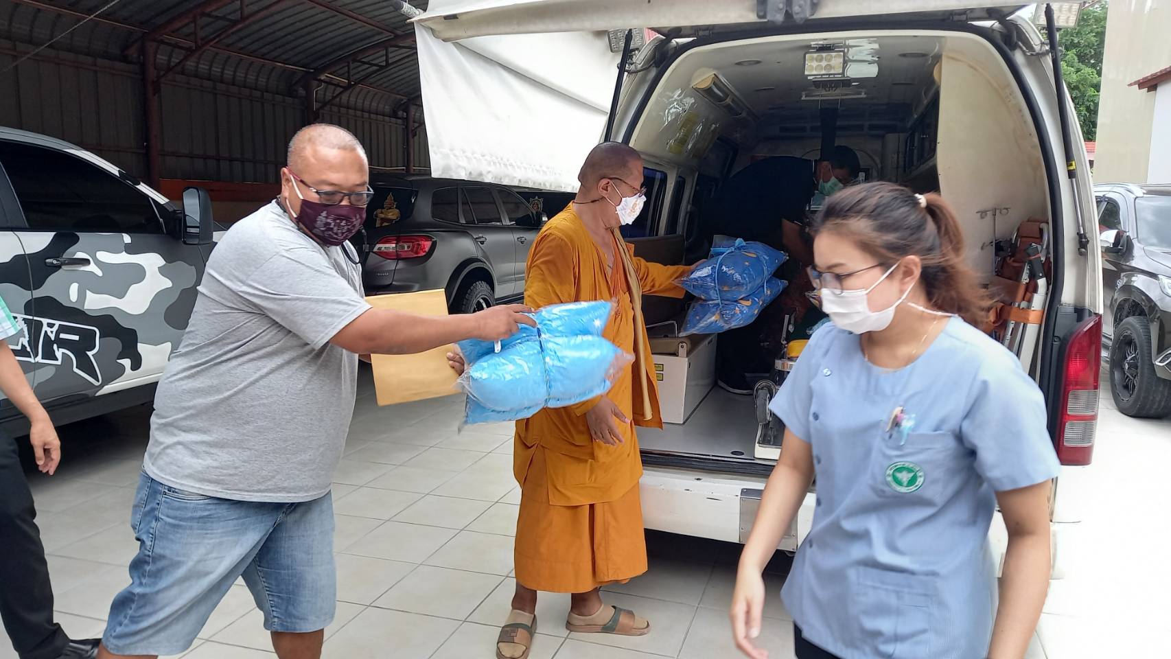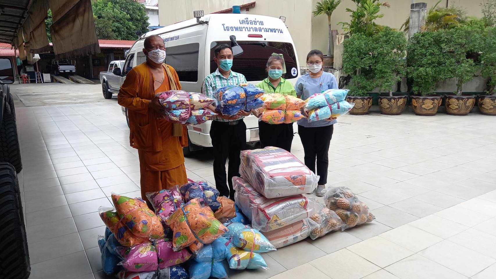 พระครูปลัดสิทธิวัฒน์ หลวงพี่น้ำฝน พร้อมคณะศิษย์ นำโดย นายสมชาติ สาลีพัฒนา (เฮียเงี๊ยบ) เจ้าของร้านก๋วยเตี๋ยวลูกชิ้นปลานายเงี๊ยบ มอบผ้าห่ม หมอน ให้โรงพยาบาลสนาม โรงพยาบาลสามพราน อ.สามพราน จ.นครปฐม โดยมีนายแพทย์ทินกร ชื่นชม รองนายแพทย์สาธารณสุขจังหวัดนครปฐม ผู้อำนวยการโรงพยาบาลสามพราน ร่วมด้วยนางพัชรี เกษรบุญนาค รองผู้อำนวยการโรงพยาบาลสามพราน รับมอบเพื่อนำไปใช้ให้เกิดประโยชน์ต่อไป