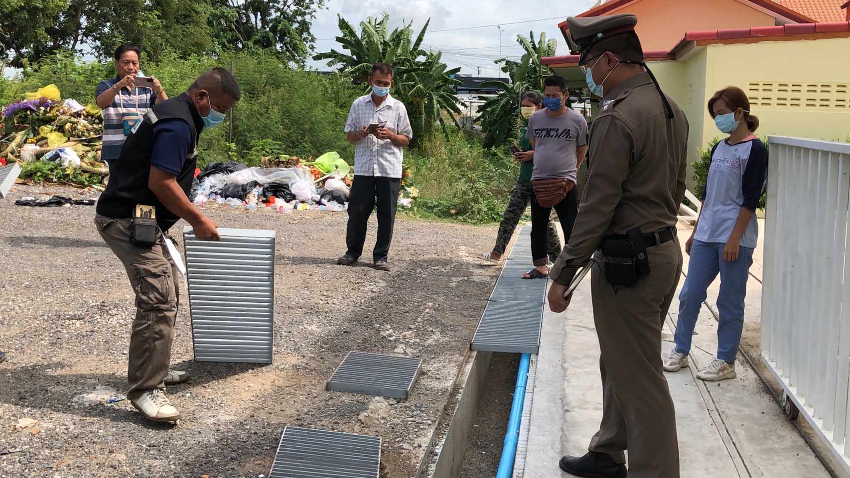 สระบุรี โจรใจบาป ขโมยตะแกรงเหล็กฝาท่อวัดสันติวิหาร