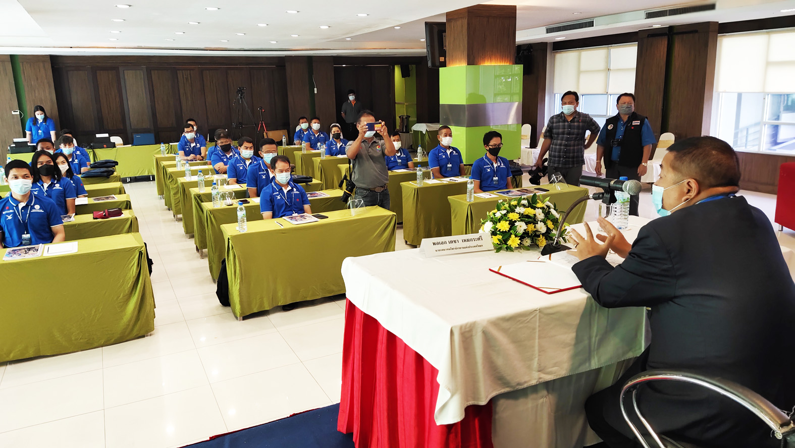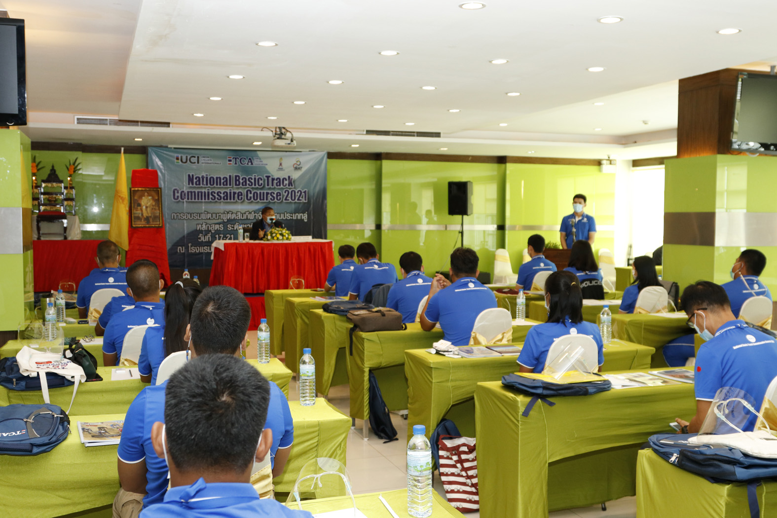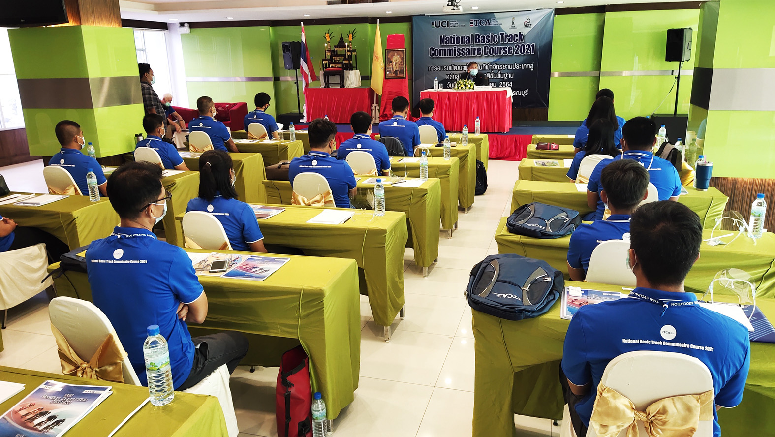 ที่ห้องประชุม โรงแรมวาสิฏฐี จ.สุพรรณบุรี พล.อ.เดชา เหมกระศรี นายกสมาคมกีฬาจักรยานแห่งประเทศไทย ในพระบรมราชูปถัมภ์ เป็นประธานเปิดโครงการอบรมผู้ตัดสินกีฬาจักรยาน ประเภทลู่ หลักสูตร “National Basic Track Commissaire Course 2021” ระดับชาติ ขั้นพื้นฐานประจำปี 2564 การอบรมผู้ตัดสินกีฬาจักรยานประเภทลู่ในหลักสูตรนี้ เป็นแนวนโยบายหลักของสมาคมกีฬาจักรยานแห่งประเทศไทย ในพระบรมราชูปถัมภ์ ที่จะพัฒนากีฬาจักรยานของประเทศในทุกมิติ ทั้งในด้านความรู้ ความสามารถ ทักษะ กฎกติกาต่าง ๆ เพื่อให้มีความทัดเทียมกับชาติอื่น ๆ หลักสูตรระดับชาติขั้นพื้นฐานนี้ เป็นการจัดขึ้นโดยความร่วมมือระหว่างการกีฬาแห่งประเทศไทย และสมาคมกีฬาจักรยานแห่งประเทศไทย ในพระบรมราชูปถัมภ์ ระหว่างวันที่ 17-21 มิถุนายน 2564 ณ โรงแรมวาสิฏฐี อ.เมือง จ.สุพรรณบุรี มีผู้เข้าร่วมอบรม จำนวน 20 คน