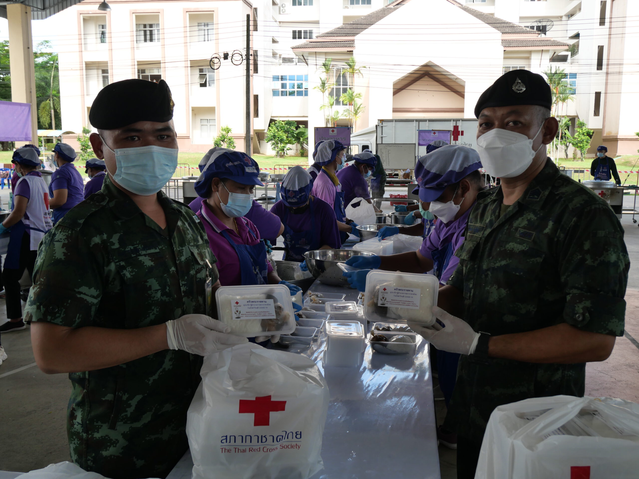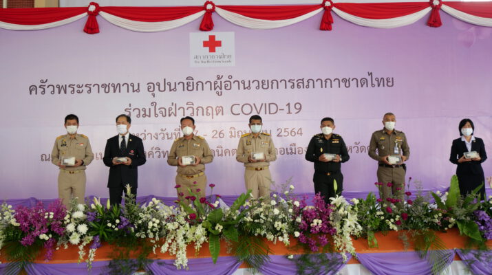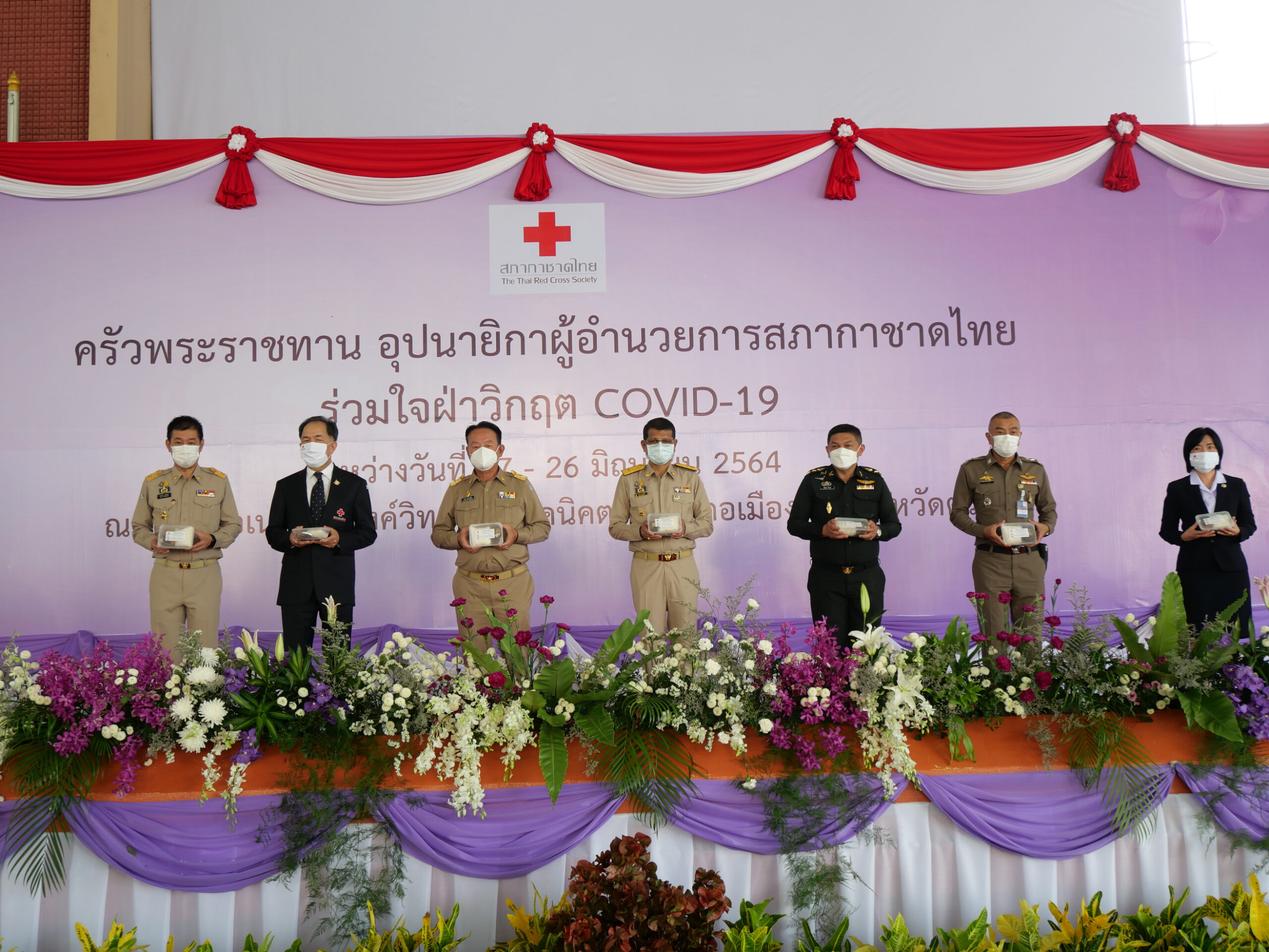 ทั้งนี้ จากสถานการณ์การแพร่ระบาดของโรคโควิด-19 ระลอก 3 ครัวพระราชทาน อุปนายิกาผู้อำนวยการสภากาชาดไทย ได้ผลิตอาหารปรุงสุกพร้อมรับประทาน และมอบให้แก่ผู้ที่ได้รับผลกระทบในพื้นที่จังหวัดประจวบคีรีขันธ์ บุรีรัมย์ และนครสวรรค์ ไปแล้วรวมจำนวน 106,278 ชุดและยังคงให้ความช่วยเหลือในจังหวัดอื่น ๆ ต่อไปจนกว่าสถานการณ์จะคลี่คลาย ผู้มีจิตศรัทธาร่วมบริจาคเงิน 99 บาทในโครงการ “พลังใจ 99 บาท ก้าวผ่านวิกฤต COVID-19” เพื่อช่วยเหลือประชาชนทีต้องกักกันตน ผู้สูงวัยที่ช่วยเหลือตนเองไม่ได้ และไร้ที่พึ่ง เพื่อลดความเสึ่ยง ป้องกันและเยียวยาในสถานการณ์การแพร่ระบาดของโควิด – 19 ผ่านการดำเนินงานของสำนักงานบรรเทาทุกข์และประชานามัยพิทักษ์ สำนักงานบริหารกิจการเหล่ากาชาด สถานีกาชาด เหล่ากาชาดจังหวัด และกิ่งกาชาอำเภอ ด้วยการสแกน QR CODE ผ่านแอปพลิชั่นธนาคารในระบบ E-DONATION หรือโอนเงินผ่านบัญชีธนาคารกสิกรไทย สาขาสำนักสีลม ชื่อบัญชี “สภากาชาดไทย เพื่อภัยพิบัติ” ประเภทบัญชี “กระแสรายวัน” เลขที่ 001-134567-0 หรือธนาคารกรุงไทย สาขาสุรวงศ์ ชื่อบัญชี “สำนักงานจัดหารายได้ สภากาชาดไทย” ประเภทบัญชี “กระแสรายวัน” เลขที่ 023-6-06799-0 สอบถามเพิ่มเติมโทร.1664