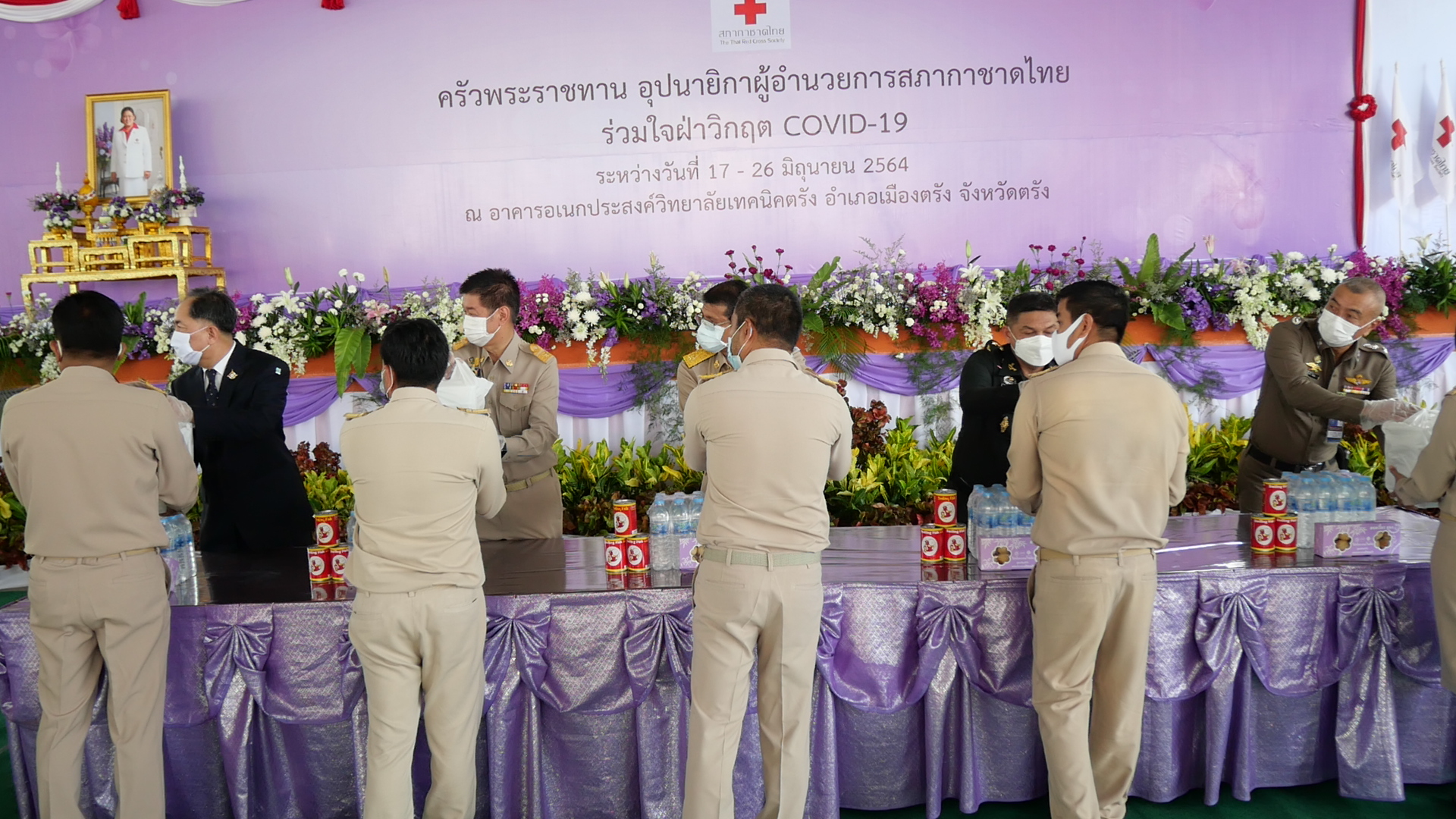 สภากาชาดไทย เปิด “ครัวพระราชทาน อุปนายิกาผู้อำนวยการสภากาชาดไทย” จังหวัดตรัง เพื่อทำอาหารแจกให้กับประชาชนที่ได้รับความเดือดร้อนจากการแพร่ระบาดโควิด -19