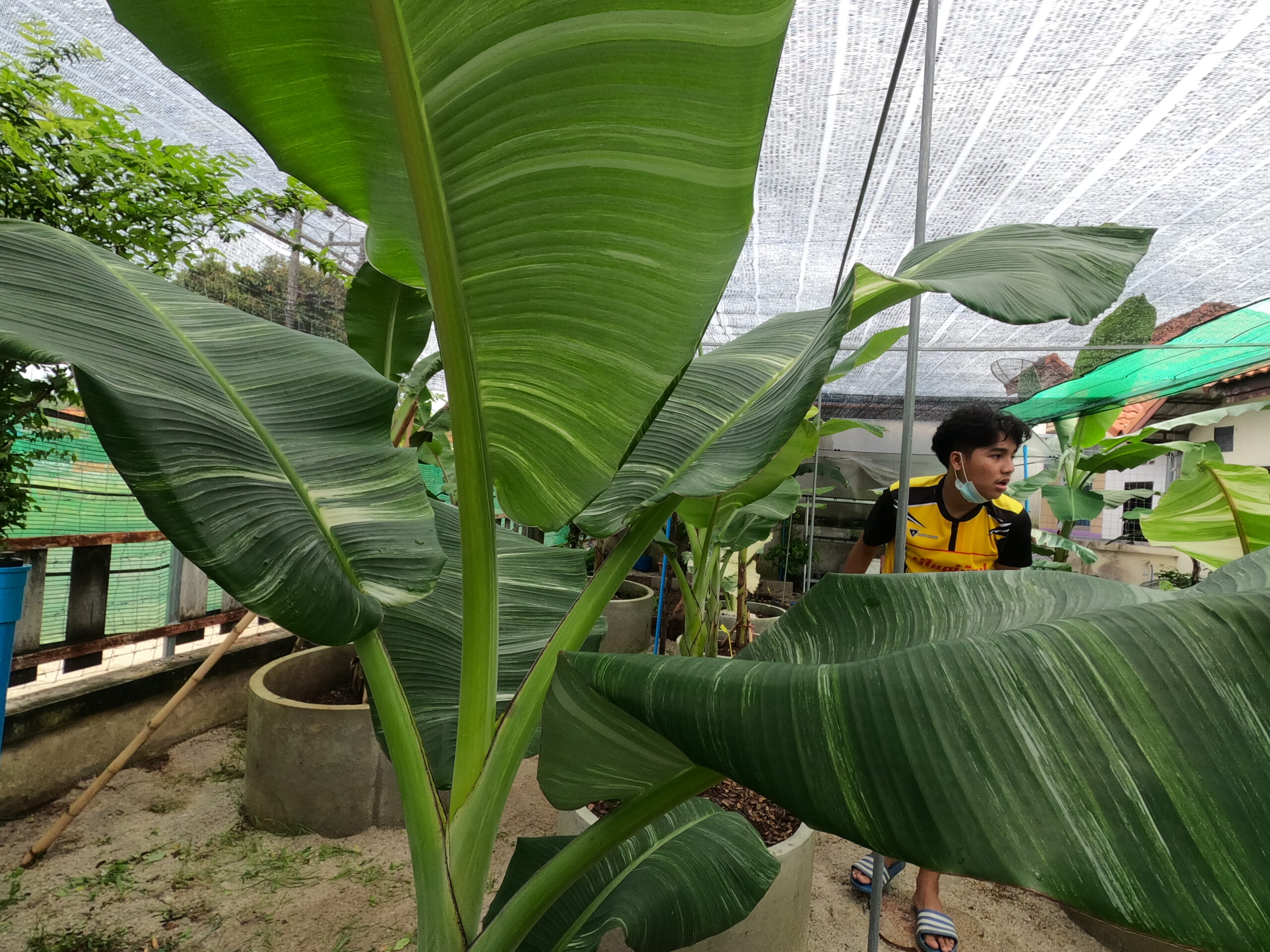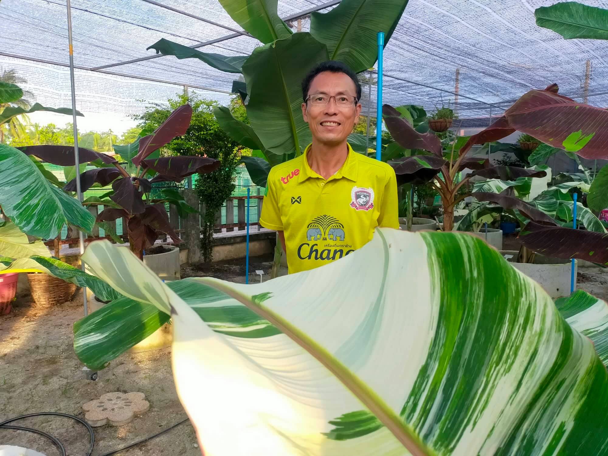 ที่บ้านเลขที่ 63/51 หมู่บ้านพรทวี หมู่ 2 ต.ท่าพญา อ.ปะเหลียน จ.ตรัง พบกับนายวรวุฒิ กังแฮ อายุ 53 ปี อดีตผู้จัดการทั่วไปโรงแรมดังในจังหวัดกระบี่ ลาออกเพราะพิษโควิด-19 กลับมาอยู่บ้านแต่ด้วยเป็นคนรักต้นไม้ ก่อนที่จะลาออกก็ได้เพาะเลี้ยงกล้วยด่างเป็นงานอดิเรก เมื่อปลายปีที่แล้วโรงแรมมีการปิดให้บริการจึงได้ลาออก ผนวกกับกระแสการเพาะเลี้ยงไม้ด่างเป็นกระแสนิยมที่เริ่มมาแรง มีการซื้อขายไม้ด่างในราคาสูงกว่าพันธุ์ไม้ทั่วไป ตนเองจึงได้ใช้พื้นที่ข้างบ้านประมาณ 30 ตารางเมตร เป็นสวนกล้วยด่างที่มีทั้งต้นพ่อพันธุ์แม่พันธุ์ ต้นอ่อนที่พึ่งแยกหน่อออกมา นับ 100 มีกล้วยด่างสายพันธุ์ไทยและสายพันธุ์นำเข้ามาจากต่างประเทศ