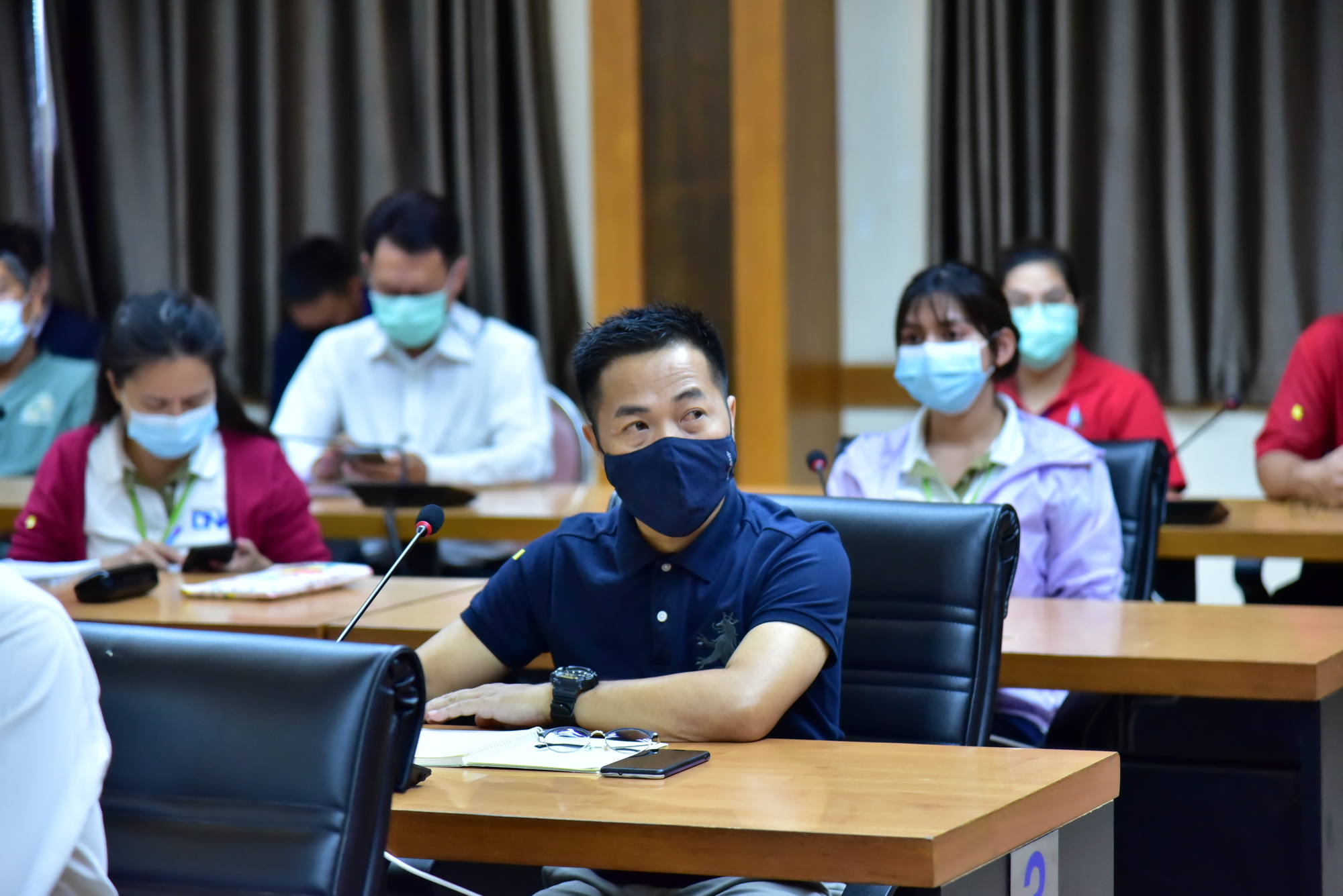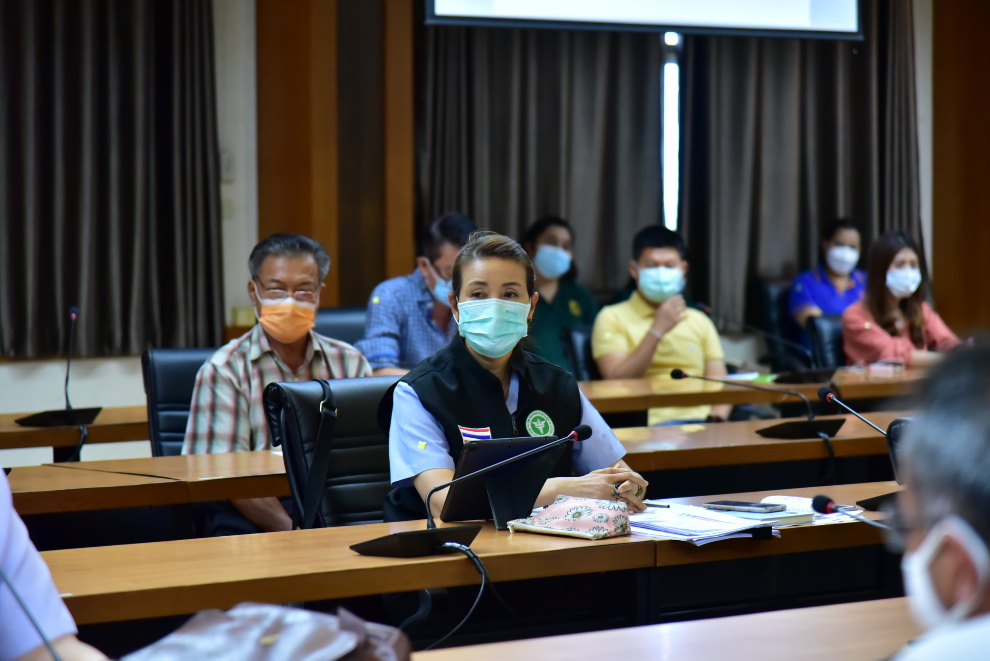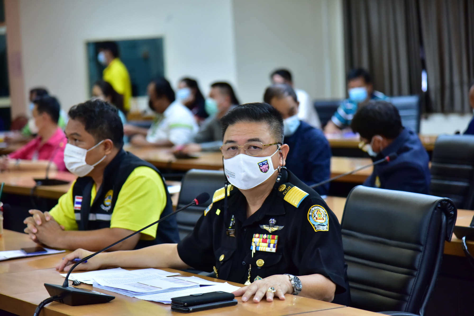 โดยในที่ประชุมได้มีมาตรการขอให้ผู้ประกอบการปฏิบัติตามมาตรการควบคุมและป้องกันการแพร่ระบาดโควิด-19 ดังนี้ 1.ให้ดำเนินการทำทะเบียนประวัติพนักงานสัญชาติไทย และต่างด้าว 2. ห้ามมิให้พนักงานประจำโรงฆ่าไปปฏิบัติงาน ณ สถานประกอบกิจการอื่นๆ 3. ควบคุมการเคลื่อนย้าย การเดินทางของพนักงานและบริเวณที่พักอาศัย ไม่ให้มีการปะปนกับผู้อื่น สำหรับพนักงานที่พักนอกพื้นที่โรงฆ่าสุกร 4.ควบคุมการเข้าออกของพนักงานและบุคคลภายนอก สำหรับพนักงานที่พักในบริเวณโรงฆ่าสุกร พร้อมทั้งจัดสิ่งของสำหรับอุปโภคและบริโภคให้แก่พนักงาน 5. ให้มีการสวมใส่หน้ากากอนามัยตลอดเวลาที่ปฏิบัติงาน 6. พนักงานต้องมีการล้างมือก่อนปฏิบัติงานทุกครั้ง หลังสัมผัสสิ่งปนเปื้อน และหลังใช้ห้องสุขา 7.พนักงานในอาคารโรงฆ่าต้องละเว้นพฤติกรรมที่อาจก่อให้เกิดการปนเปื้อน เช่น การสูบบุหรี่ การถ่มน้ำลาย การขบเคี้ยว การรับประทานอาหาร การสวมใส่เครื่องประดับ เป็นต้น และ 8.ให้มีการทำความสะอาดโรงฆ่าสัตว์ และเครื่องมือเป็นประจำทุกวัน ทั้งก่อนและหลังทำการฆ่าสัตว์