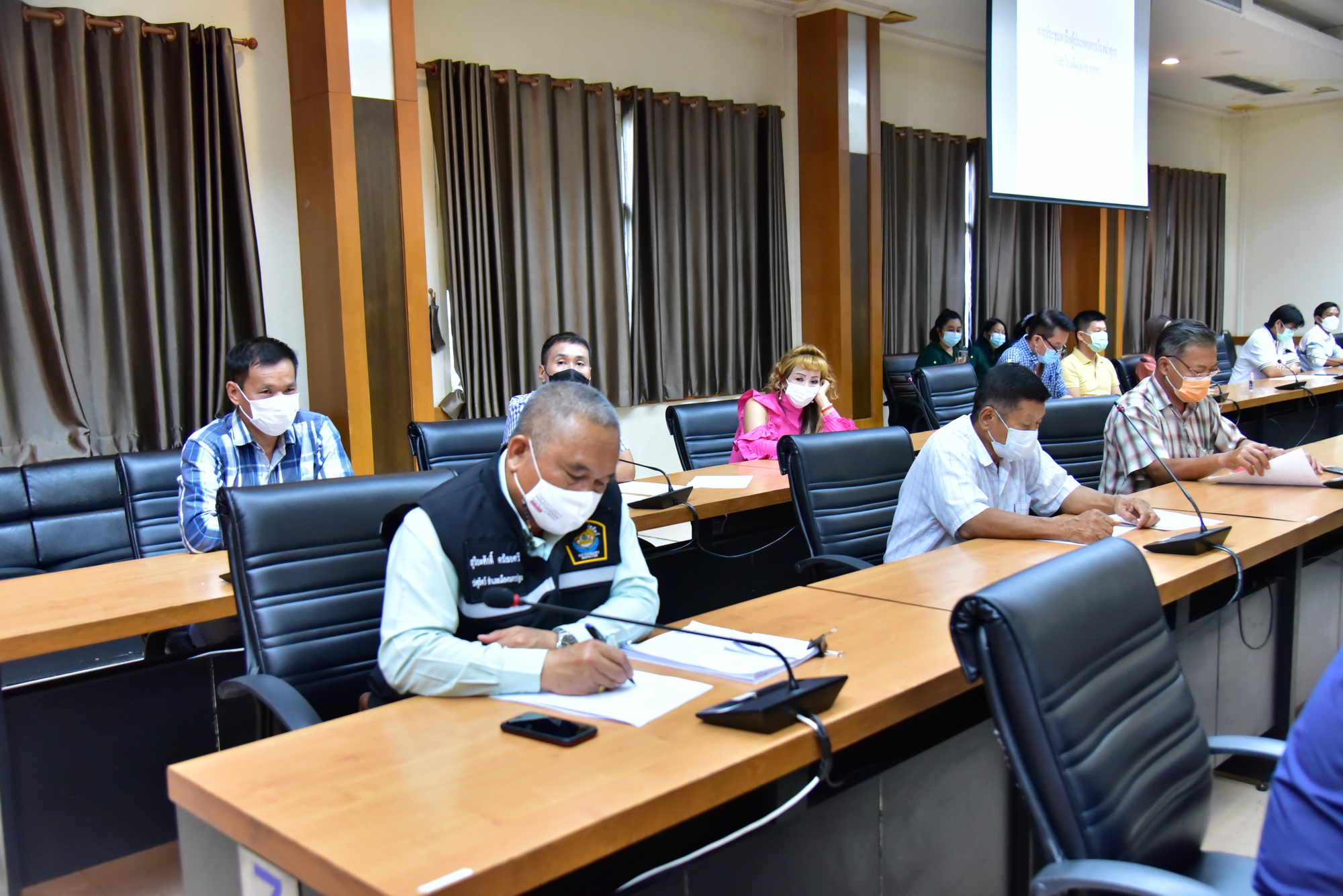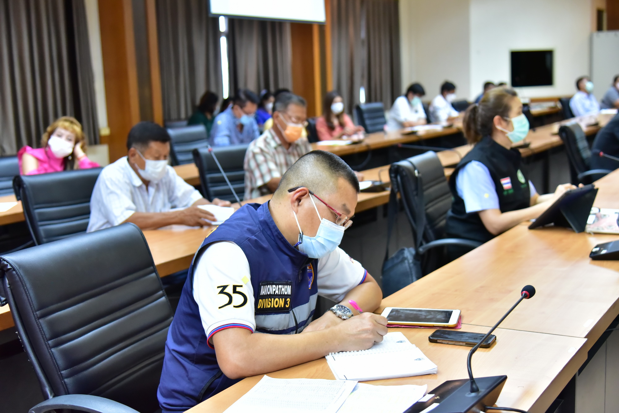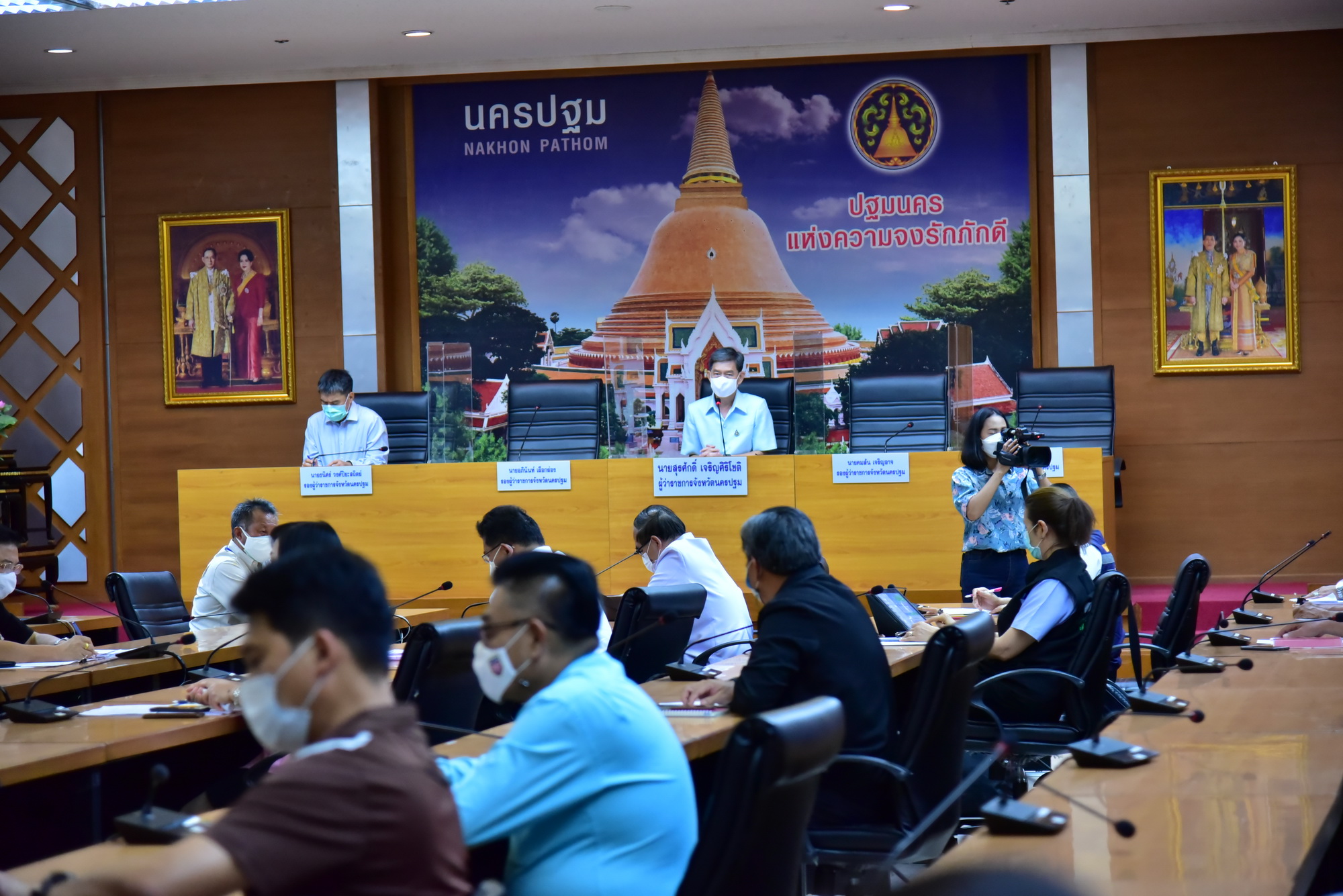 วันที่ 23 มิถุนายน 2564 ที่ห้องประชุมศาลากลางจังหวัดนครปฐม นายสุรศักดิ์ เจริญศิริโชติ ผู้ว่าราชการจังหวัดนครปฐม พร้อมด้วยนายธนิศร์ วงศ์ปิยะสถิตย์ รองผู้ว่าราชการจังหวัดนครปฐม นายแพทย์วิโรจน์ รัตนอมรสกุล นายแพทย์สาธารณสุขจังหวัดนครปฐม หัวหน้าส่วนราชการที่เกี่ยวข้อง และผู้ประกอบการโรงฆ่าสุกรในพื้นที่จังหวัดนครปฐม ประชุมชี้แจงมาตรการควบคุมและป้องกันการแพร่ระบาดของโรคติดเชื้อโควิด-19 ซึ่งสถานการณ์ปัจจุบันได้เกิดการแพร่ระบาดในโรงฆ่าสุกรในพื้นที่ตำบลบ่อพลับ ตำบลมาบแค และตำบลตาก้อง อำเภอเมืองนครปฐม ทำให้ผู้ประกอบการได้รับผลกระทบต้องหยุดกิจการ เนื่องจากการแพร่ระบาดของโรคเพิ่มขึ้นอย่างต่อเนื่อง และอาจแพร่ระบาดไปยังโรงฆ่าสุกรพื้นที่อื่น สาเหตุมาจากการจ้างงานที่ใช่พนักงานประจำมีการสับเปลี่ยนพนักงานระหว่างโรงฆ่าสุกร และไม่มีมาตรการควบคุม ป้องกันการแพร่ระบาดของโรคโควิด-19