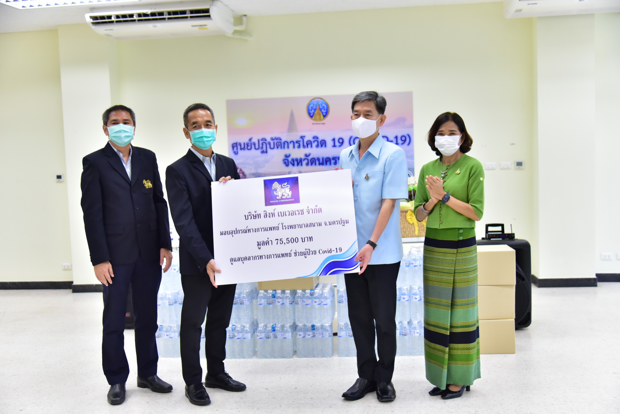 – บริษัท สิงห์เบเวอเรช จำกัด มอบเงินสด จำนวน 90,000 บาท และน้ำดื่ม จำนวน 1,200 ขวด