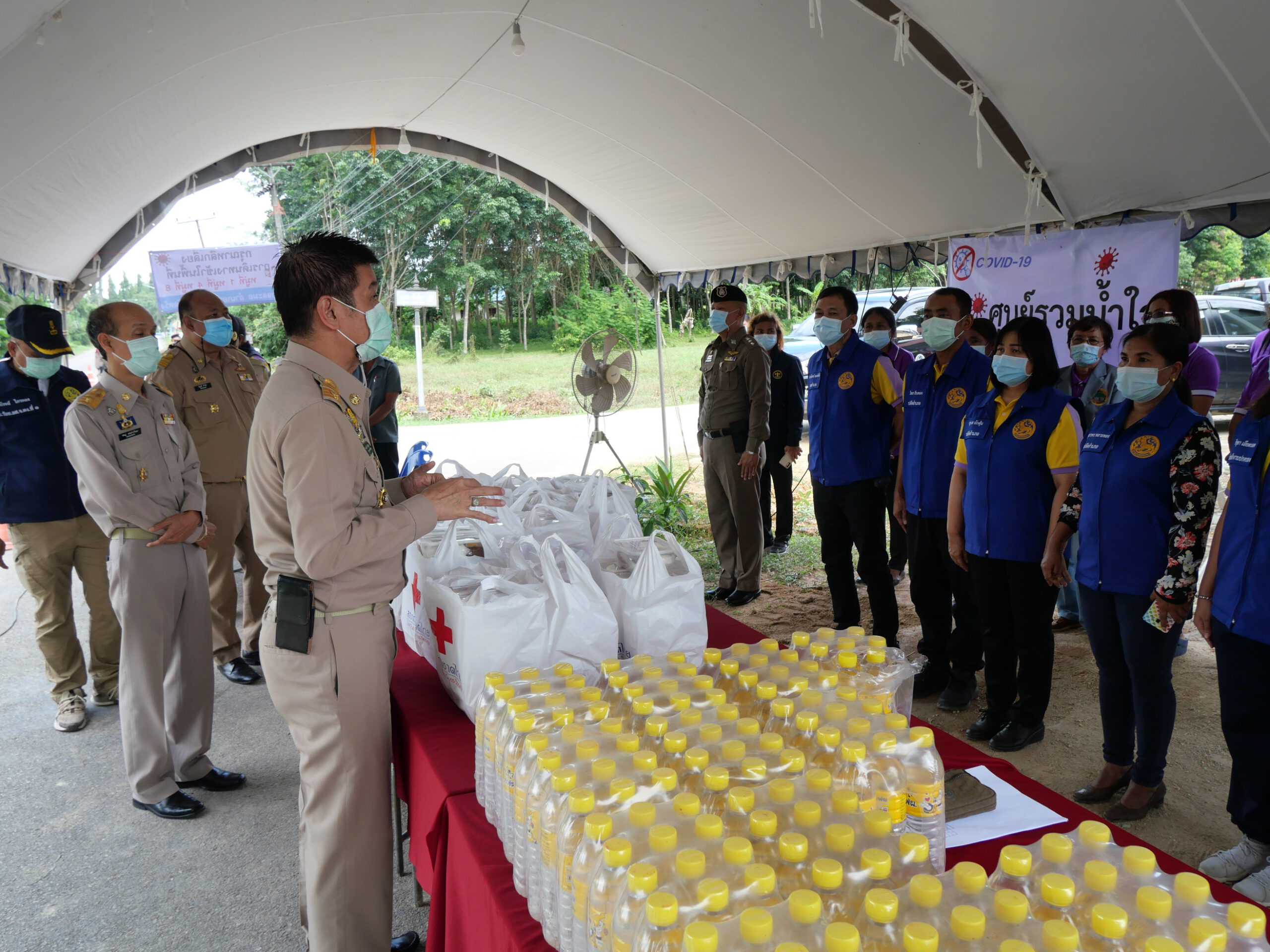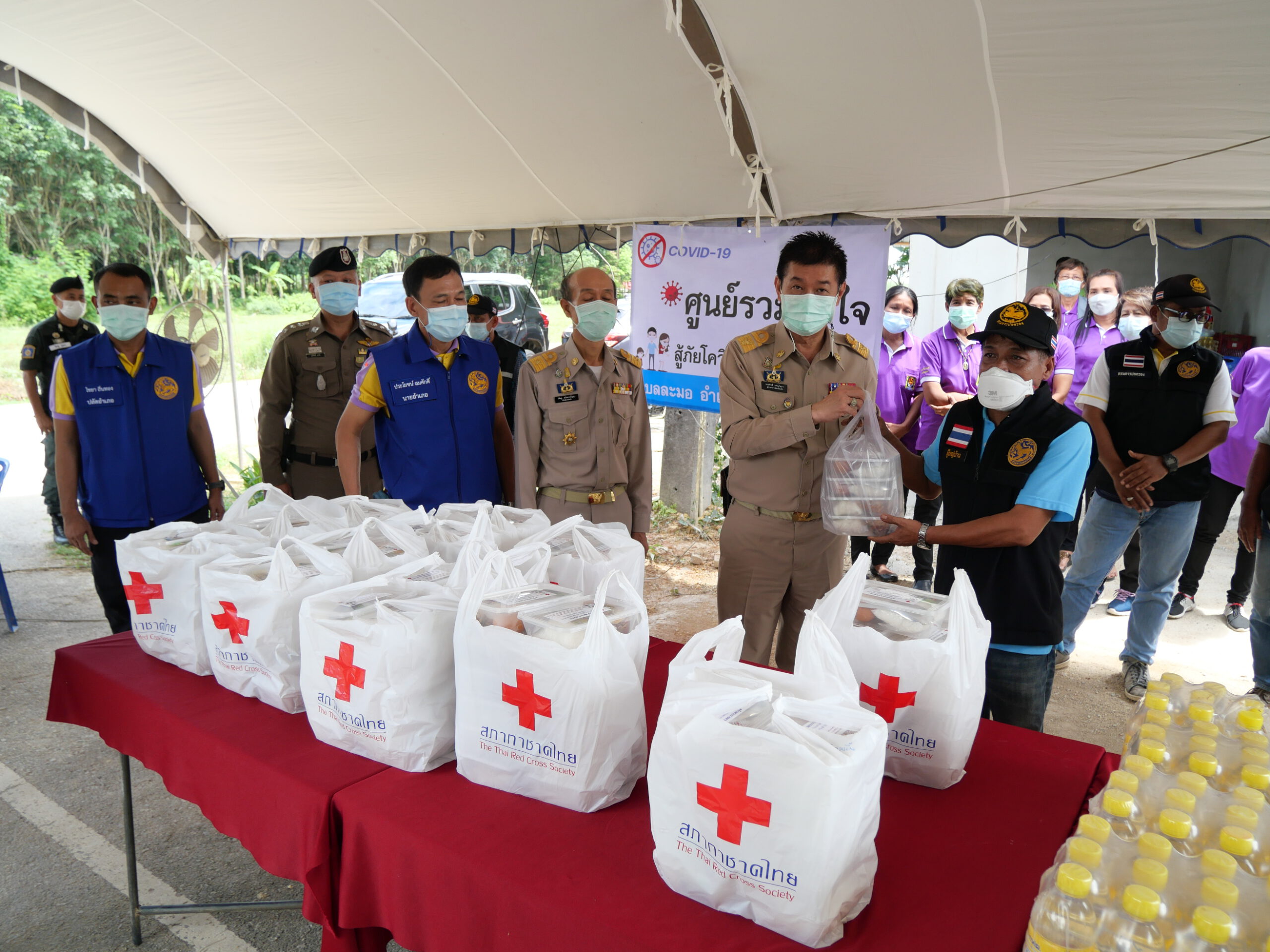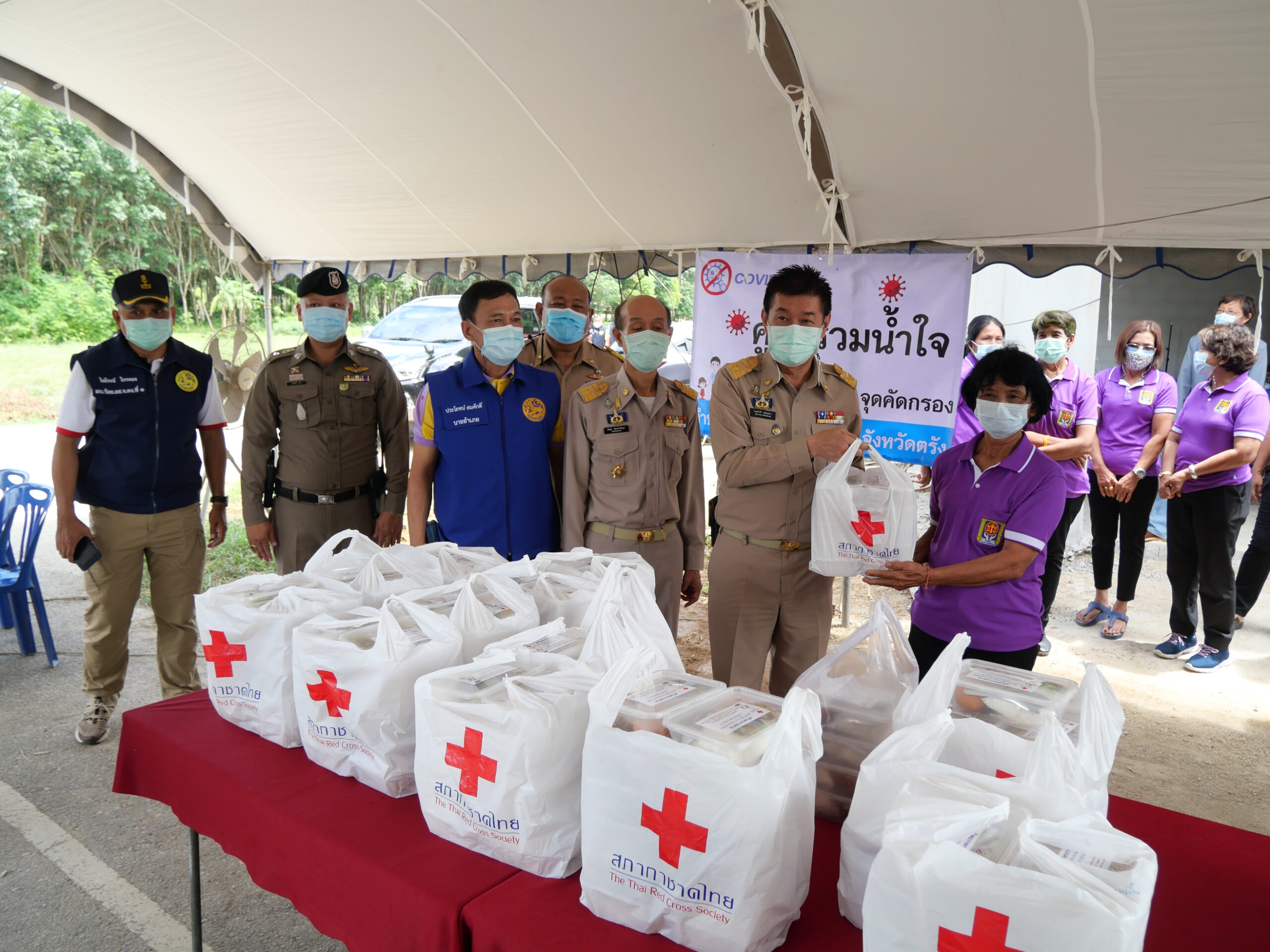 ผู้ว่าราชการจังหวัดตรัง พร้อมด้วยคณะลงพื้นที่มอบข้าวกล่องพระราชทานและน้ำดื่มช่วยเหลือผู้ได้รับผลกระทบจากการแพร่ระบาดของโรคติดเชื้อไวรัสโคโรนา 2019