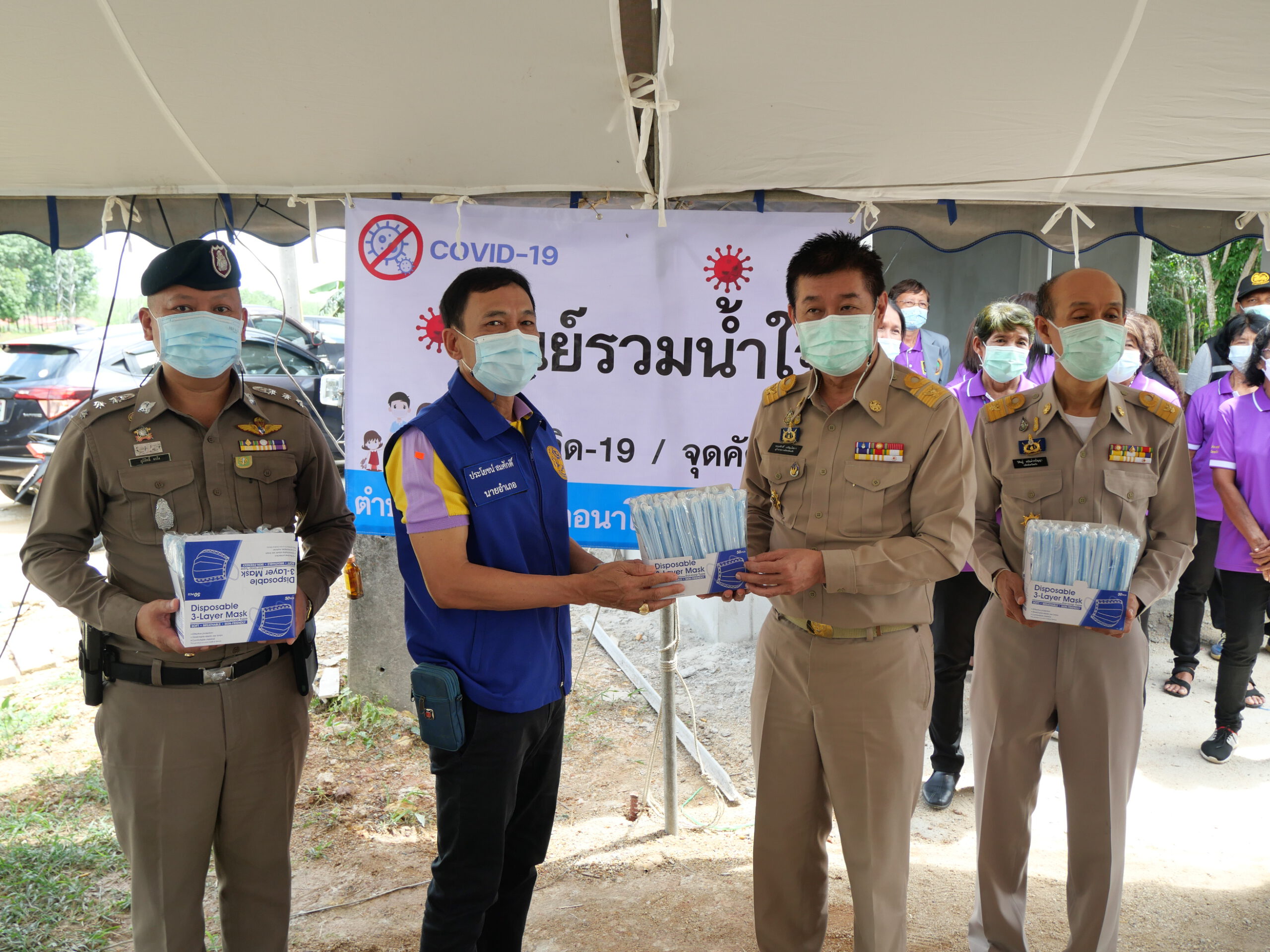 ที่บริเวณปากทางเข้าหมู่บ้านหมู่ที่ 1 และหมู่ที่ 4 ตำบลละมอ อ.นาโยง จ.ตรัง นายขจรศักดิ์ เจริญโสภา ผู้ว่าราชการจังหวัดตรัง พร้อมด้วยนายวิศิษฐ์ อนันต์วรปัญญา ปลัดจังหวัดตรัง นายประโยชน์ สมศักดิ์ นายอำเภอนาโยง พ.ต.อ.ภูมิสิทธิ์ นาวัง ผกก.สภ.นาโยง และหัวหน้าส่วนราชการที่เกี่ยวข้อง ลงพื้นที่มอบข้าวกล่องพระราชทานและน้ำดื่ม หน้ากากอนามัย ให้กับผู้นำหมู่บ้าน เพื่อนำช่วยเหลือผู้ได้รับผลกระทบจากการแพร่ระบาดของโรคติดเชื้อไวรัสโคโรนา 2019 หมู่บ้านหมู่ที่ 1 และหมู่ที่ 4 ตำบลละมอ จำนวน 150 ครัว เรือน พร้อมทั้งขึ้นป้ายเตือนห้ามเข้าภายในหมู่บ้าน หากไม่มีเหตุอันควร เนื่องจากเป็นพื้นที่กักตัว