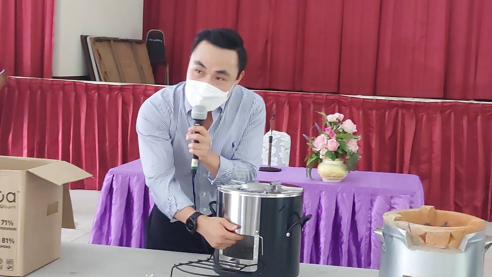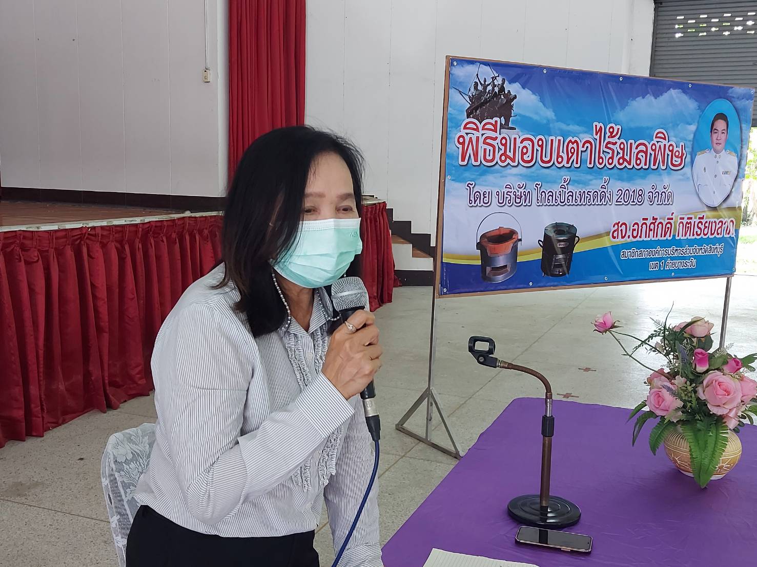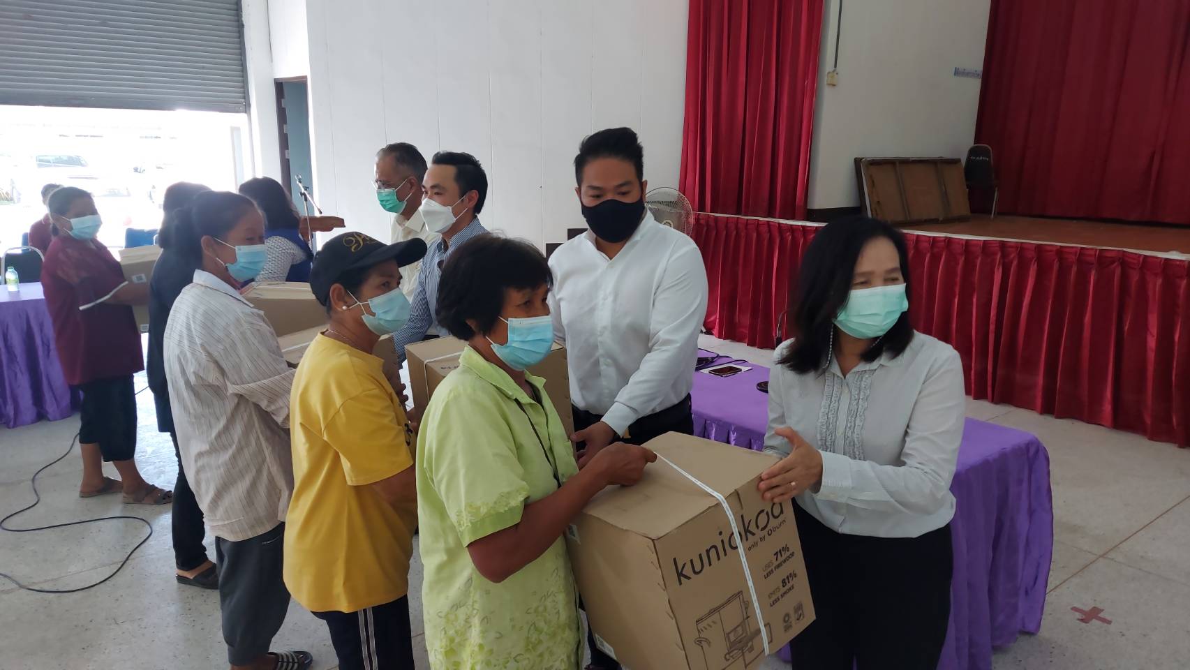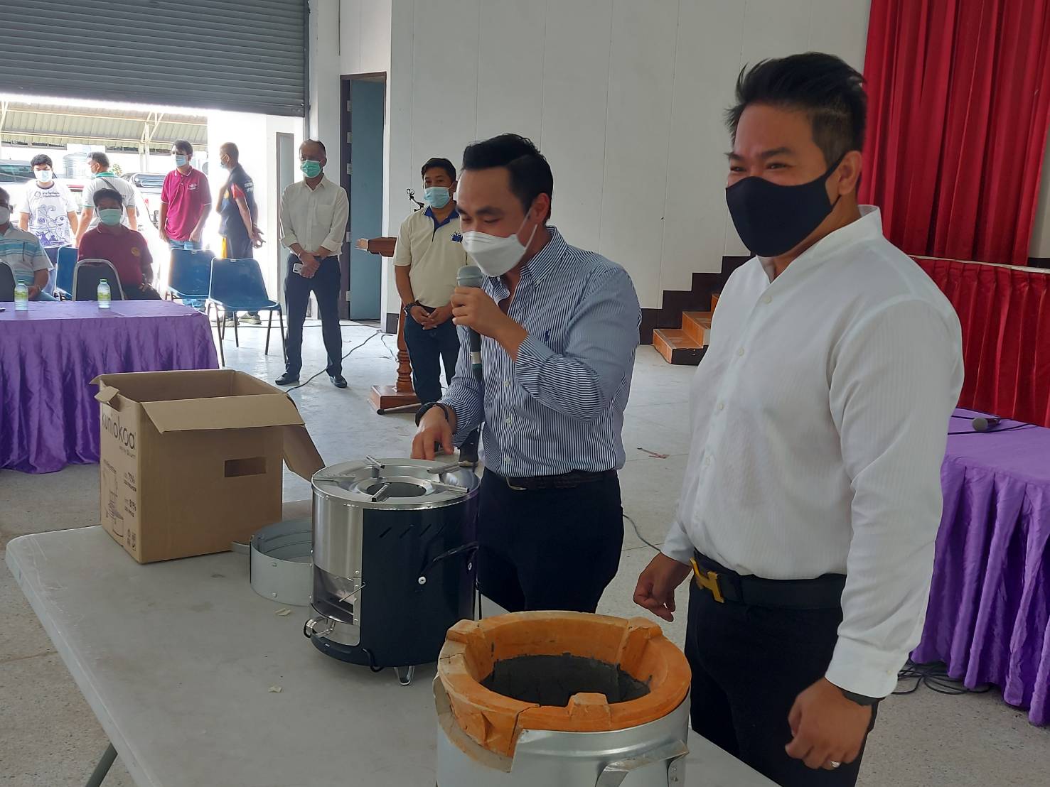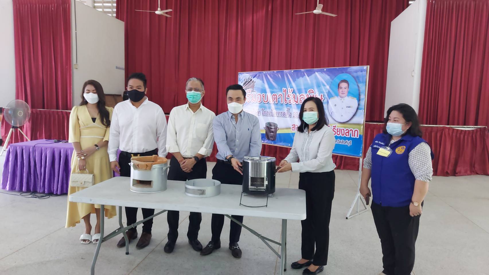 โดยการรับมอบนั้นได้ให้ผู้นำชุมชนในตำบลทั้ง6ตำบล ได้แก่ ตำบลบางระจัน ตำบลโพสังโฆ ตำบลโพทะเล ตำบลท่าข้าม ตำบลคอทราย และตำบลหนองกระทุ่ม จำนวน 19 คน รับไปมอบให้แต่ละครัวเรือน เพื่อลดการรวมกลุ่มในช่วงสถานการณ์การแพร่ระบาดของโรคโควิด-19 และได้ยกตัวอย่างการใช้เตาไร้มลพิษให้ผู้นำชุมชนได้เห็นภาพจริงและเกิดความเข้าใจในขั้นตอนเพื่อนำไปบอกต่อกับชาวบ้านของตนเองและสามารถใช้งานให้เป็นประโยชน์ต่อครัวเรือนต่อไป