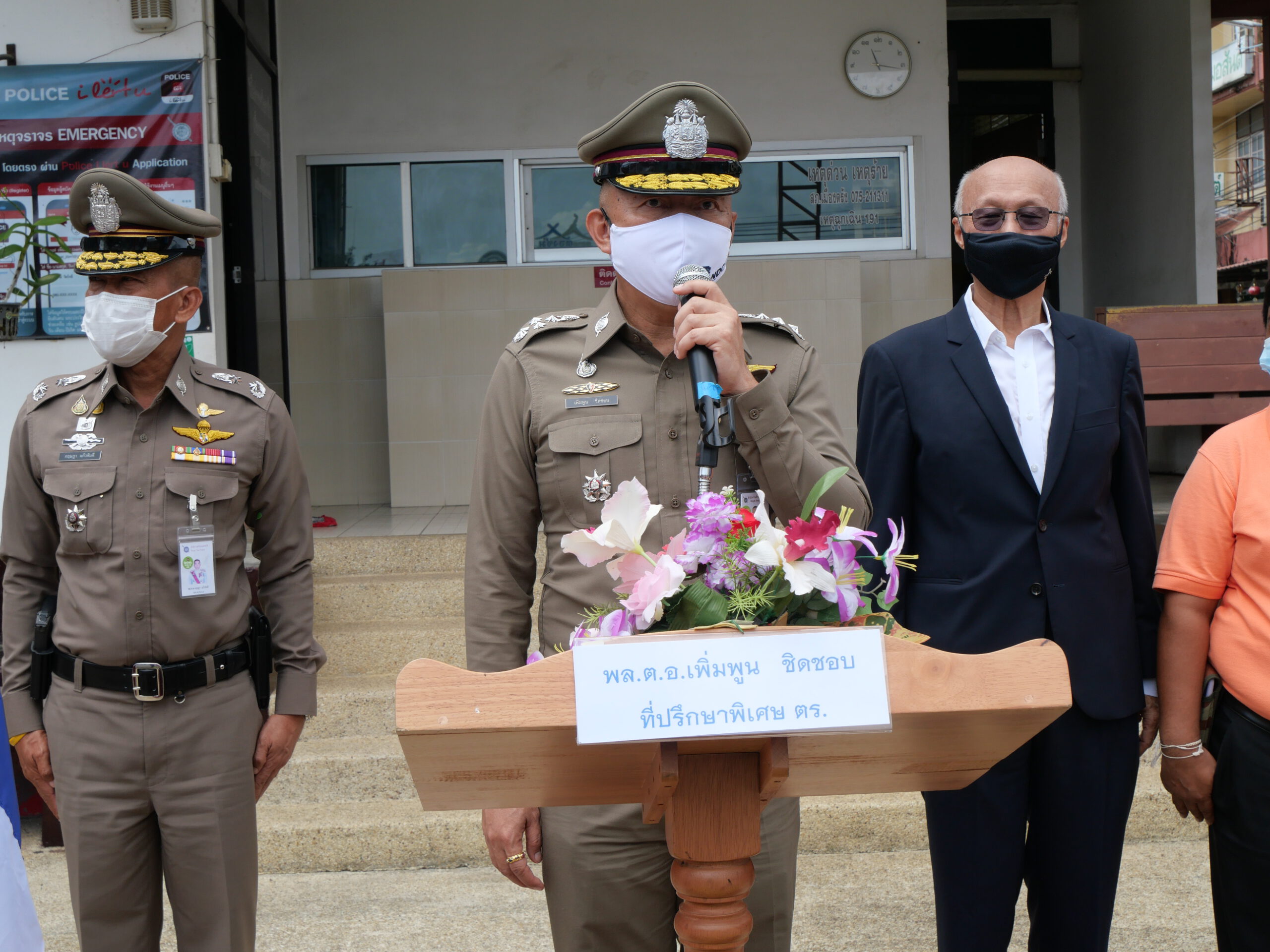 ที่หน่วยบริการประชาชนโกบัง บริเวณสถานีรถไฟตรัง พล.ต.ต.สันทัด วินสน ผู้บังคับการตำรวจภูธรจังหวัดตรัง, พ.ต.อ.สานิตย์ พลเพชร ผู้กำกับการสถานีตำรวจภูธรเมืองตรัง, นายพิชัย มะนะสุทธิ์ ประธาน กต,ตร,อำเภอเมืองตรัง และคณะ กต.ตร.ให้การต้อนรับ พล/ต.อ.เพิ่มพูน ชิดชอบ ที่ปรึกษาพิเศษ สำนักงานตำรวจแห่งชาติ ที่เดินทางมามอบถุงยังชีพให้กับเจ้าหน้าที่ตำรวจสังกัดตำรวจภูธรเมืองตรัง จำนวน 10 ชุด เพื่อเป็นการสร้างขวัญและกำลังใจให้กับเจ้าหน้าที่ตำรวจ รวมไปถึงช่วยแบ่งเบาภาระค่าใช้จ่ายของครอบครัวเจ้าหน้าที่ตำรวจ