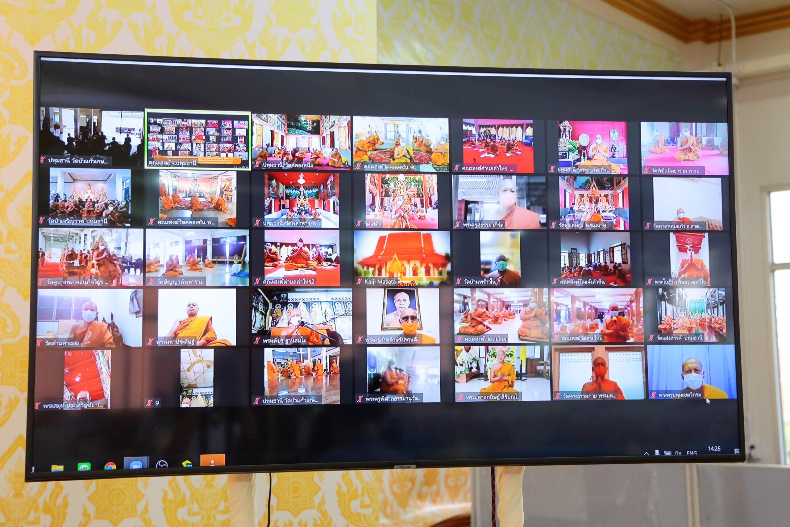 โดยได้รับความเมตตาจากพระเดชพระคุณพระธรรมรัตนาภรณ์ เจ้าคณะจังหวัดปทุมธานี เจ้าอาวาสวัดเขียนเขต พระอารามหลวง เป็นประธานฝ่ายสงฆ์ พร้อมด้วยรองเจ้าคณะจังหวัด, เจ้าคณะอำเภอ 7 อำเภอ และผู้แทนคณะสงฆ์ เข้าร่วมพิธีฯ โดยมีนายชัยวัฒน์ ชื่นโกสุม ผู้ว่าราชการจังหวัดปทุมธานี เป็นประธานฝ่ายฆราวาส พร้อมด้วย นายดรณ์ สมิตะเกษตริน ปลัดจังหวัดปทุมธานี พลตำรวจโทคำรณวิทย์ ธูปกระจ่าง นายกองค์การบริหารส่วนจังหวัดปทุมธานี นางสาวฐิต์ณัฐ สมบัติศิริ วัฒนธรรมจังหวัดปทุมธานี หัวหน้าส่วนราชการ ผู้บริหารองค์กรปกครองส่วนท้องถิ่น และผู้บริหารภาคีเครือข่ายผู้สนับสนุน เข้าร่วมพิธีฯ ซึ่งศูนย์กลางการถ่ายทอดสดจากวัดเขียนเขต พระอารามหลวง มีเจ้าอาวาส และคณะสงฆ์ทั่วทั้งจังหวัดปทุมธานี รวมถึงพุทธศาสนิกชน เข้าร่วมพิธีฯ ผ่านช่องทาง Online สื่ออิเล็กทรอนิกส์ระบบ Zoom อย่างพร้อมเพรียง
