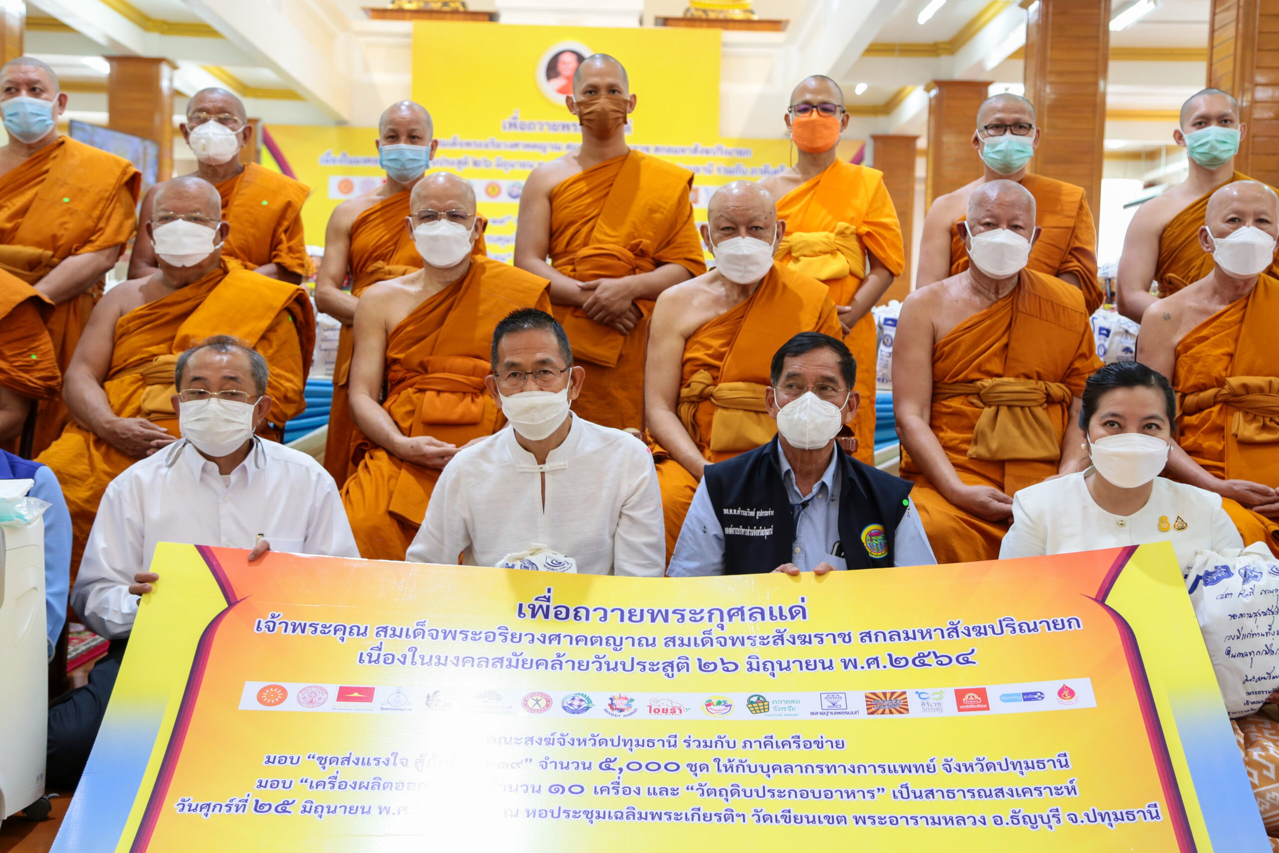 คณะสงฆ์ปทุมธานี ร่วมภาคี เจริญพระพุทธมนต์ – มอบชุดส่งแรงใจสู้ภัยโควิด19 ถึงบุคลากรทางการแพทย์ 5,000 ชุด ถวายพระกุศลเจ้าพระคุณสมเด็จพระสังฆราช ในมงคลสมัยคล้ายวันประสูติ