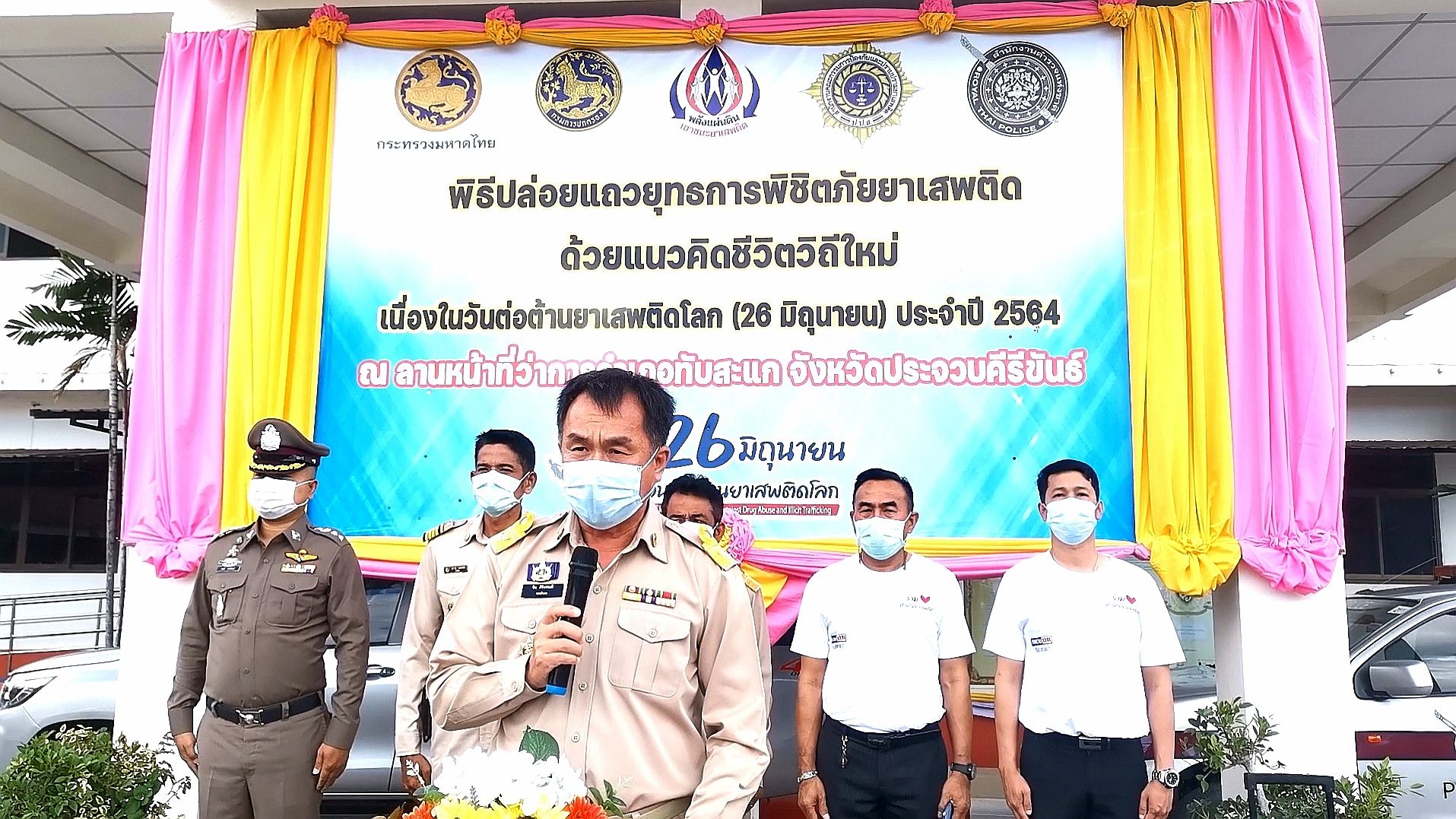 นายชิน ศิริวรรณดี นายอำเภอทับสะแก กล่าวว่า ปัญหายาเสพติดมีการเปลี่ยนแปลงและแพร่ระบาดในระดับหมู่บ้าน/ชุมชนทั่วประเทศ การแก้ไขปัญหายาเสพติดให้ประสบความสำเร็จ จะแก้ไขปัญหาโดยอาศัยกลไกของรัฐแต่เพียงฝ่ายเดียวเป็นไปได้ยาก ประชาชนในพื้นที่ จึงถือเป็นกำลังสำคัญที่จะทำให้การแก้ไขปัญหายาเสพติดเกิดประสิทธิภาพและเกิดความยั่งยืน ดังนั้น การดำเนินกิจกรรมจึงเน้นการสร้างการมีส่วนร่วมในการป้องกันและแก้ไขปัญหายาเสพติด เพื่อต้องการลดผลกระทบที่เกิดจากปัญหายาเสพติด ในสังคม สร้างความมั่นคง ปลอดภัย และลดความเดือดร้อนของประชาชนในหมู่บ้าน/ชุมชน โดยมี กลไกการขับเคลื่อนในพื้นที่ทุกระดับ ตั้งแต่จังหวัด อำเภอ ตำบล และหมู่บ้าน/ชุมชน