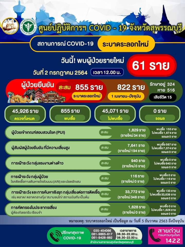 สุพรรณบุรีผวาโควิด19พบ3คลัสเตอร์ยอดผู้ป่วยพุ่ง61รายผู้ว่าปิดศาลากลางสั่งเวิร์คฟอร์มโฮม1วัน