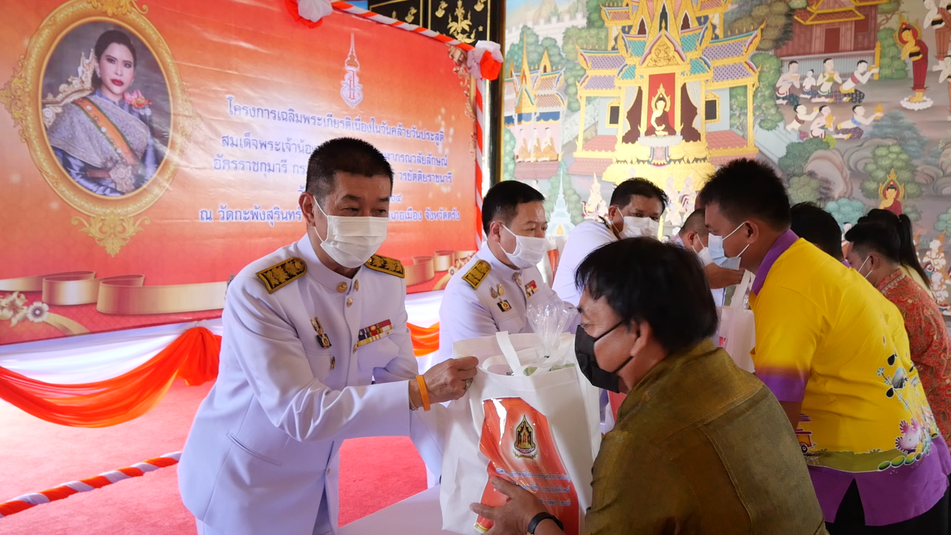 หลังจากเสร็จพิธีเจริญพระพุทธมนต์แล้ว นายขจรศักดิ์ เจริญโสภา ผู้ว่าราชการจังหวัดตรัง ได้ทำพิธีมอบถุงยังชีพให้กับตัวแทนศิลปินที่ได้รับความเดือดร้อนจากการแพร่ระบาดของโควิด-19 จำนวน 50 ชุด เพื่อถวายเป็นพระราชกุศลแด่สมเด็จพระเจ้าน้องนางเธอ เจ้าฟ้าจุฬาภรณวลัยลักษณ์ อัครราชกุมารี กรมพระศรีสวางควัฒน วรขัตติยราชนารี เนื่องในวันคล้ายวันประสูติ 4 กรกฎาคม