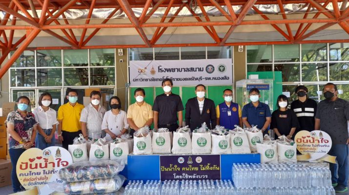 กลุ่ม EVERGREEN วัดนักบุญมาร์โก ร่วม สวจ.ปทุมธานี มอบถุงปันน้ำใจ เสริมกำลังโรงพยาบาลสนาม ม.ธัญบุรีและอำเภอหนองเสือ ปทุมธานี สู้ภัยโควิด-19