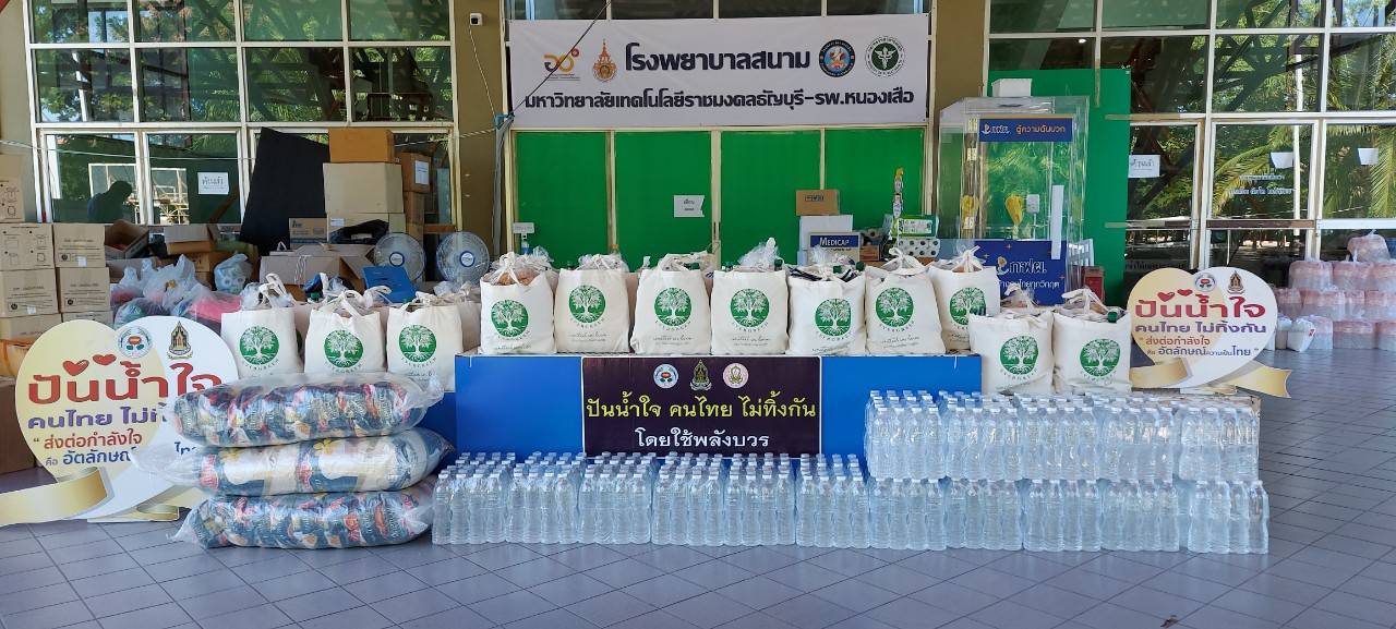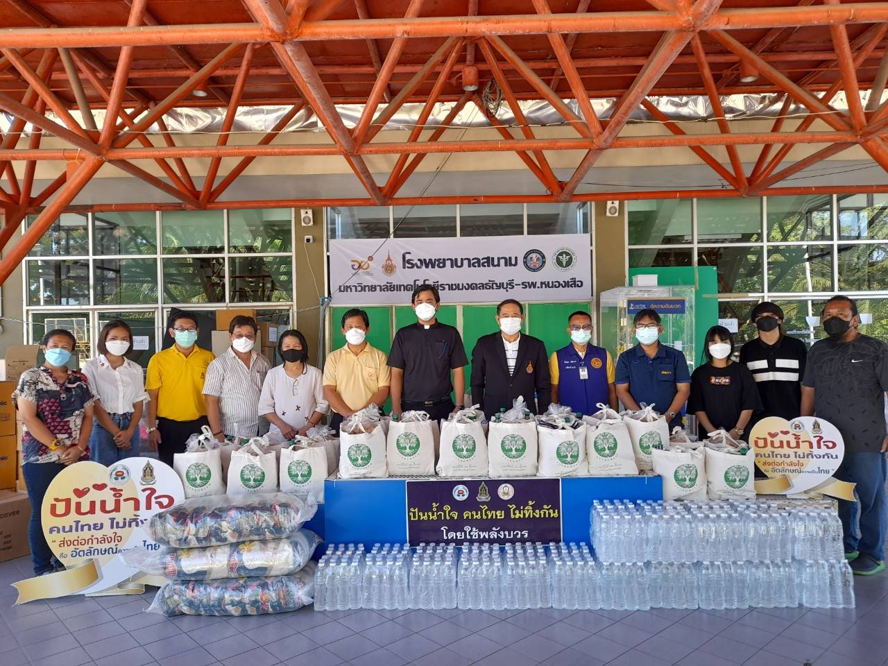 เมื่อเวลา 09.00 น. วันที่ 4 ก.ค.64 นางสาวฐิต์ณัฐ สมบัติศิริ วัฒนธรรมจังหวัดปทุมธานี มอบหมายให้ นายมงคล ธิดาธัญลักษณ์ ผู้อำนวยการกลุ่มส่งเสริมศาสนา ศิลปะและวัฒนธรรม พร้อมด้วย บาทหลวงไตรรงค์ มุลตรี นายมิตต์ กุลอนุสถาพร ผู้อำนวยการสภาอภิบาลวัดนักบุญมาร์โก ข้าราชการสำนักงานวัฒนธรรมจังหวัดปทุมธานีและกลุ่ม evergreen โดยนางเกศินี สุขสิริสรณ์ ผู้แทนกลุ่ม evergreen และคณะ นำถุงปันน้ำใจ 200 ถุง และน้ำดื่ม จำนวน 75 แพค ข้าวสาร 15 กิโลกรัม จำนวน 5 ถุง และวุ้นเส้น จำนวน 500 ห่อ หน้ากากอนามัย แอลกอฮอล์ เจลล้างมือ ให้กับโรงพยาบาลสนาม มหาวิทยาลัยเทคโนโลยีราชมงคลธัญบุรี มามอบให้ เพื่อสนับสนุนการทำงานของบุคลากรทางการแพทย์ เจ้าหน้าที่ และผู้ป่วยโควิด ที่รักษาตัว ภายใต้โครงการ “ปันน้ำใจ คนไทยไม่ทิ้งกัน” โดยมี ผศ.ดร.สมหมาย ผิวสอาด อธิการบดีมหาวิทยาลัยเทคโนโลยีราชมงคลธัญบุรี นายวีรวัฒน์ ซ่อมสุข ผู้อำนวยการกองสถานที่ ว่าที่ร้อยตรี พิชญะ เพียรราช ปลัดอำเภอคลองหลวง เป็นผู้รับมอบ เพื่อช่วยเหลือบุคลากรทางการแพทย์ และผู้ที่ได้รับผลกระทบจากสถานการณ์การแพร่ระบาดโรคติดเชื้อไวรัสโคโรนา 2019(COVID-19) ณ โรงพยาบาลสนามมหาวิทยาลัยเทคโนโลยีราชมงคลธัญบุรี อำเภอคลองหลวง จังหวัดปทุมธานี