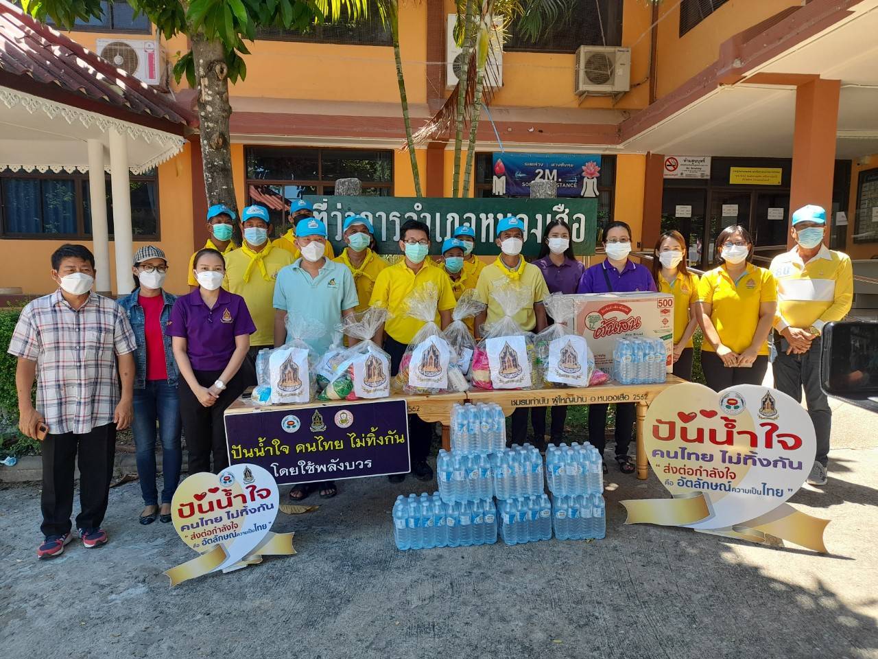จากนั้นเวลา 10.30 น.คณะสำนักงานวัฒนธรรมจังหวัดปทุมธานี เดินทางไปที่อำเภอหนองเสือ มอบเครื่องอุปโภคบริโภค อาทิ น้ำดื่ม จำนวน 10 แพค และวุ้นเส้น 500 ห่อ และร่วมกับ วัดนักบุญมาร์โก ปทุมธานี และกลุ่ม evergreen มอบถุงปันรัก จำนวน 100 ถุง และน้ำดื่ม จำนวน 30 แพค ให้กับนายสมชาย ตรีนาวงษ์ นายอำเภอหนองเสือ เพื่อส่งต่อให้กับผู้ที่ได้รับผลกระทบจากสถานการณ์การแพร่ระบาดโรคติดเชื้อไวรัสโคโรนา 2019 (COVID-19) โดยมี นายวริศ เจริญกัลป์ นายกเทศมนตรีตำบลหนองเสือ นายสมเดช เอี่ยมไชย กำนันตำบลบึงบา ผู้ใหญ่บ้าน ผู้ช่วยผู้ใหญ่บ้าน สารวัตรกำนันตำบลบึงบา ร่วมรับมอบ ณ ที่ว่าการอำเภอหนองเสือ จังหวัดปทุมธานี