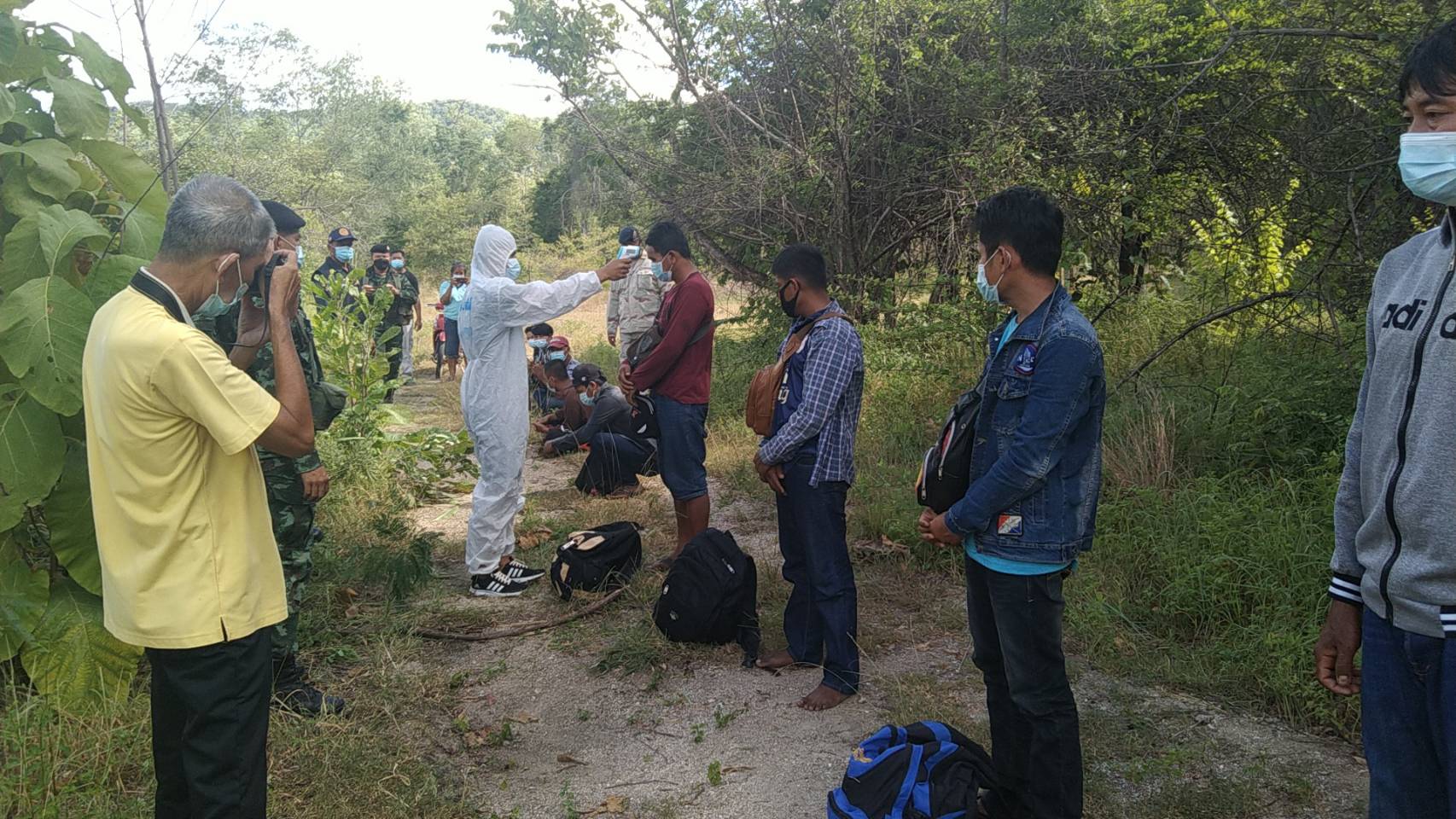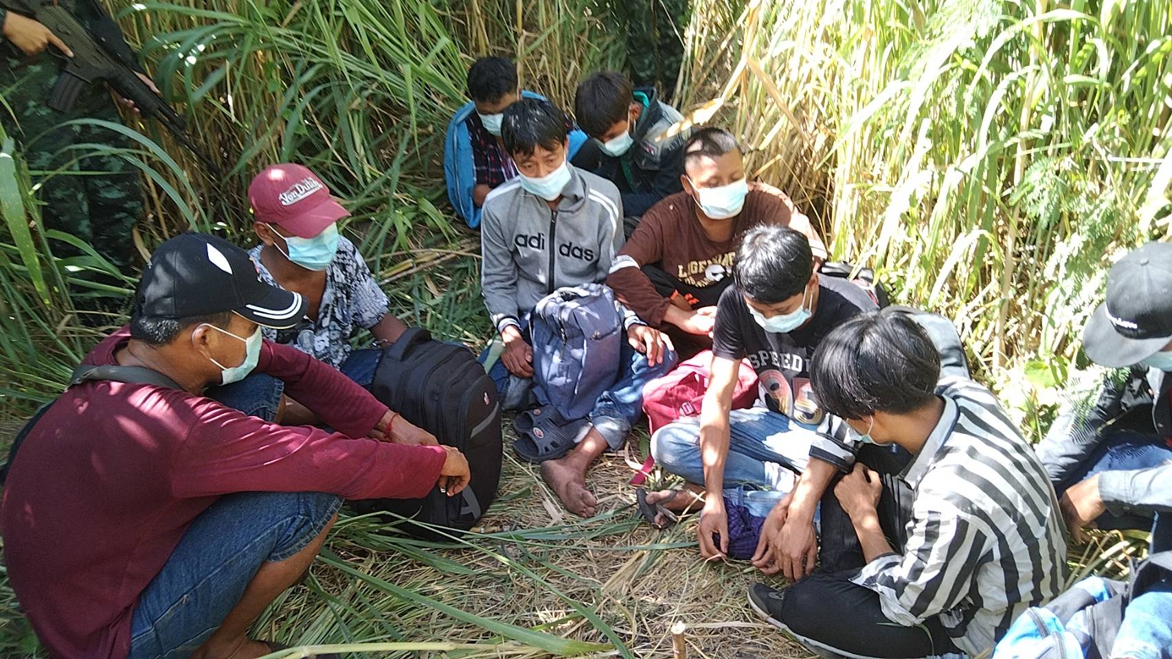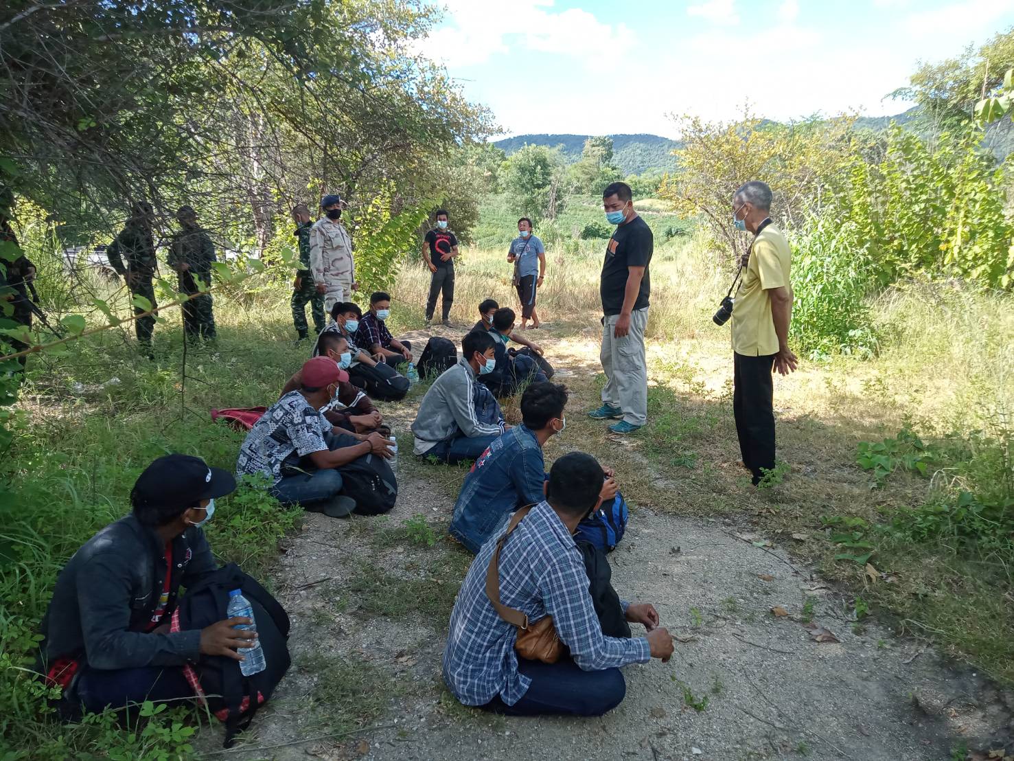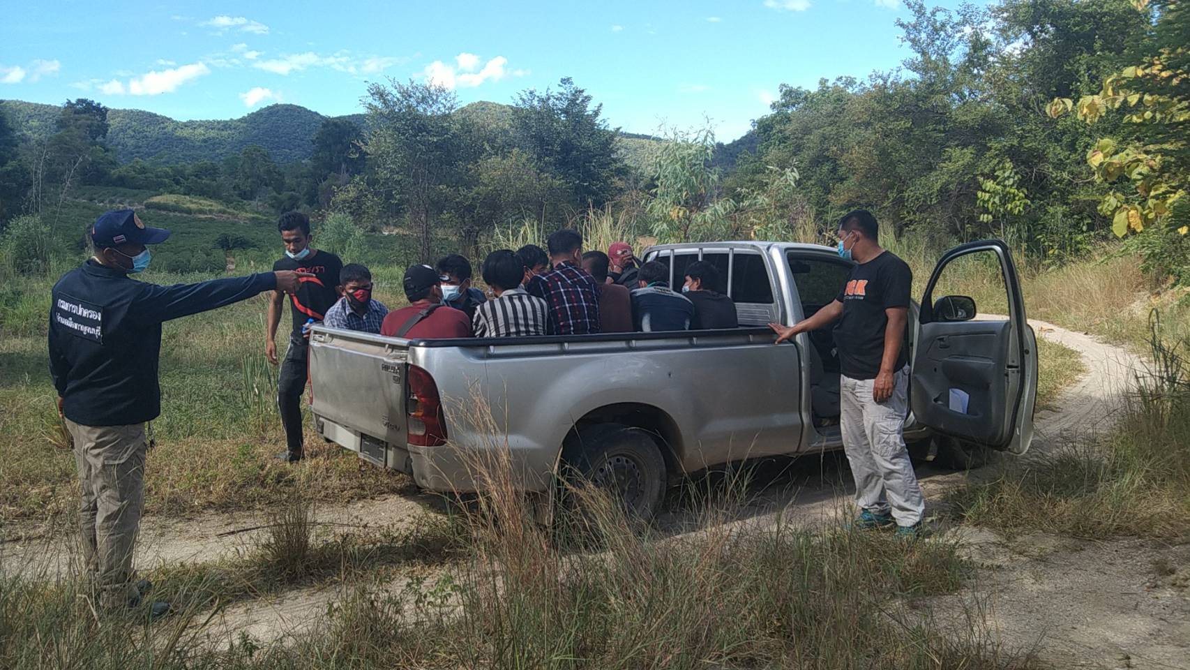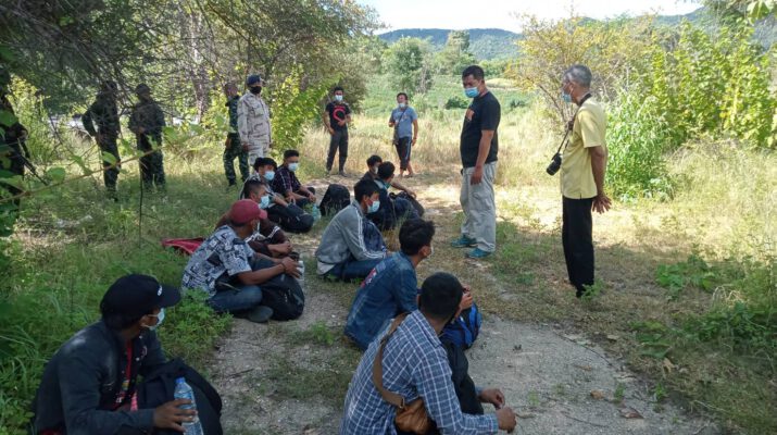 กาญจนบุรี เจ้าหน้าที่ชุดประสานงานข่าว กองกำลังสุรสีห์ พร้อมผู้ใหญ่บ้านจับขบวนการขนแรงงานต่างด้าวหลบหนีเข้าเมือง มีการแยก หญิงและชายระหว่างนำพา