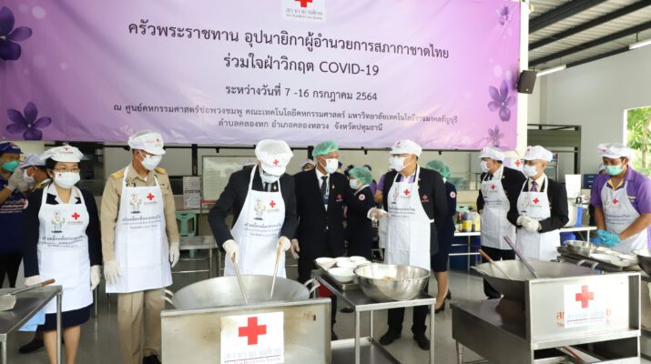 สมเด็จพระกนิษฐาธิราชเจ้า กรมสมเด็จพระเทพรัตนราชสุดา ฯ สยามบรมราชกุมารี อุปนายิกาผู้อำนวยการสภากาชาดไทย ทรงห่วงใยและทรงตระหนักถึงความเดือดร้อนของราษฎรที่ได้รับผลกระทบจากสถานการณ์การแพร่ระบาดของโรคโควิด-19 จึงพระราชทานพระราชานุญาตให้สภากาชาดไทย โดยสำนักงานบรรเทาทุกข์และประชานามัยพิทักษ์ จัดตั้ง “ครัวพระราชทาน อุปนายิกาผู้อำนวยการสภากาชาดไทย” ณ ศูนย์คหกรรมศาสตร์ช่อพวงชมพู คณะเทคโนโลยีคหกรรมศาสตร์ มหาวิทยาลัยเทคโนโลยีราชมงคลธัญบุรี อำเภอคลองหลวง จังหวัดปทุมธานี ในระหว่างวันที่ 7 – 19 กรกฏาคม 2564 เพื่อประกอบอาหารปรุงสุกใหม่ สำหรับนำไปมอบให้แก่ประชาชนในพื้นที่จังหวัดปทุมธานี นับตั้งแต่เกิดการแพร่ระบาดของโรคโควิด-19