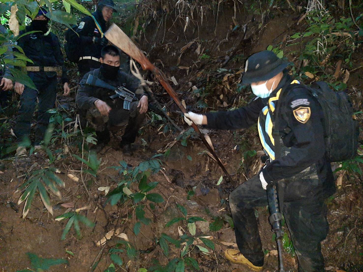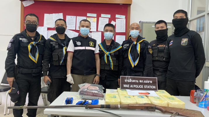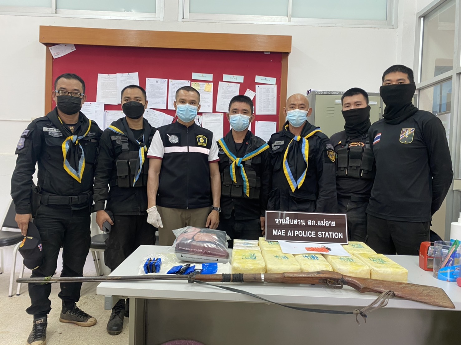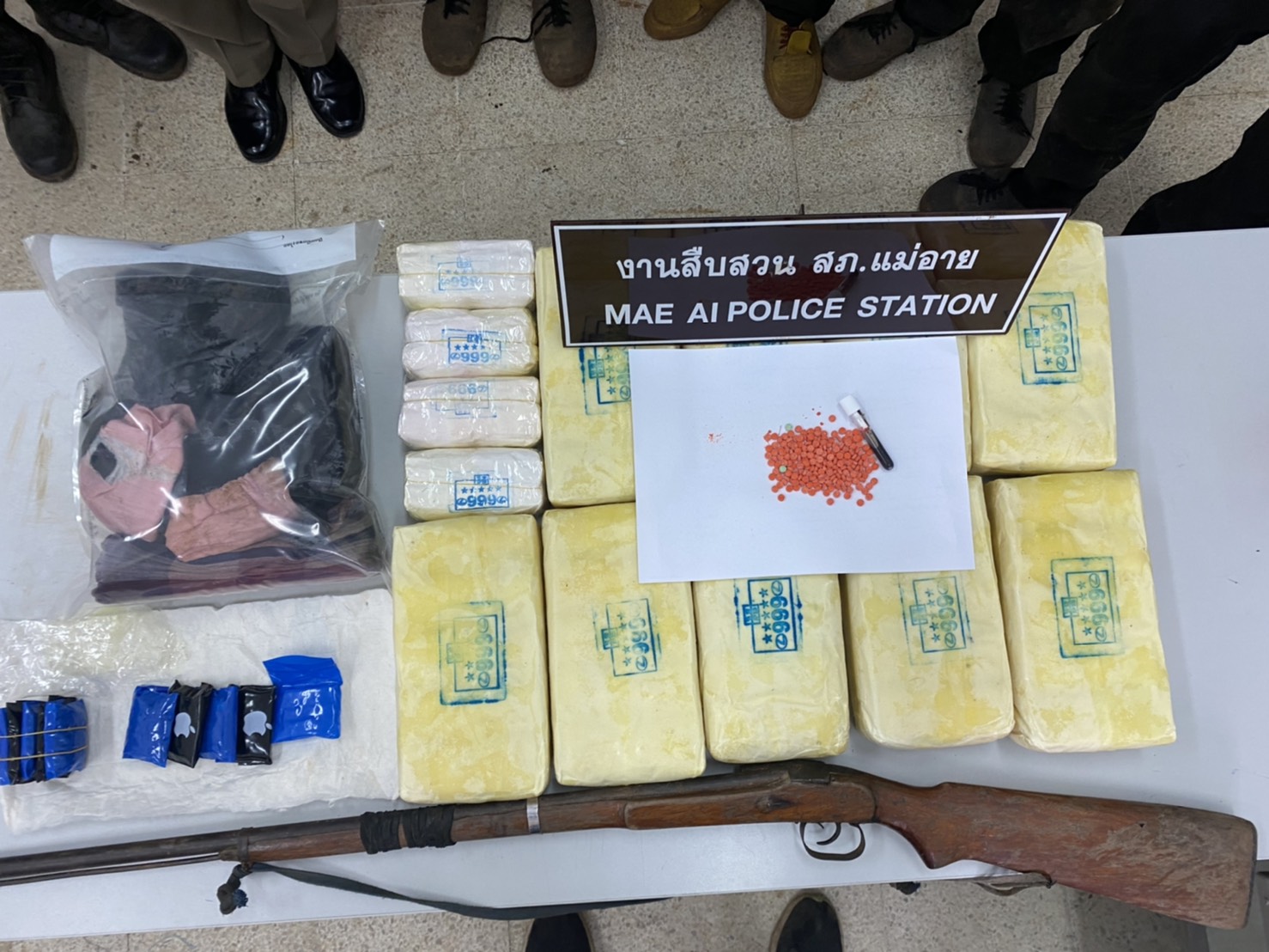 หน่วยจึงได้แสดงตัวเพื่อขอทำการตรวจค้น แต่กลุ่มบุคคลดังกล่าว เมื่อเห็น จนท. ได้ทำการยิงปืนเพื่อเปิดทางหนี จนท.จึงได้ยิงตอบโต้ เป็นเวลา 5นาที และได้ทำการตึงกำลังบริเวณพื้นที่ดังกล่าว ต่อมาจนท.จึงได้ทำการตรวจสอบพื้นที่ พบเป็นเป้กระสอบปุ๋ยดัดแปลง ภายในบรรจุยาเสพติดให้โทษประเภทที่ 1(ยาบ้า) จำนวน 1เป้ รวม 100,000 เม็ด และปืนแก็ป จำนวน 1กระบอกทราบว่าจะนำยาบ้าส่งนายทุนในตัวเมืองแม่อาย เพื่อส่งจำหน่ายในเมืองใจกลางไทยทางหน่วยปฏิบัติการจึงได้นำของกลางนำส่ง จนท.ตร.สภ.แม่อาย เพื่อติดตามขยายผล และดำเนินคดีตามกฎหมายต่อไป