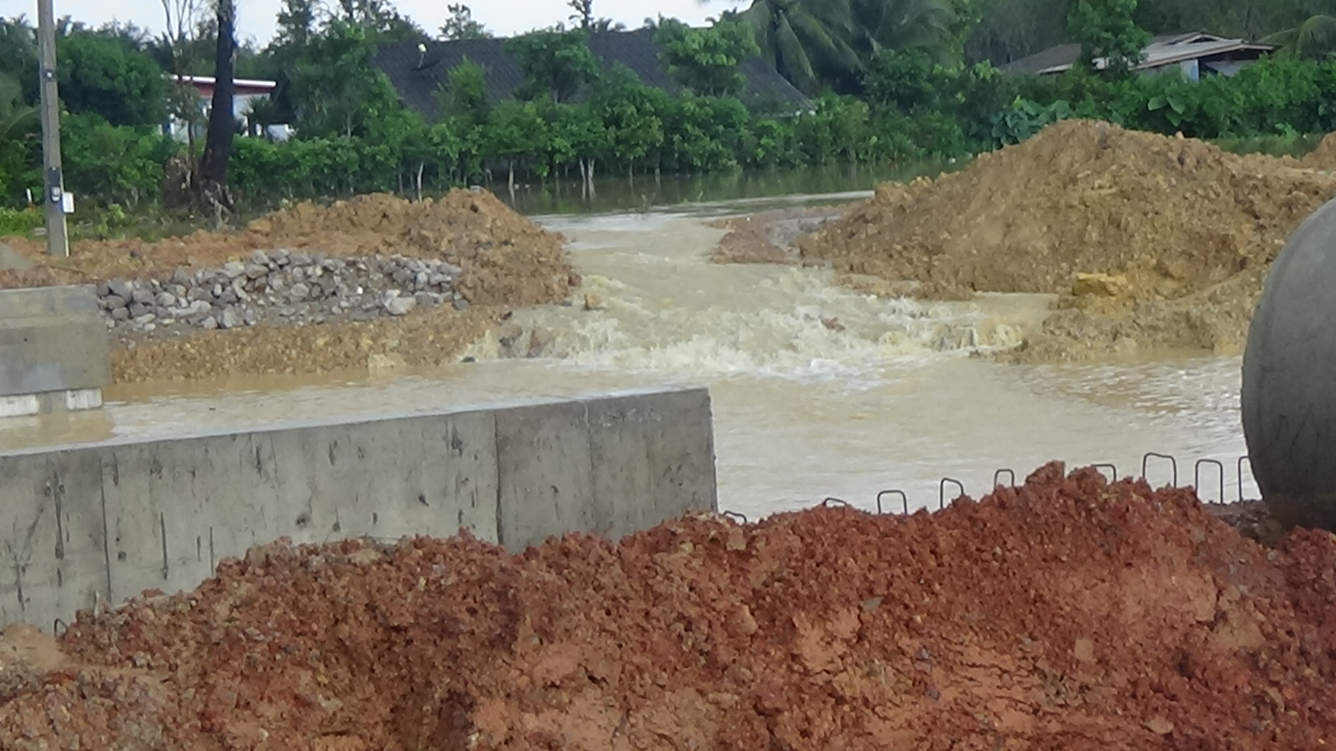 นายอำเภอนาโยง จังหวัดตรัง ลงพื้นที่การขุดคลองผันน้ำ เพื่อป้องกันและแก้ไขปัญหาน้ำท่วม หลังจากที่ชาวบ้านร้องเรียนว่าผู้รับเหมาโครงการระเบิดหินทำให้เกิดแรงสั่นสะเทือนและหินกระเด็นไปตกที่หลังคาของชาวบ้านทำให้ได้รับความเดือดร้อน