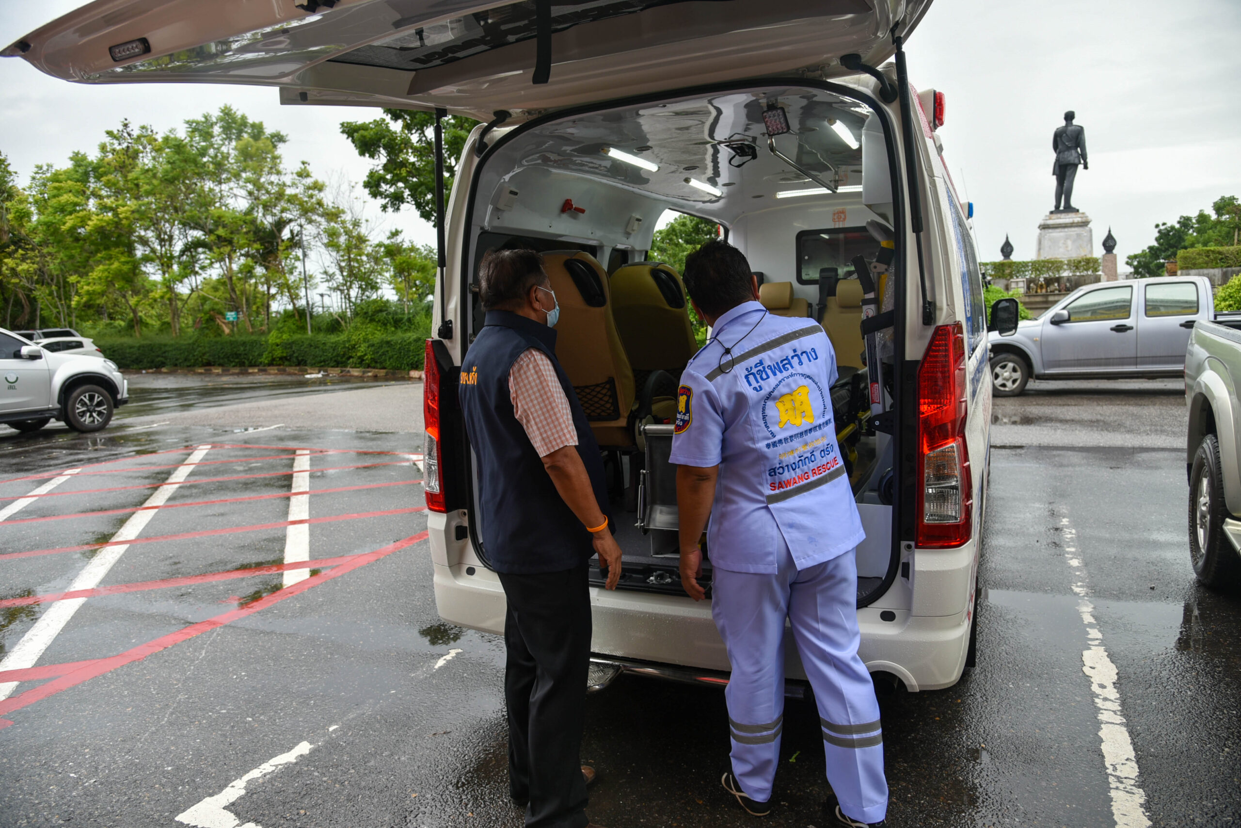 ที่บริเวณด้านหน้าสำนักงานองค์การบริหารส่วนจังหวัดตรังนายบุ่นเล้ง โล่สถาพรพิพิธ นายกองค์การบริหารส่วนจังหวัดตรัง มอบหมายให้ นายโชคดี คีรีกิ้น รองนายกองค์การบริหารส่วนจ.ตรัง พร้อมด้วยนายกิตติเดช วรรณบวร ประธานสภา อบจ.ตรัง ปลัด อบจ.ตรัง และสมาชิกสภา อบจ.ตรัง เขตอำเภอเมืองตรัง นำร่องปล่อยรถกู้ภัย ซึ่งเป็นของมูลนิธิสว่างภักดีตรังจำนวน 1 คัน เพื่อไปรับผู้ป่วยโควิด -19 ยืนยันจากกรุงเทพฯ จำนวน 3 รายที่ไม่มีเตียงรักษา กลับมารักษาตัวที่โรงพยาบาลสนามในจ.ตรัง โดยมีนายอิทธินันท์ ไทรงาม หัวหน้ากู้ภัยสว่างภักดีตรังอำเภอเมืองและนายไพรัช เพ็งทองแก้ว หัวหน้ากู้ภัยสว่างภักดีตรังจุดนาโยง เดินทางไปรับผู้ป่วยโควิด-19 เป็นทีมที่ 1