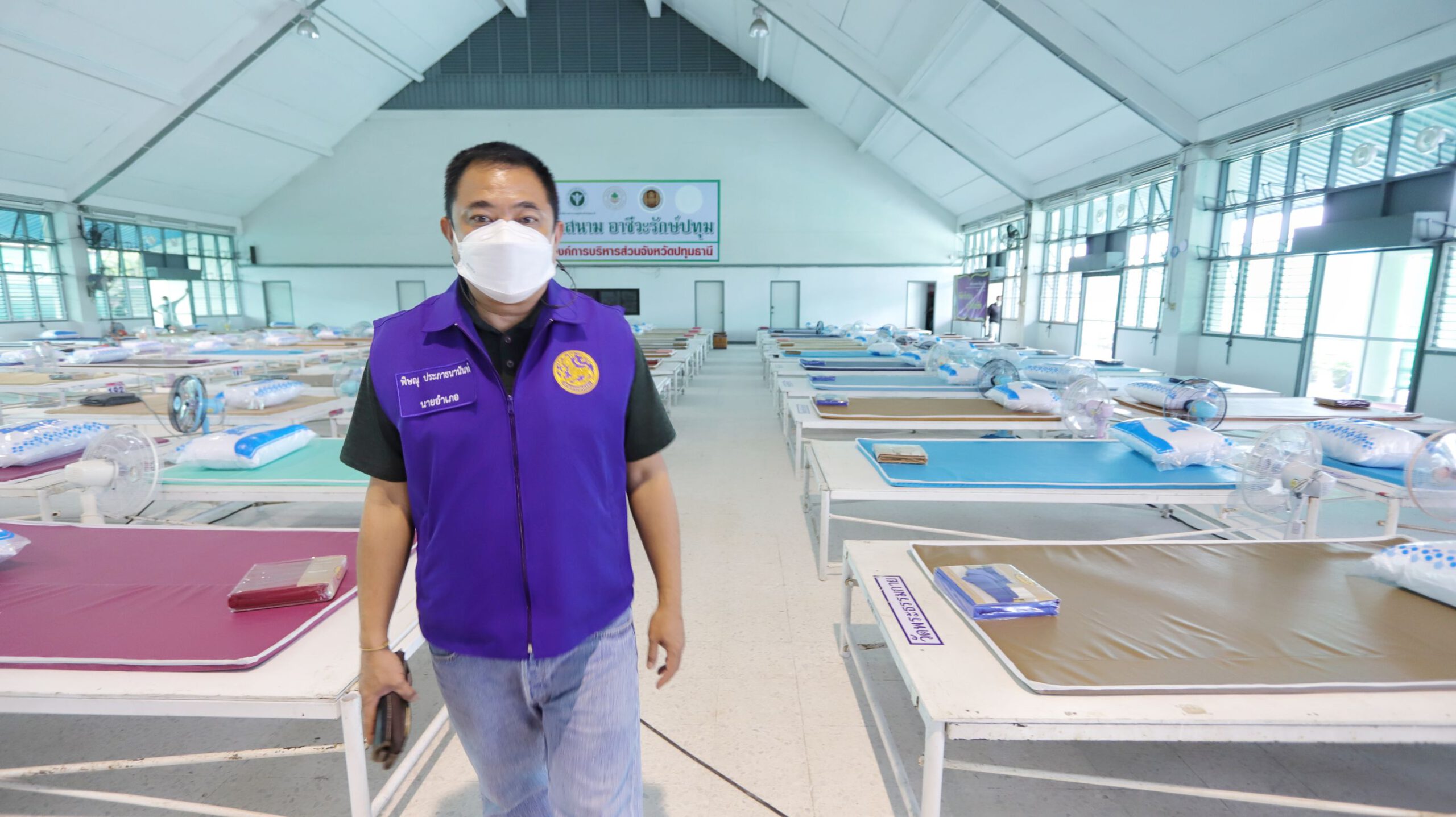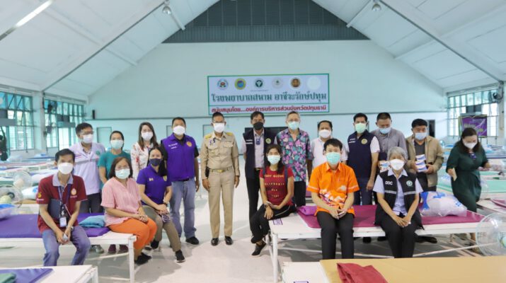 เมื่อเวลา 17.30 น.วันที่ 11 ก.ค.2564 ที่อาคารอเนกประสงค์ วิทยาลัยการอาชีวศึกษาปทุมธานี ต.บางพูน อ.เมือง จ.ปทุมธานี นายชัยวัฒน์ ชื่นโกสุม ผู้ว่าราชการจังหวัดปทุมธานี นายพิษณุ ประภาธนานันท์ นายอำเภอเมืองปทุมธานี พล.ต.ท.คำรณวิทย์ ธูปกระจ่าง นายกองค์การบริหารส่วนจังหวัดปทุมธานี นายเสวก ประเสริฐสุข รองนายกองค์การบริหารส่วนจังหวัดปทุมธานี พร้อมด้วยสาธารณสุขจังหวัดปทุมธานี ลงพื้นที่ตรวจความคืบหน้าการตั้งโรงพยาบาลสนาม 500 เตียง เพื่อรองรับผู้ป่วยโควิด-19