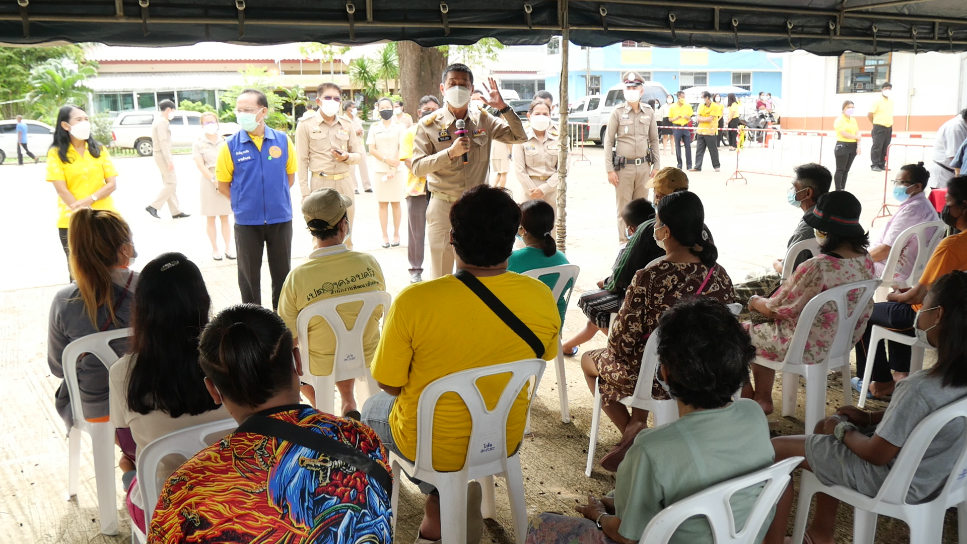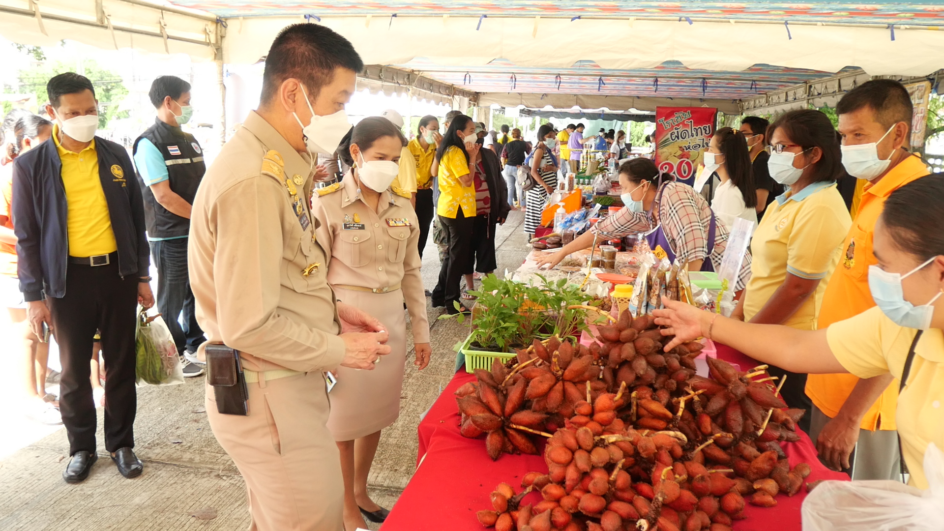 นายขจรศักดิ์ เจริญโสภา ผู้ว่าราชการจังหวัดตรัง กล่าวว่า การนำสินค้ามาจำหน่ายให้กับประชาชน เพื่อเป็นการบรรเทาความเดือดร้อนของประชาชนที่ได้รับผลกระทบจากการแพร่ระบาดโควิด 19 ซึ่งสินค้าที่นำมาจำหน่ายจะมีราคาถูกกว่าท้องตลาดประมาณ 30-40 เปอร์เซ็นต์ และในการจำหน่ายสินค้ายังคงมาตรการป้องกันโรคส่วนบุคคล สวมใส่หน้ากากอนามัยตลอดเวลา มีการวัดอุณหภูมิ เจลล้างมือ เว้นระยะห่าง เพื่อเป็นการป้องกันการควบคุมการระบาดของโรคติดเชื้อไวรัสโคโรนา 2019