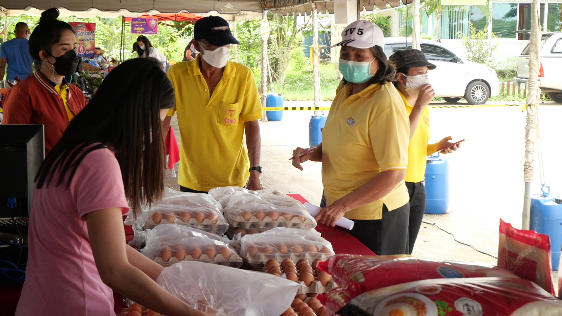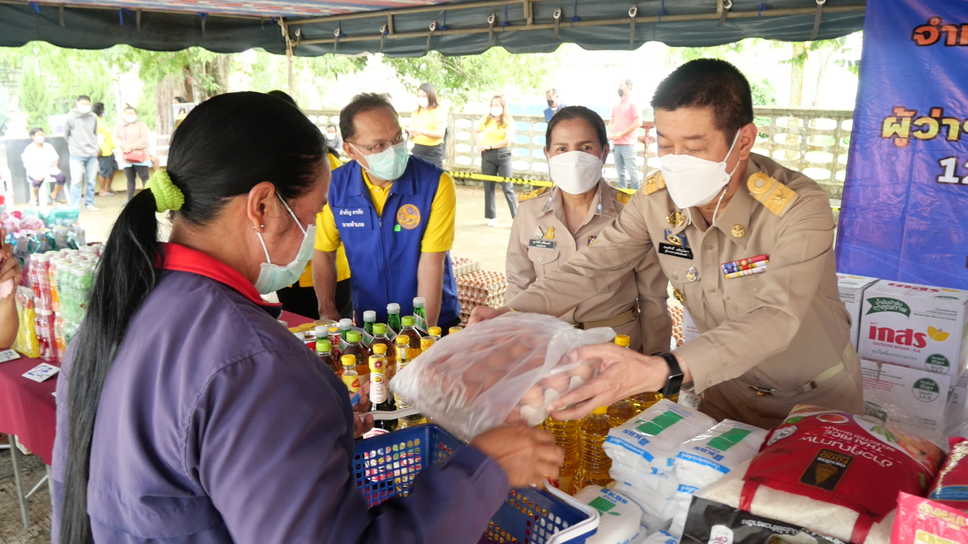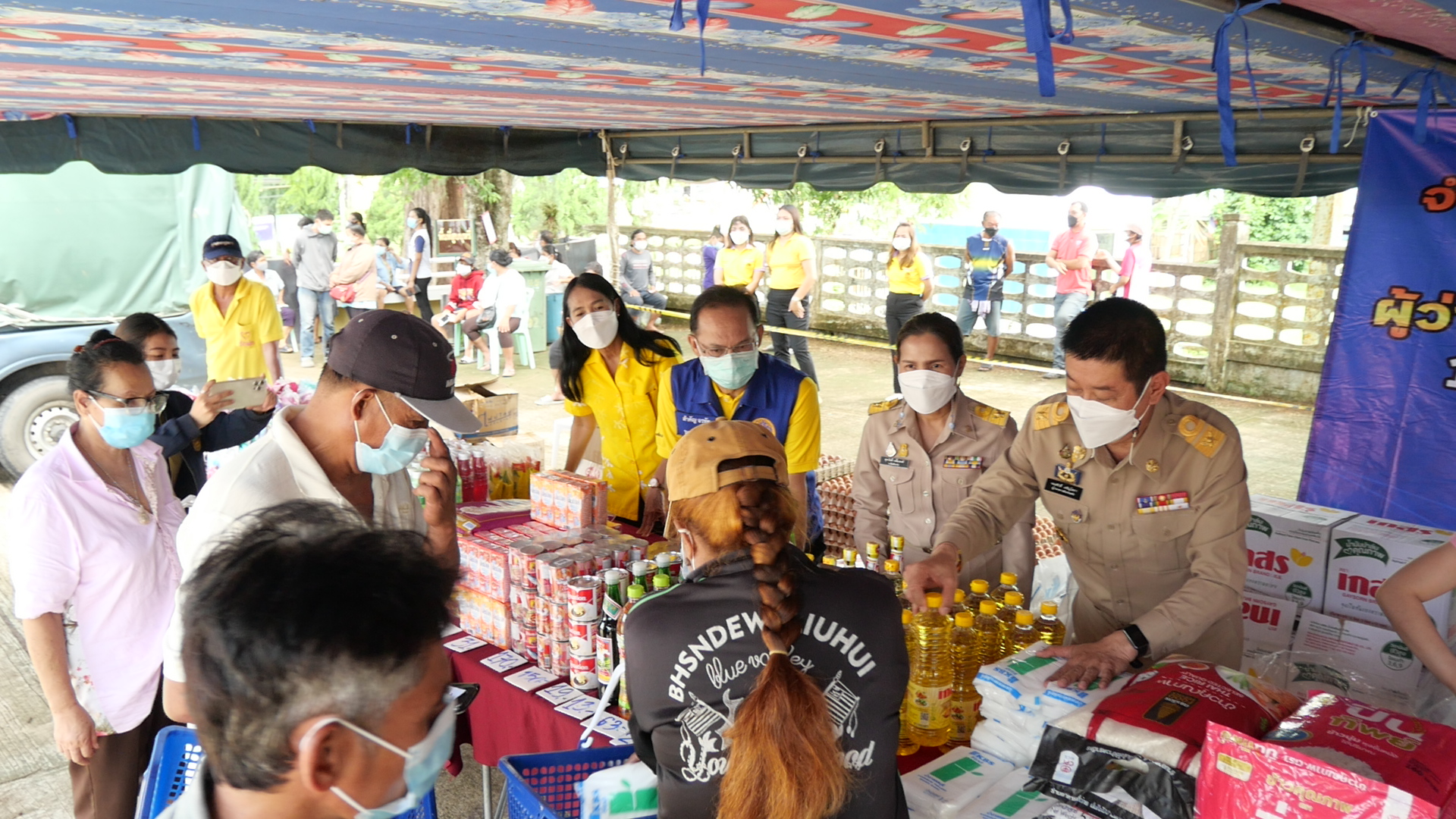 ประชาชนในอำเภอห้วยยอด จังหวัดตรัง ต่อแถวซื้อสินค้าจากโครงการธงฟ้าราคาประหยัดลดค่าครองชีพประชาชน บรรเทาความเดือดร้อนจากสถานการณ์ COVID-19 ซึ่งเป็นการหยัดค่าใช้จ่ายให้กับประชาชนเป็นอย่างมาก โดยไข่ไก่ น้ำมันพืช ข้าวสาร ปลากระป๋อง มีประชาชนเลือกซื้อจำนวนมาก