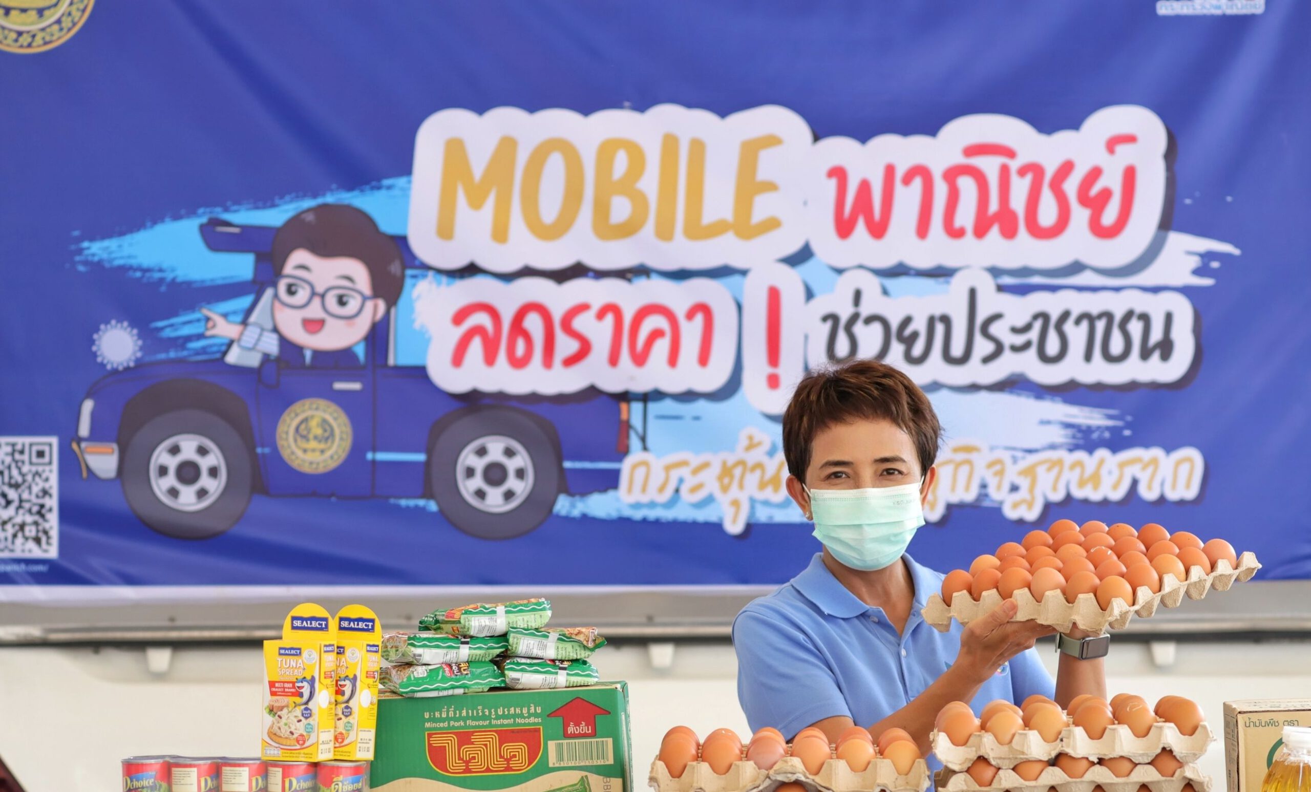 นางรวีพรรณ ช้างเย็นฉ่ำ พาณิชย์จังหวัดปทุมธานี กล่าวว่า ตามนโยบายของนายจุรินทร์ ลักษณวิศิษฏ์ รองนายกรัฐมนตรีและรัฐมนตรีว่าการกระทรวงพาณิชย์ ที่อยากจะช่วยประชาชน หลัง ศบค.ล็อกดาวน์ 10 จังหวัด เพื่อควบคุมการระบาดของโควิด กระทรวงพาณิชย์จึงจัดรถโมบายล์พาณิชย์ลดราคา ช่วยประชาชน ตระเวนไปจำหน่ายสินค้าราคาถูก เพื่อช่วยเหลือพี่น้องประชาชนในพื้นที่ กทม. และปริมณฑลในช่วงที่เกิดวิกฤตโควิด-19 เพื่อนำสินค้าต่างๆ ในราคาถูกไปจำหน่ายให้พี่น้องประชาชนถึงชุมชนต่างๆอย่างทั่วถึง