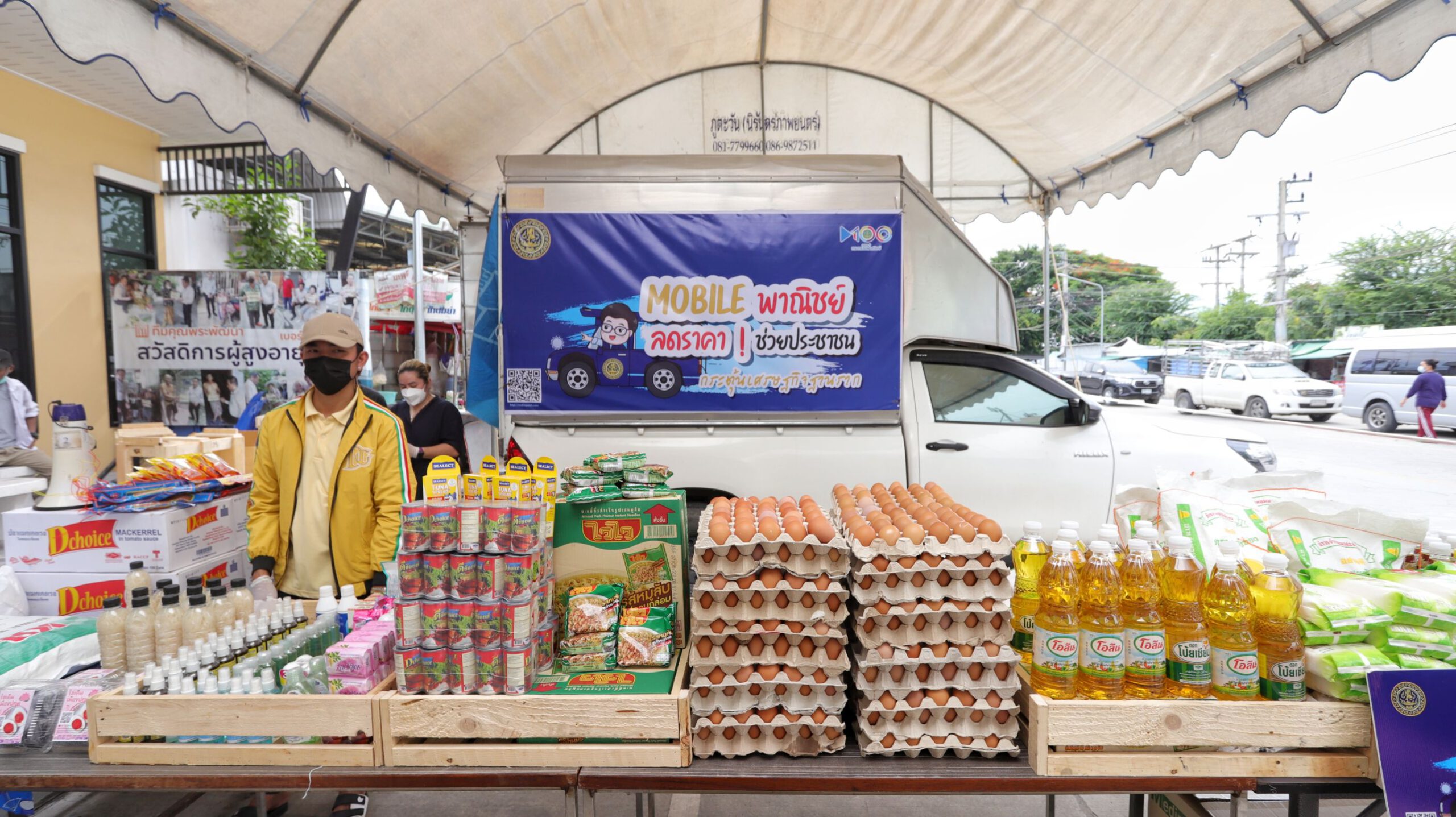โดยวันนี้ รถโมบาย (Mobile) ช่วยประชาชน ได้ตระเวนไปจำหน่ายสินค้าราคาถูกทั่วพื้นที่ หลายอำเภอของจังหวัดปทุมธานี เพื่อที่จะสามารถนำสินค้า ต่างๆในราคาถูกไปจำหน่ายให้พี่น้องประชาชนถึงชุมชน ซึ่งตรงนี้จะเป็นส่วนสำคัญในการที่จะลดภาระค่าครองชีพให้กับพี่น้องประชาชนชาวปทุมธานีทั้งจังหวัดในภาวะที่ต้องประสบกับภัยโควิด-19 ที่กำลังแพร่ระบาดอยู่ในขณะนี้