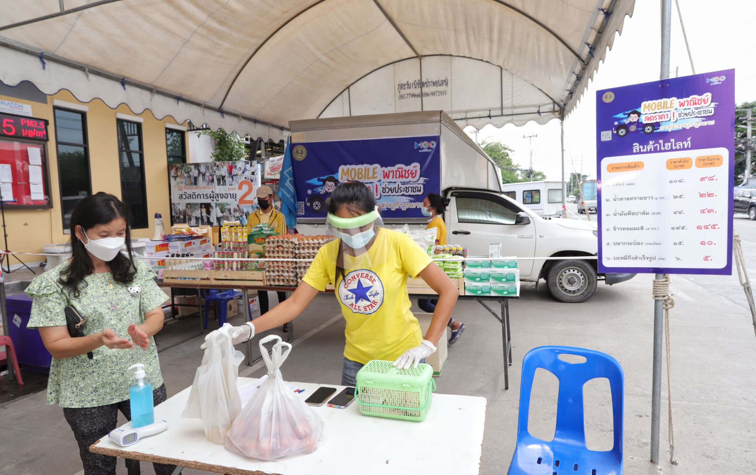 พาณิชย์ปทุมฯปล่อยรถโมบายล์นำสินค้าราคาถูกลงชุมชนช่วยเหลือช่วงล็อกดาวน์ลดสูงสุด 60%