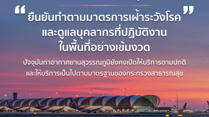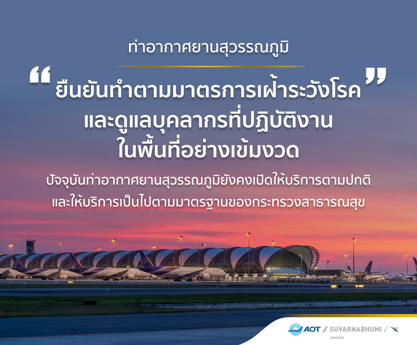*****ท่าอากาศยานสุวรรณภูมิแจงกรณีข่าวพบผู้ติดเชื้อในพื้นที่ดำเนินงาน ย้ำดูแลบุคลากร สถานที่ และดำเนินการตรวจเชิงรุกตามมาตรฐานสาธารณสุขเข้มงวด ให้ความสำคัญสูงสุดต่อการให้บริการผู้โดยสารด้วยความปลอดภัย