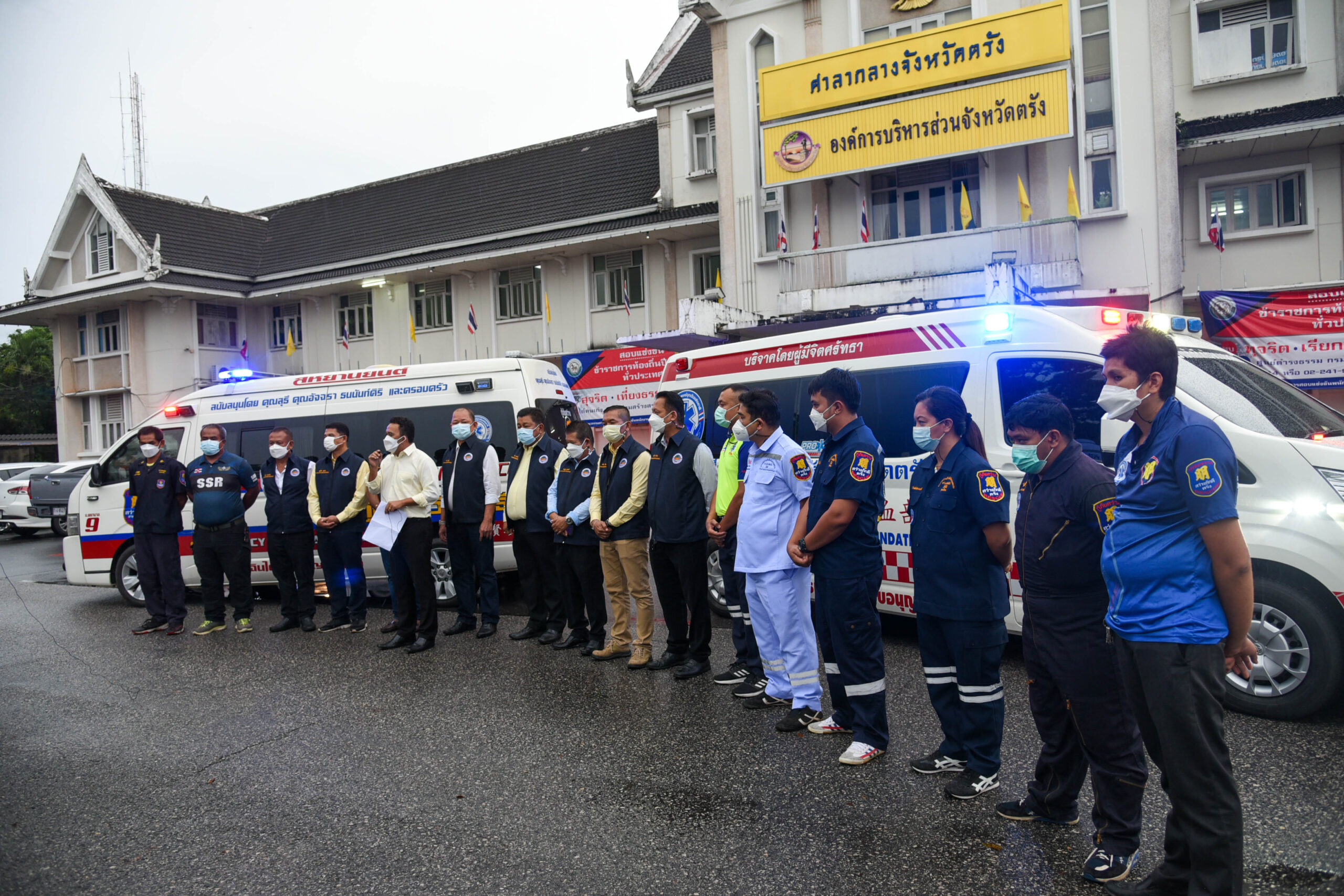 รองนายก อบจ.ตรัง พร้อมคณะ ปล่อยรถ “รับคนตรังที่ป่วยโควิด -19 กลับบ้าน” อีก 13 ราย