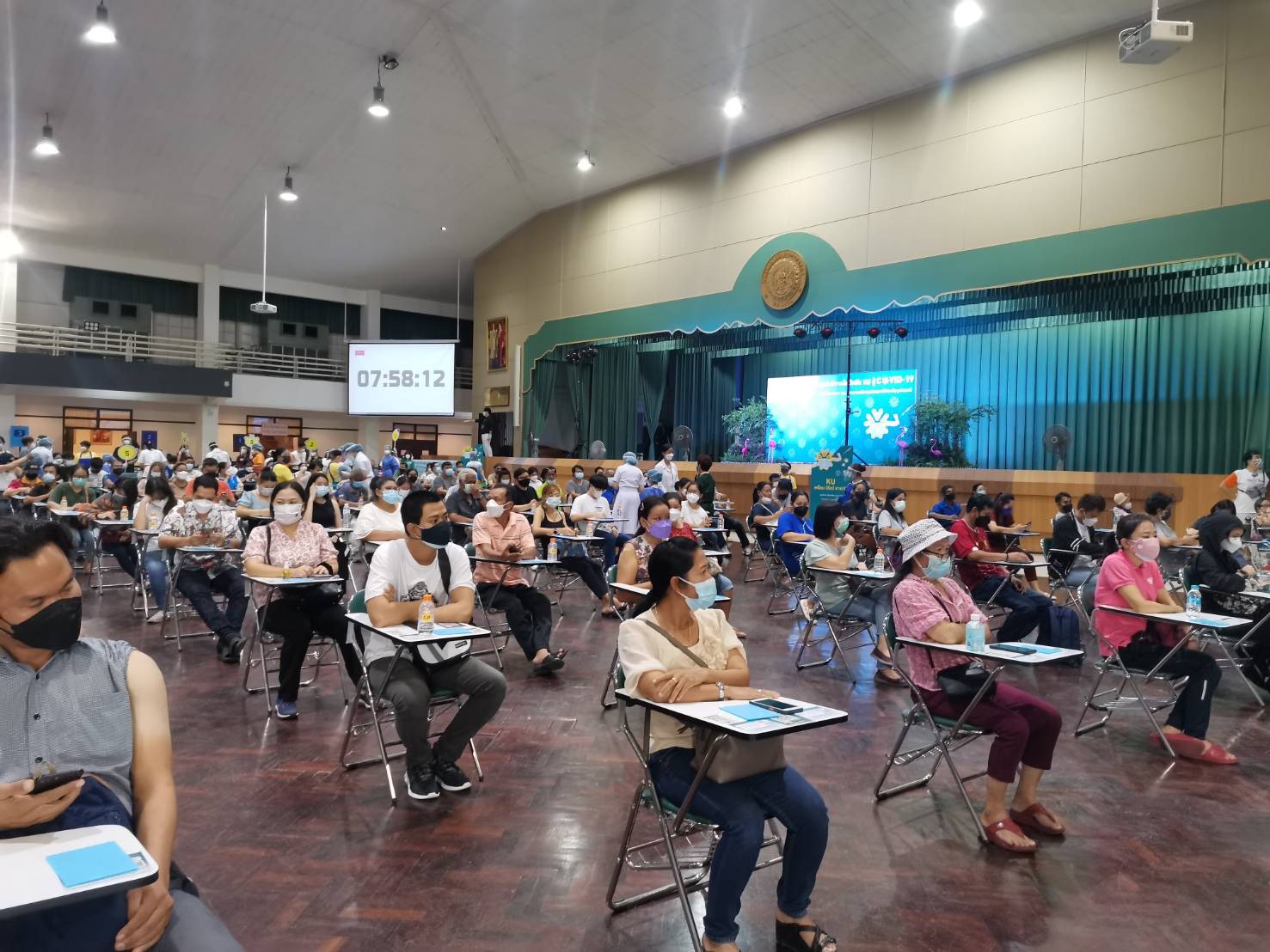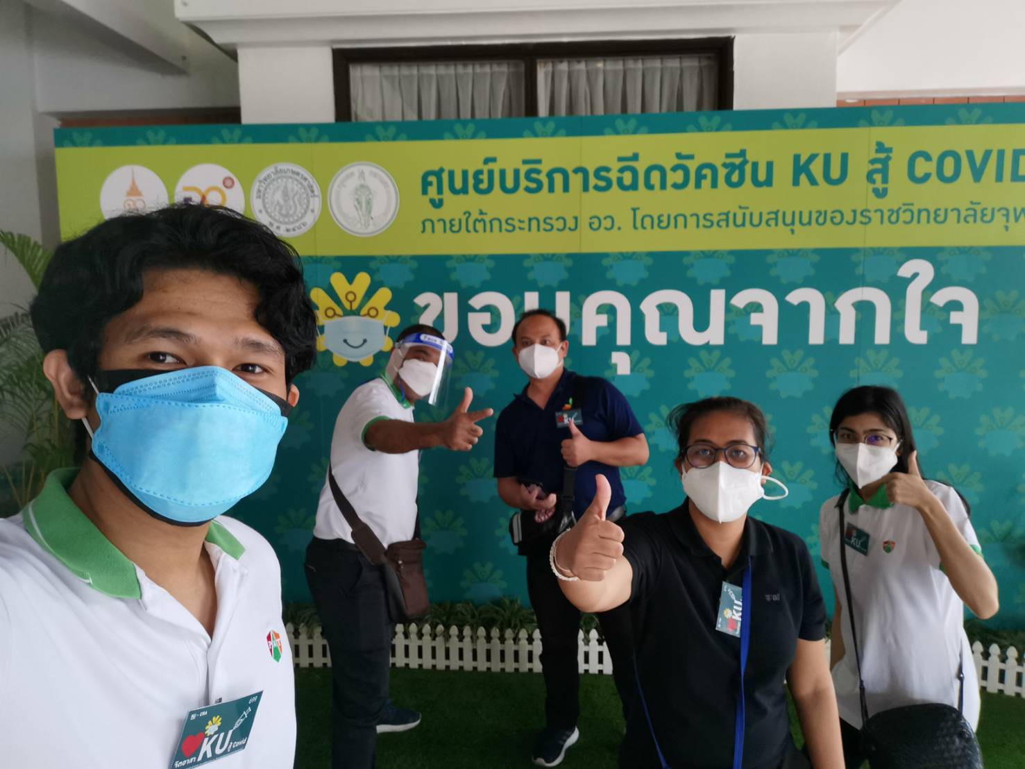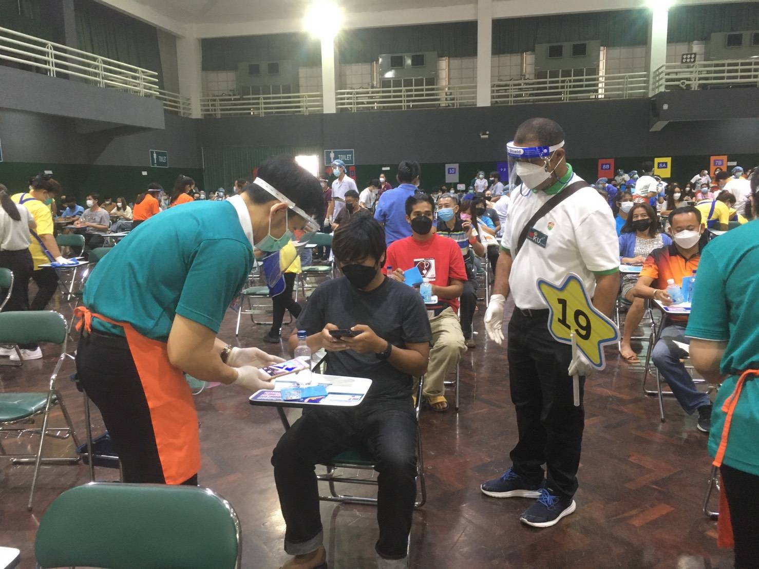 จากนั้นคณะจิตอาสาจะแจ้งเจ้าหน้าที่มาเก็บบันทึกข้อมูลแล้วอนุญาตให้ผู้รับการฉีดวัคซีนเดินทางกลับได้ ต่อจากนั้นจึงแจ้งทีมแม่บ้านมาทำความสะอาดเก้าอี้ที่นั่งก่อนจะเรียกผู้รับการฉีดวัคซีนคนต่อไปเข้ามานั่งรอเรียกตามลำดับคิว การปฏิบัติหน้าที่คณะจิตอาสาครั้งนี้นับเป็นความภาคภูมิใจของทุกคนที่ได้เสียสละอุทิศตนในการทำความดีช่วยเหลือสังคมในสถานการณ์การป้องกันโรค COVID-19 ในขณะนี้ ซึ่งคณะจิตอาสาทุกๆคนพร้อมที่จะร่วมปฏิบัติงานกับศูนย์บริการฉีดวัคซีน KU สู้ COVID-19 ในโอกาสต่อๆไปด้วย.