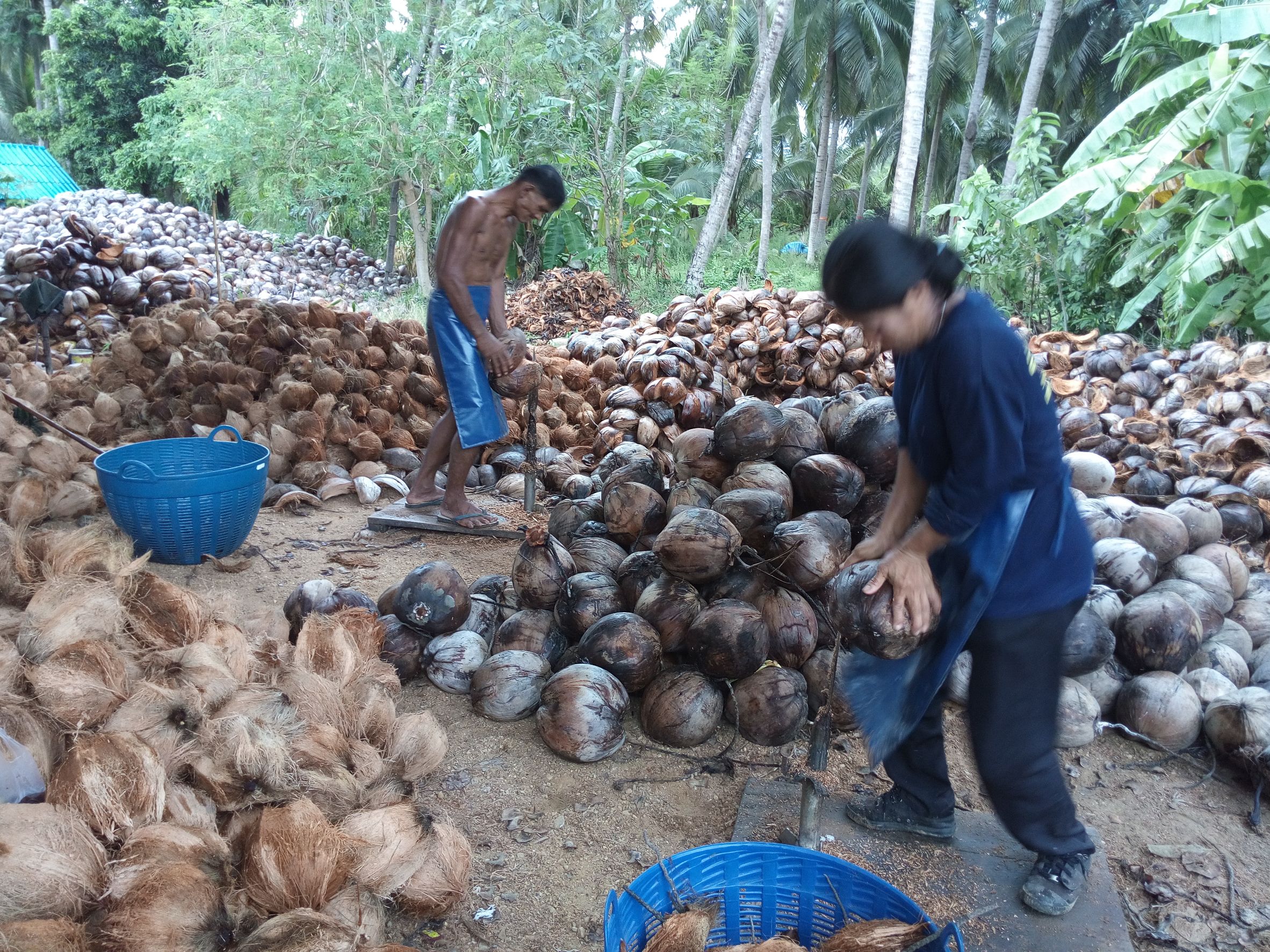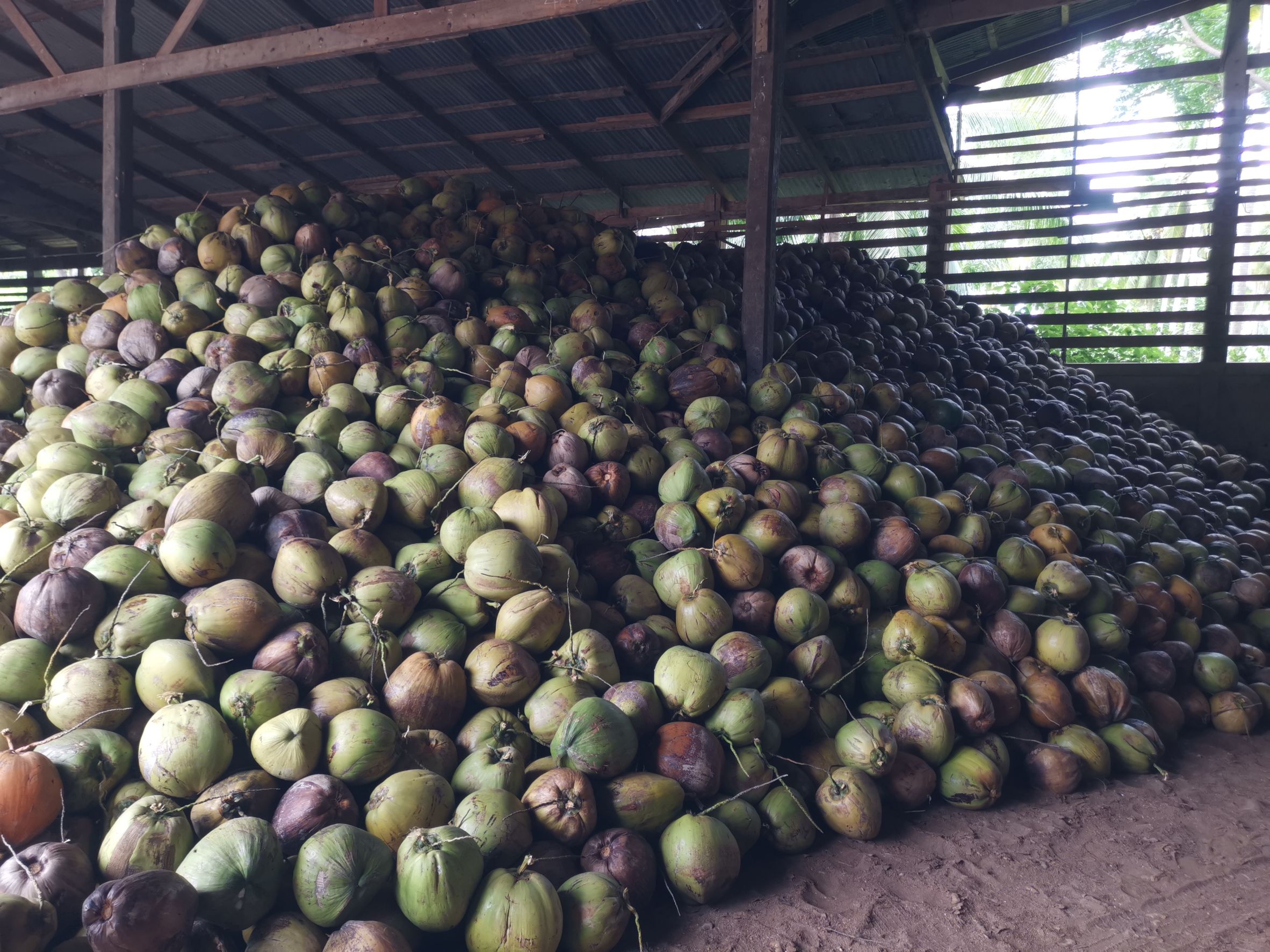 นายสายชล จ้อยร่อย เจ้าของโรงงานนิลทองแท้โคโคนัท จำกัด ต.อ่างทอง อ.ทับสะแก ผู้รับซื้อมะพร้าวขาวรายใหญ่ที่สุดของประเทศ กล่าวว่า ขณะนี้มีผลผลิตตกค้างไม่มาก คาดว่าคงไม่มีผลกระทบในระยะยาว ส่วนสาเหตุที่ราคามะพร้าวไม่ถึงผลละ 10 บาท เนื่องจากโรงงานแปรรูปเพื่อการส่งออกหลายแห่ง หยุดการผลิตจากปัญหาการติดเชื้อโควิด-19 ของพนักงานในโรงงาน นอกจากนั้นยังมีปัญหาในการขนส่งวัตถุดิบเดินทางข้ามจังหวัด จากมาตรการป้องกันโควิด รวมทั้งปัญหาไม่มีตู้คอนเทนเนอร์ในการส่งสินค้าออกไปตลาดต่างประเทศ ขณะที่ปัจจุบันทั่วโลกยังไว้วางใจผลผลิตภัณฑ์จากประเทศไทย
