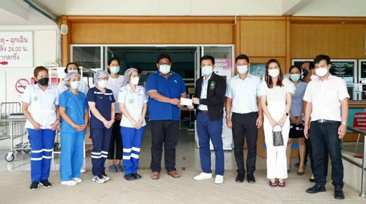 เพื่อใช้ในการปรับปรุงอาคารผู้ป่วยภายในเป็นโรงพยาบาลสนามสำหรับรักษาผู้ป่วยติดเชื้อโควิด-19 โดยมีหัวหน้าฝ่ายงานบริหารทั่วไปและเจ้าหน้าที่พยาบาลเป็นตัวแทนรับมอบเงิน